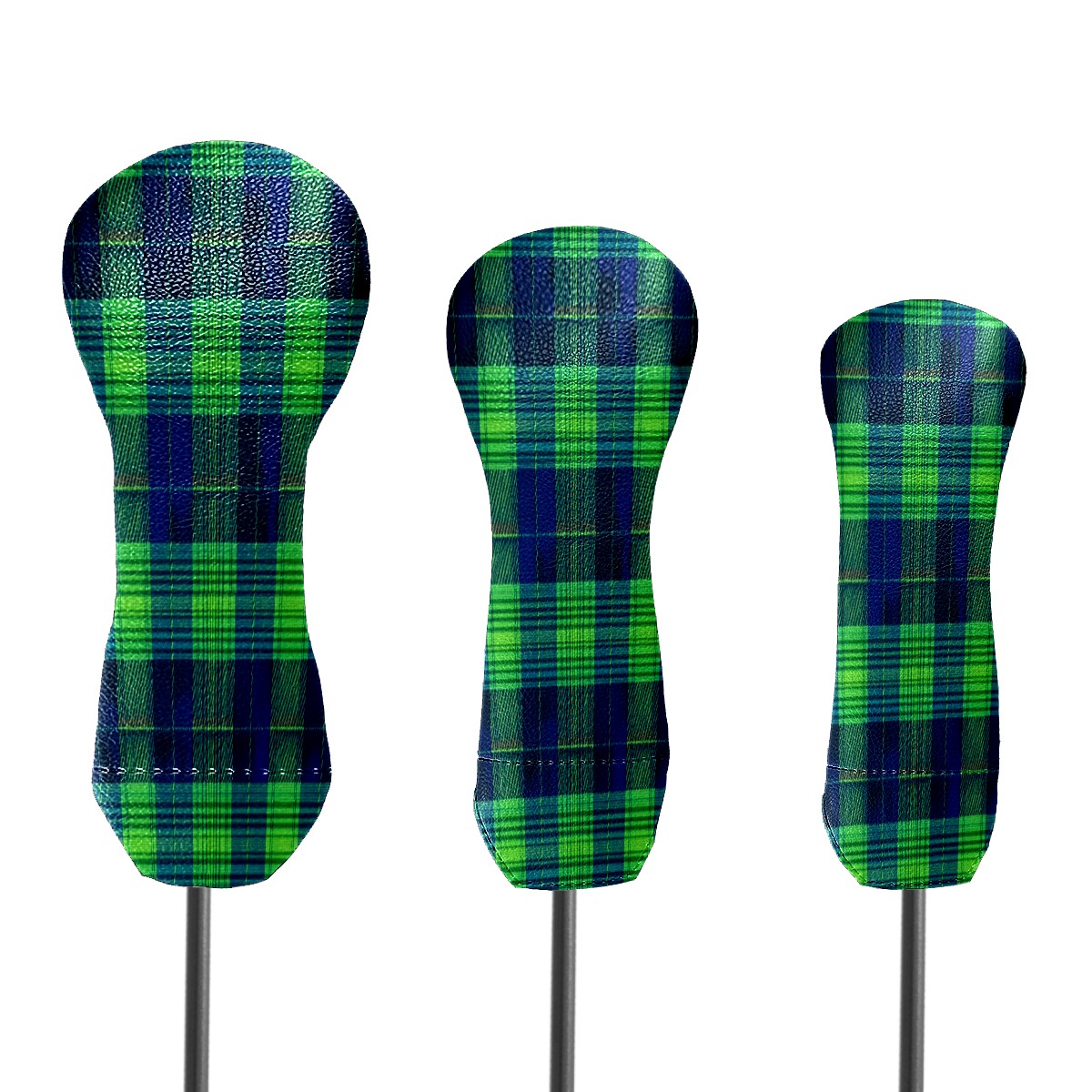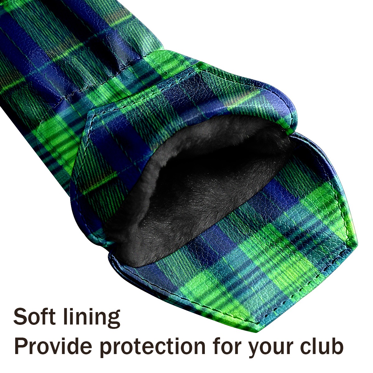 Golf Club Head Covers for Driver Hybrid and Fairway Woods, Waterproof Leather Headcovers for Golf Clubs, Ideal Golf Accessories Gift for Men Women (Green And Blue)