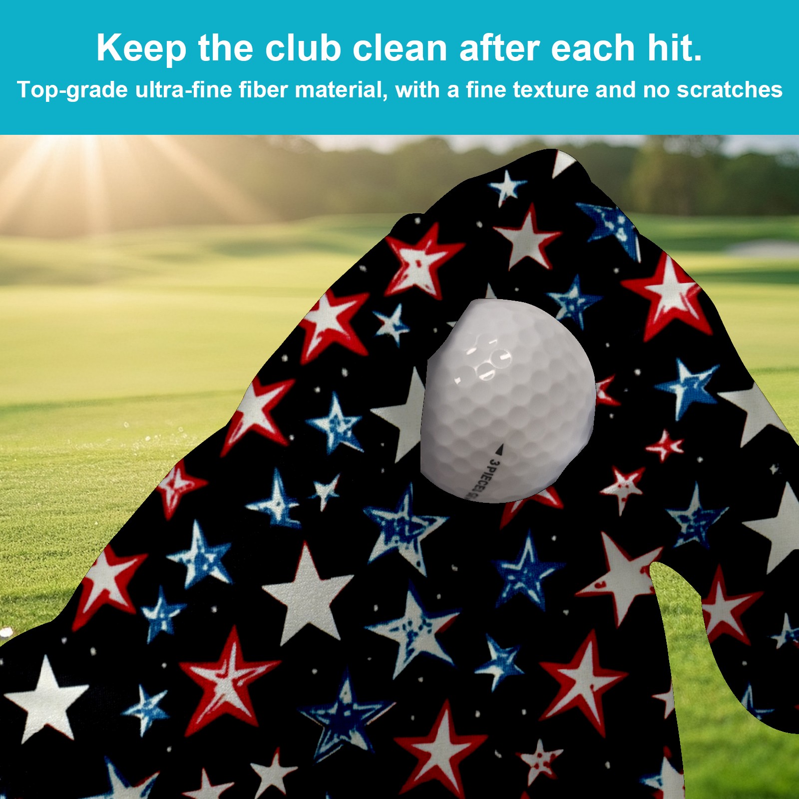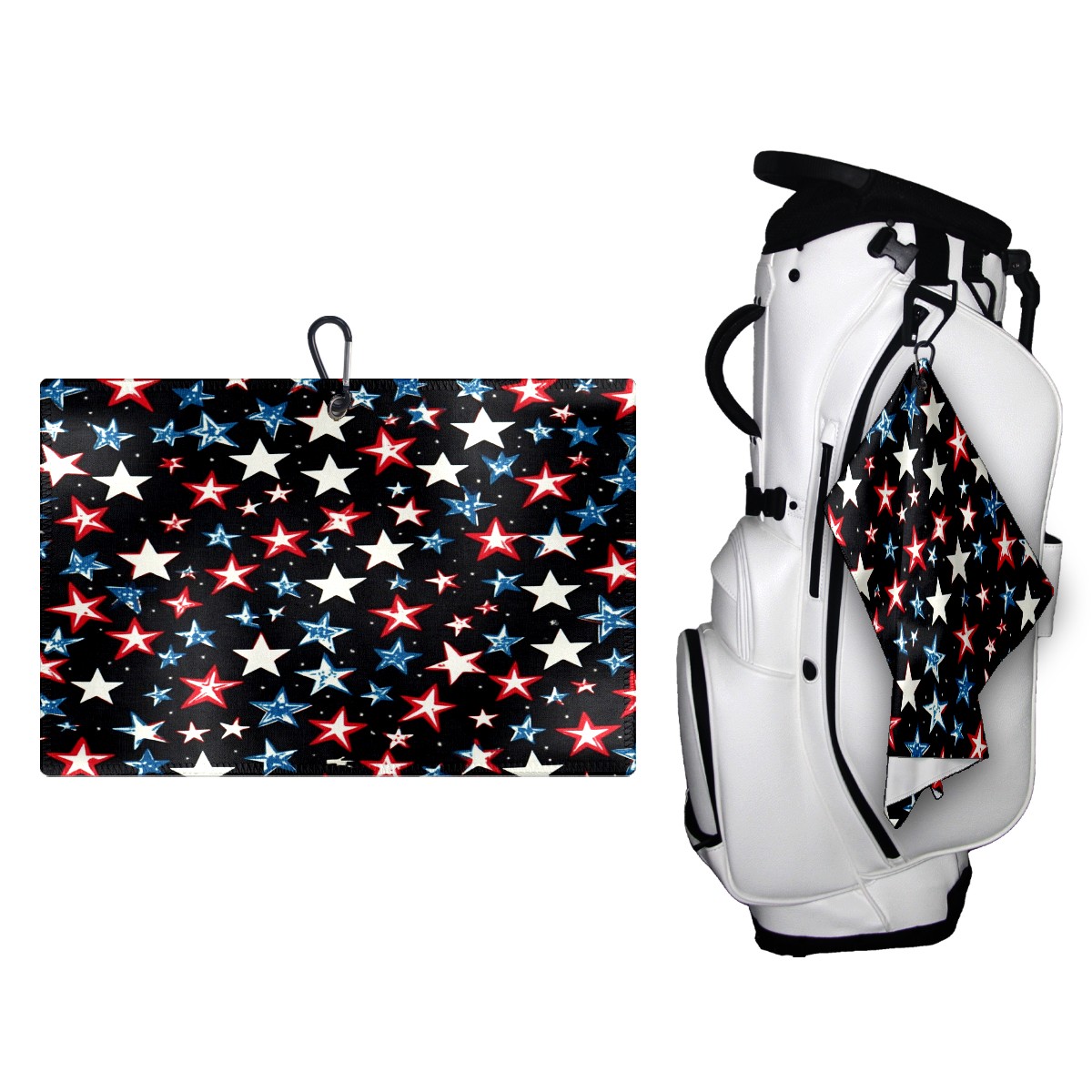 Golf Ball Towel for Golf Bag with Magnetic Clip, Golf Club and Golf Ball Cleaning Towel,Portable Golf Accessories for Men Women (Red White And Blue Stars)