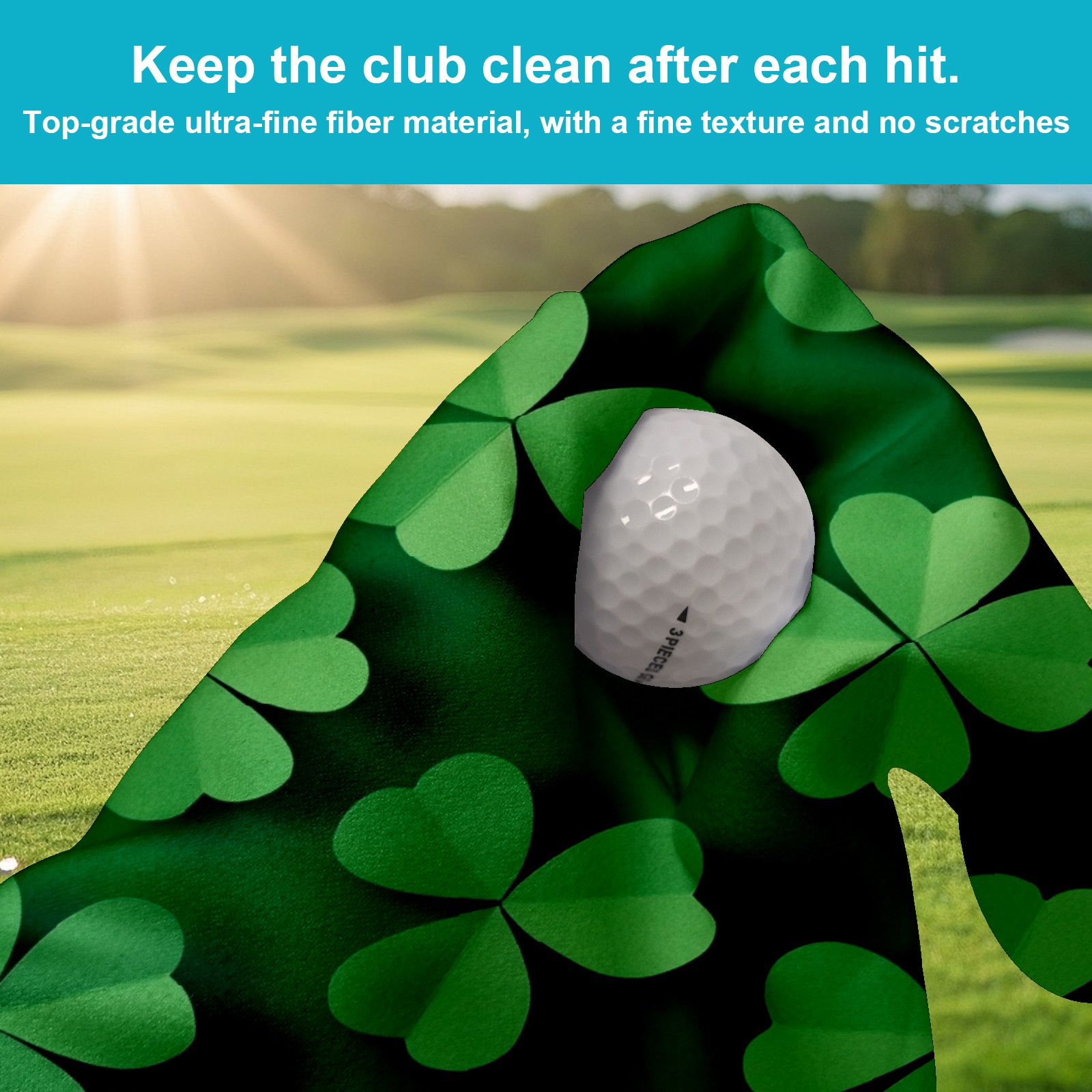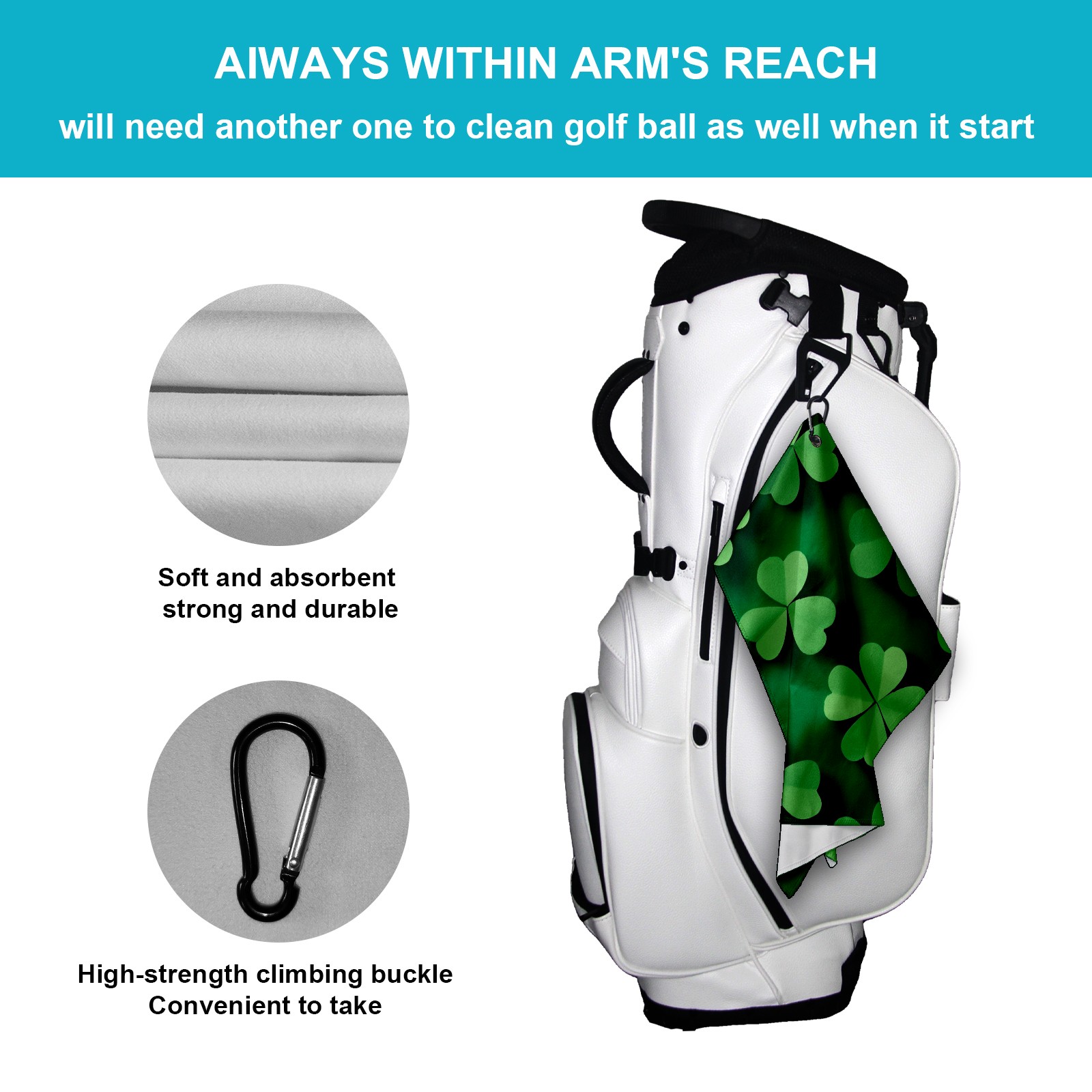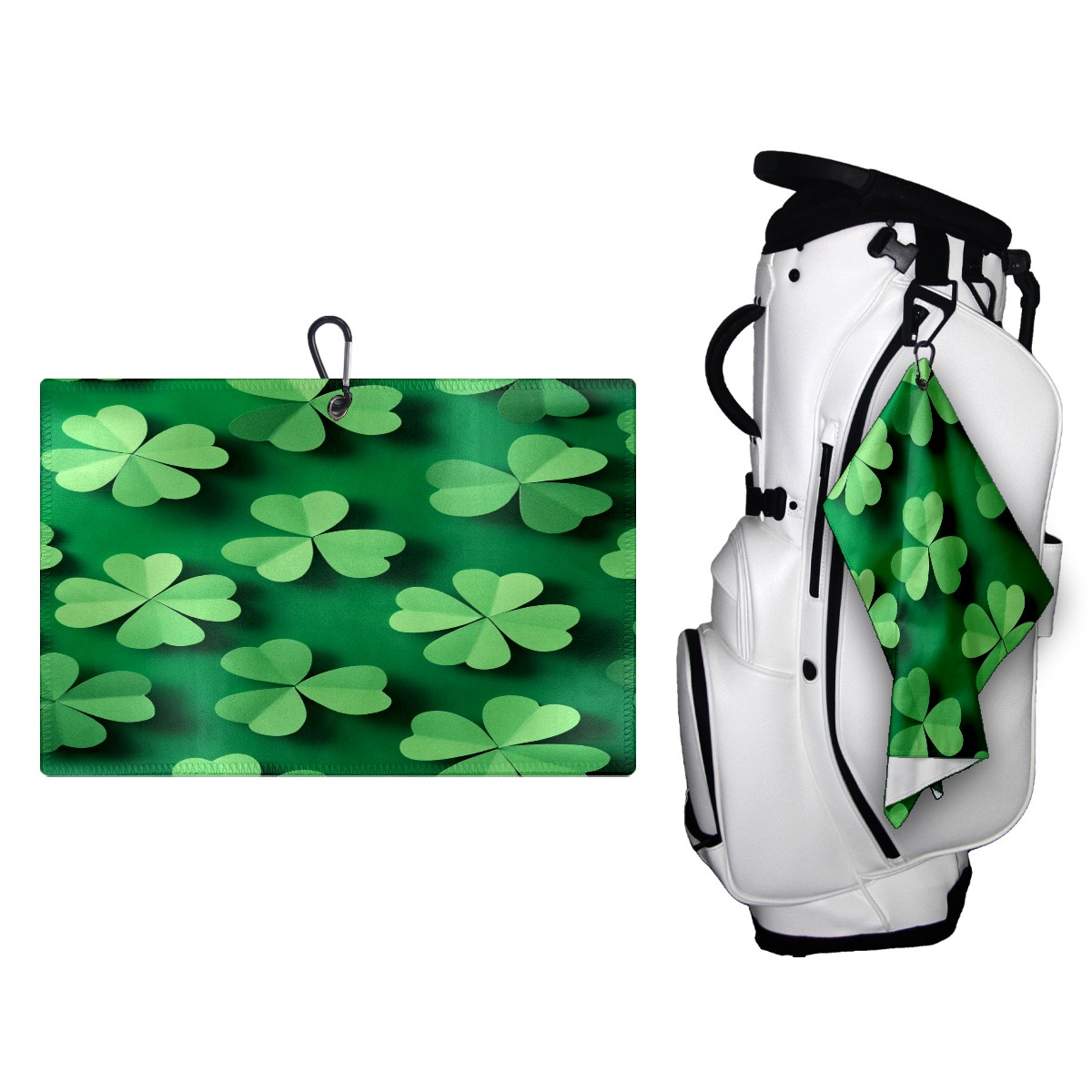 Golf Ball Towel for Golf Bag with Magnetic Clip, Golf Club and Golf Ball Cleaning Towel,Portable Golf Accessories for Men Women (Green Shamrock)