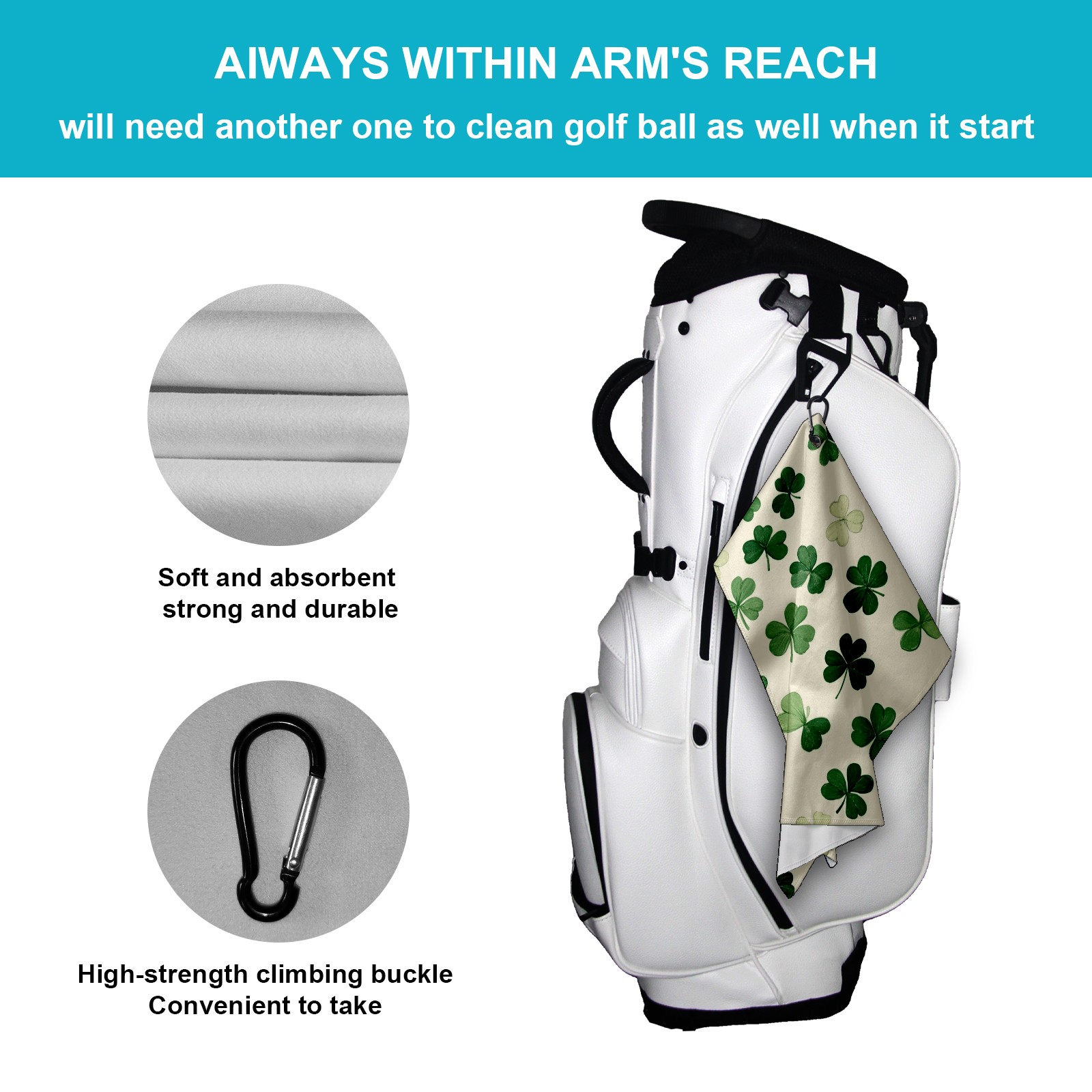 Golf Ball Towel for Golf Bag with Magnetic Clip, Golf Club and Golf Ball Cleaning Towel,Portable Golf Accessories for Men Women (Small Shamrocks)