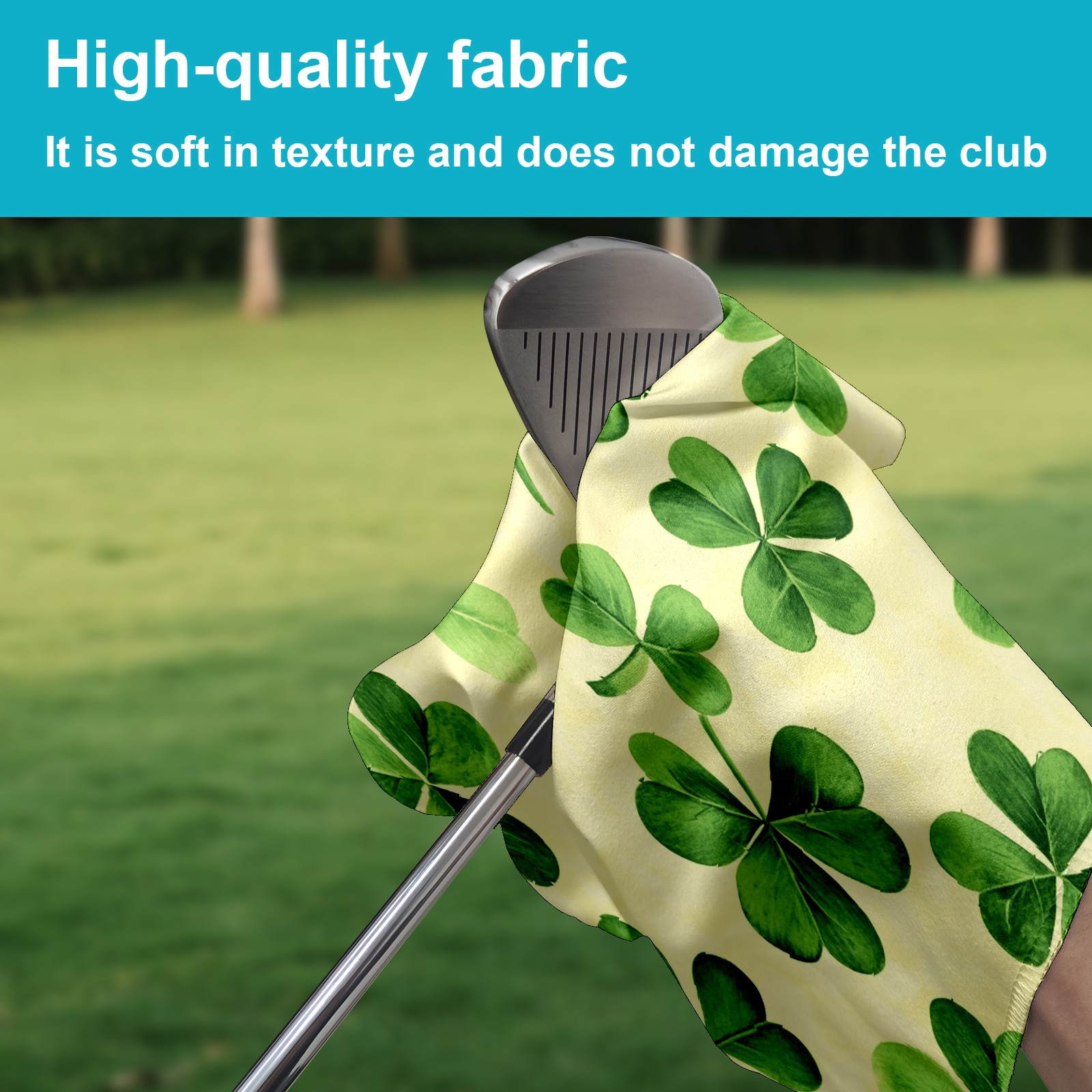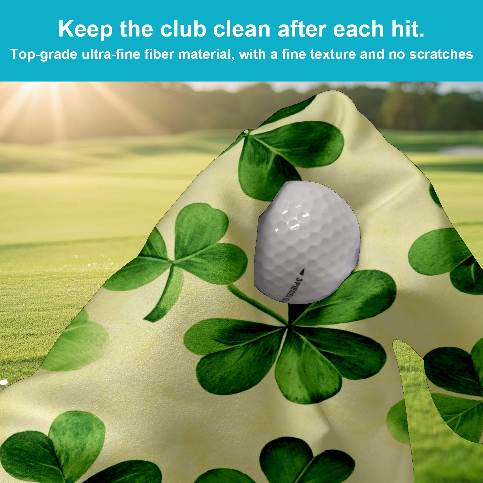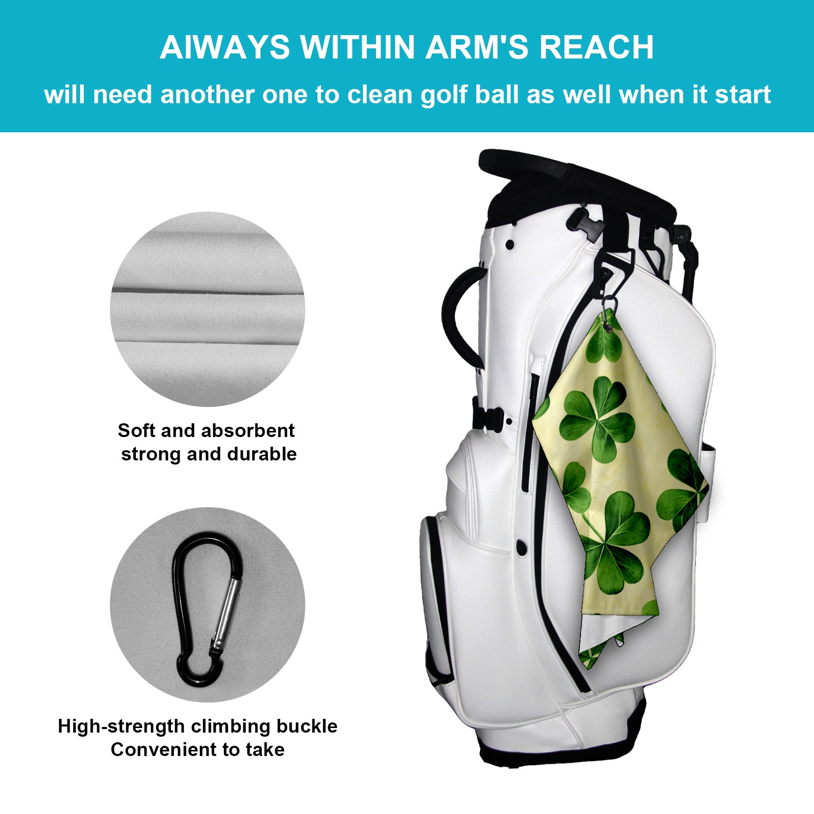 Golf Ball Towel for Golf Bag with Magnetic Clip, Golf Club and Golf Ball Cleaning Towel,Portable Golf Accessories for Men Women (Green Shamrocks)