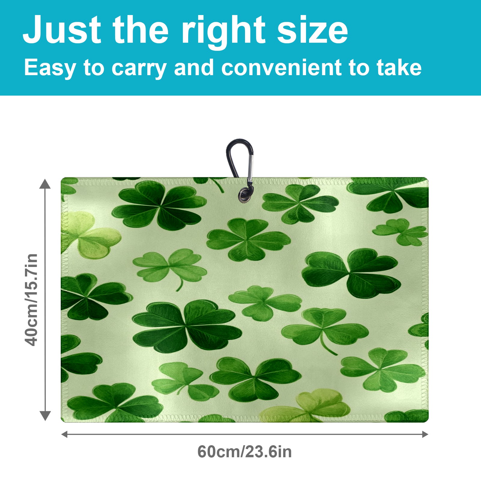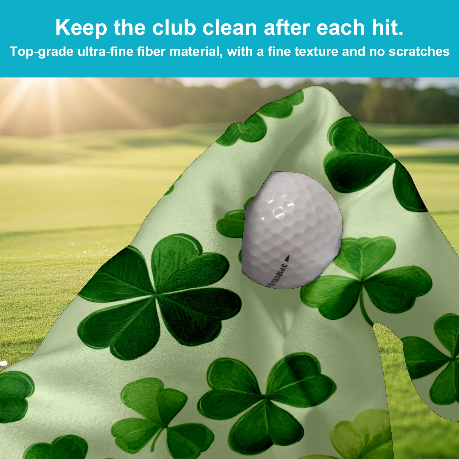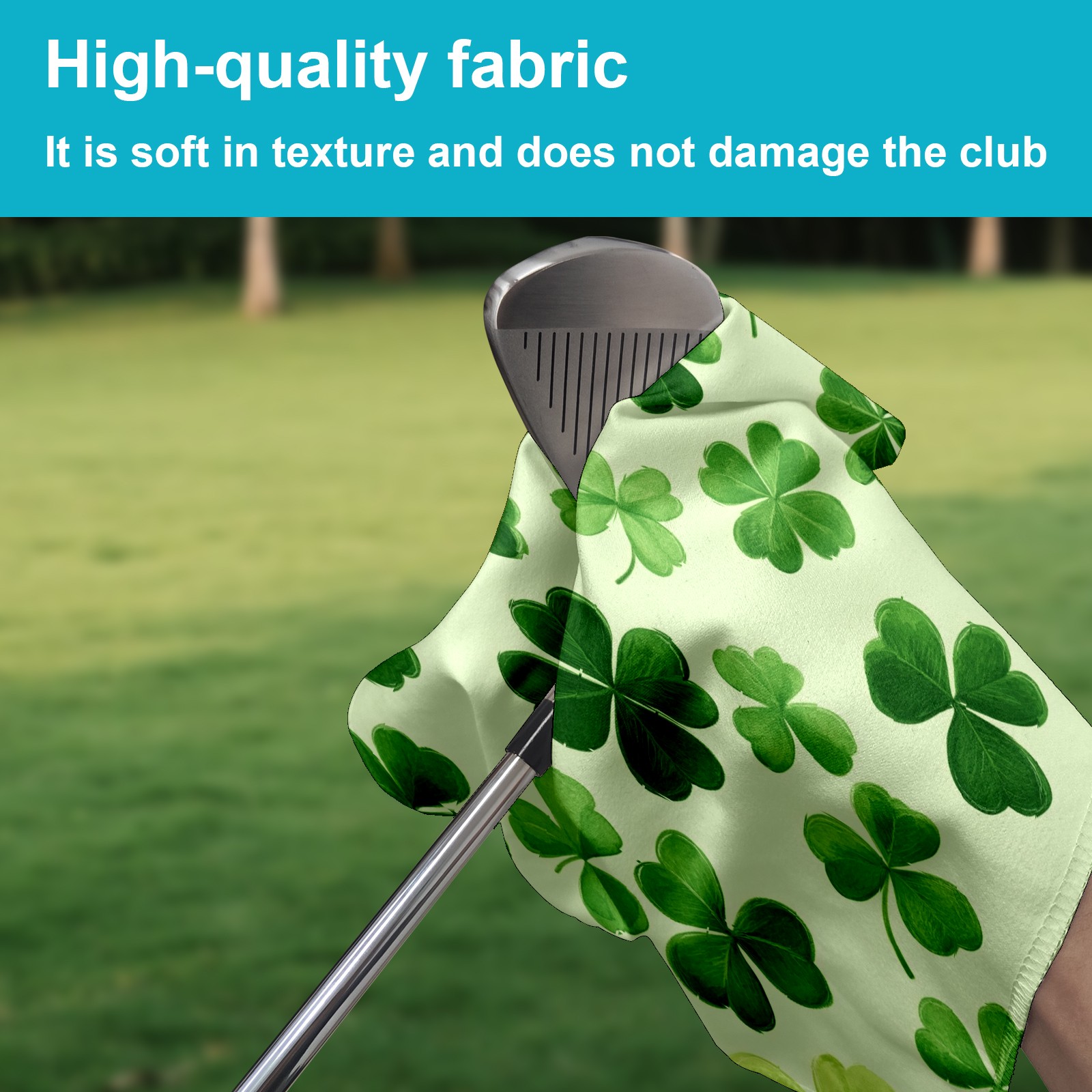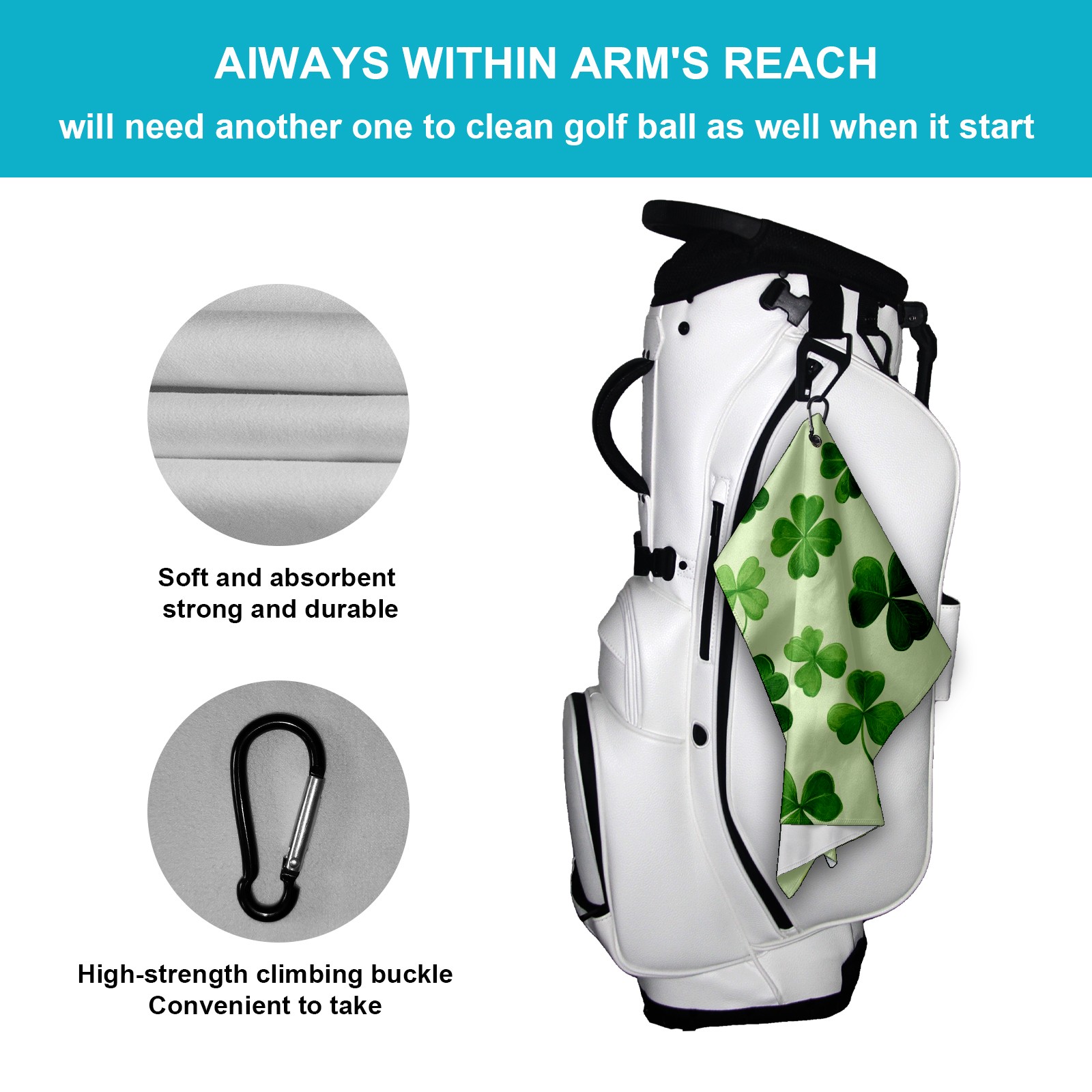 Golf Ball Towel for Golf Bag with Magnetic Clip, Golf Club and Golf Ball Cleaning Towel,Portable Golf Accessories for Men Women (Shamrock Leaves)
