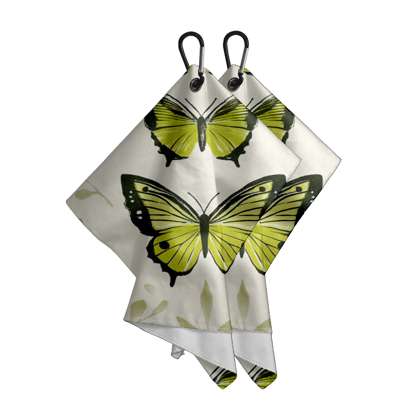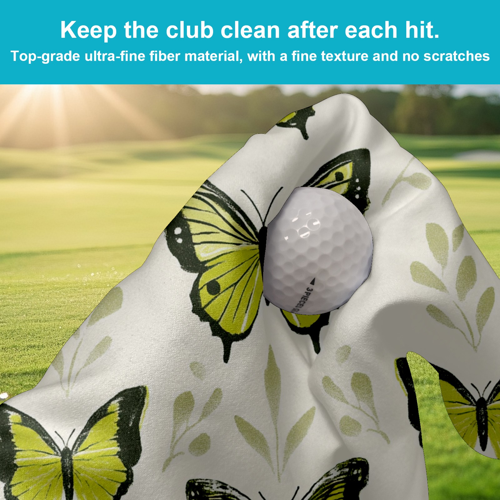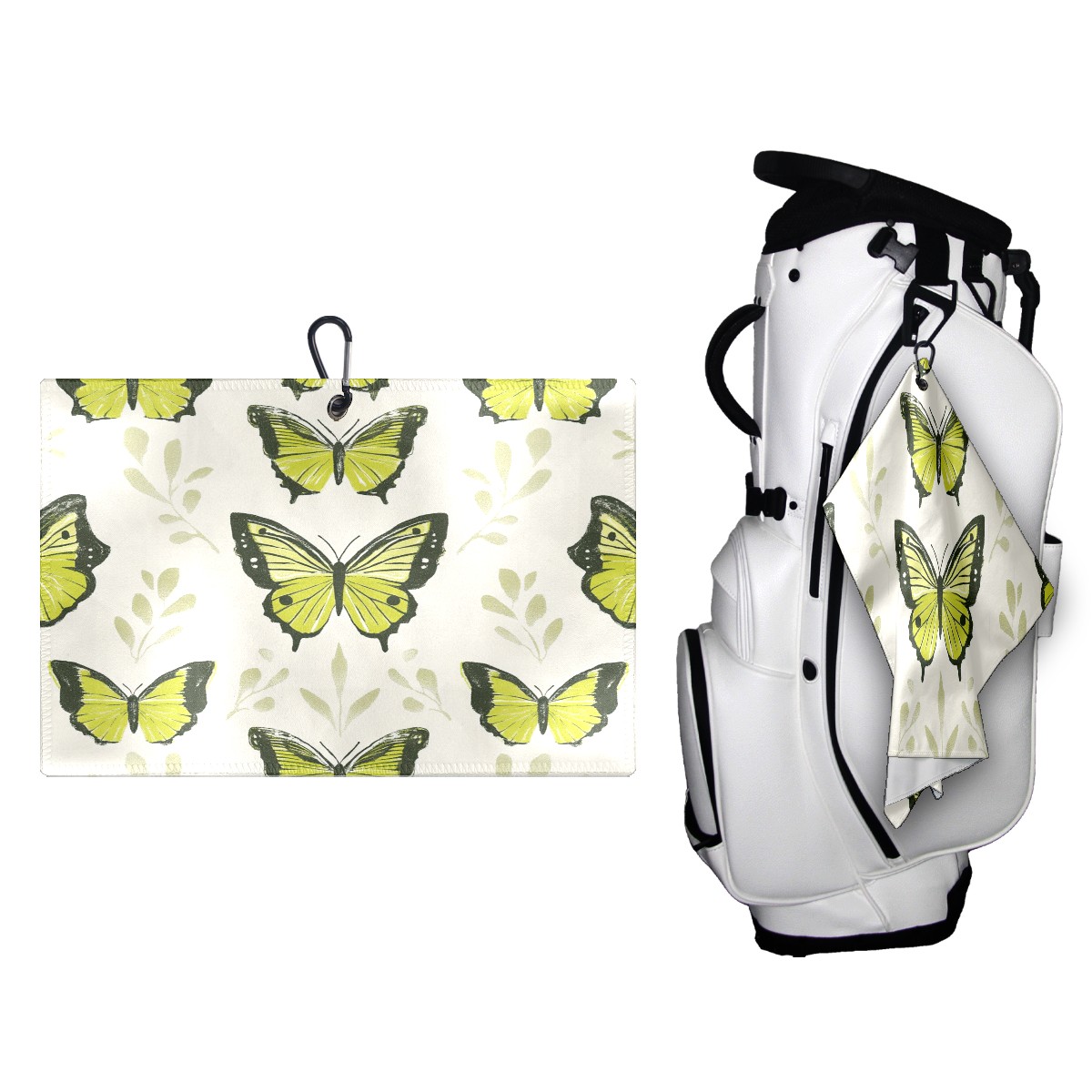 Golf Ball Towel for Golf Bag with Magnetic Clip, Golf Club and Golf Ball Cleaning Towel,Portable Golf Accessories for Men Women (Green Butterflies)