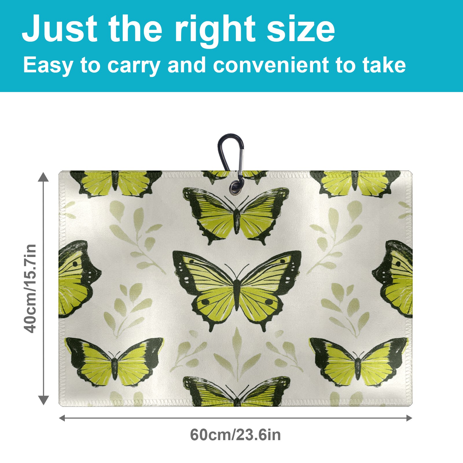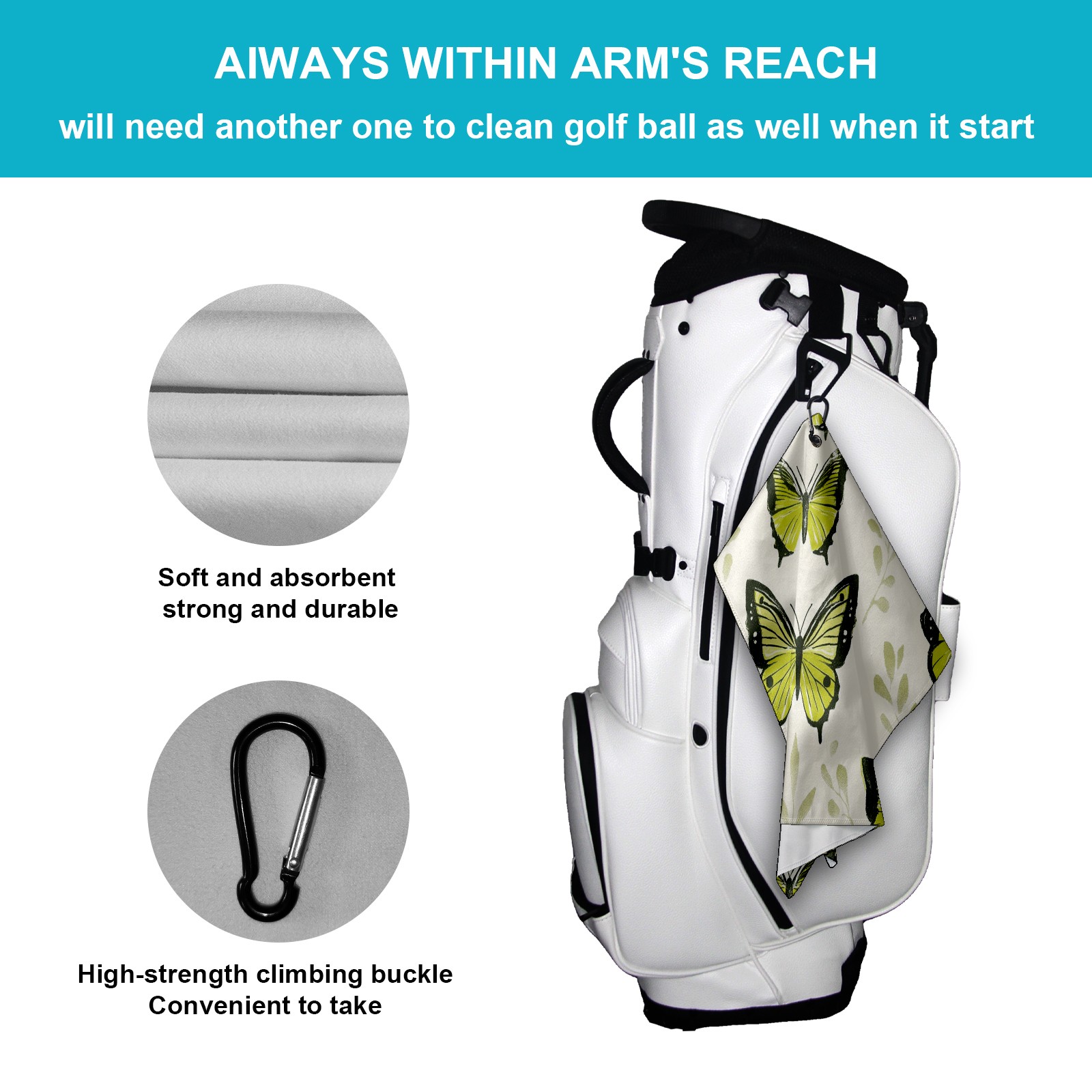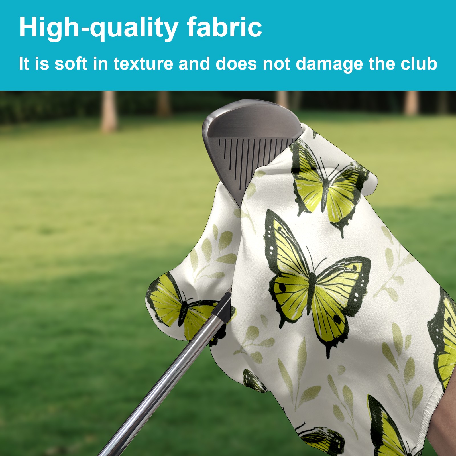 Golf Ball Towel for Golf Bag with Magnetic Clip, Golf Club and Golf Ball Cleaning Towel,Portable Golf Accessories for Men Women (Green Butterflies)