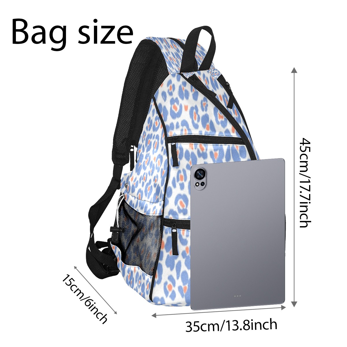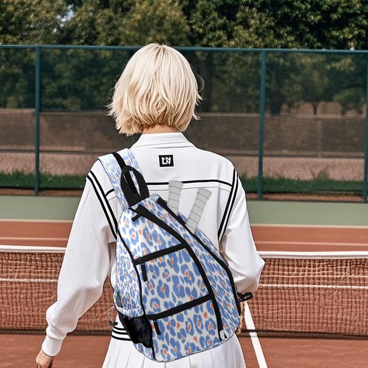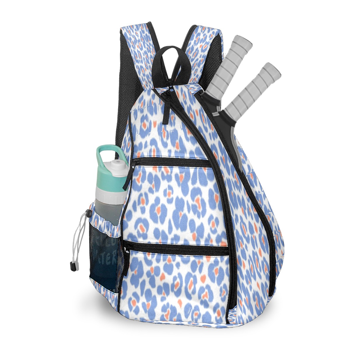 Pickleball Backpack for Women and Men, Adjustable Pickleball Sling Bag for Paddles, Balls & Accessories (Blue Leopard)