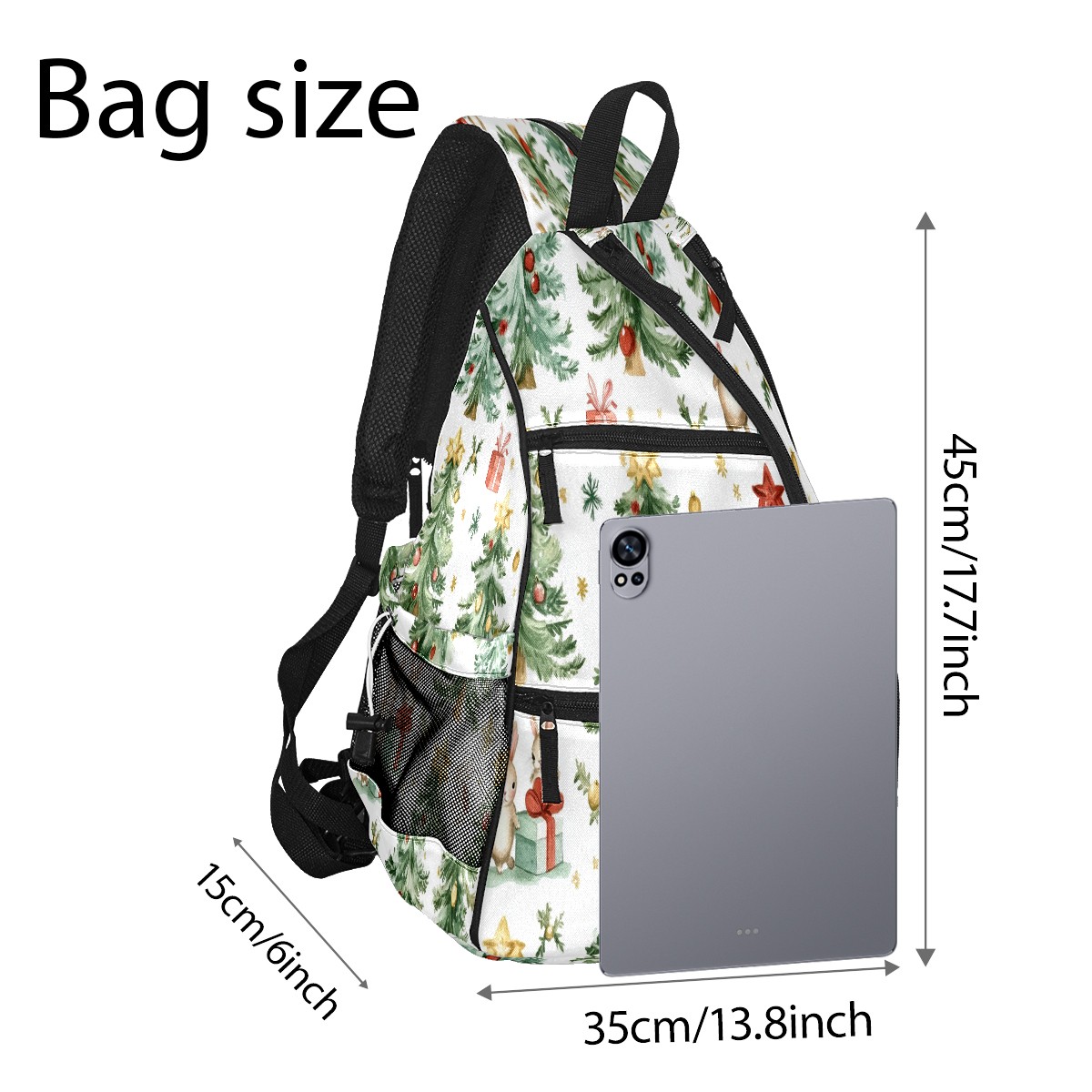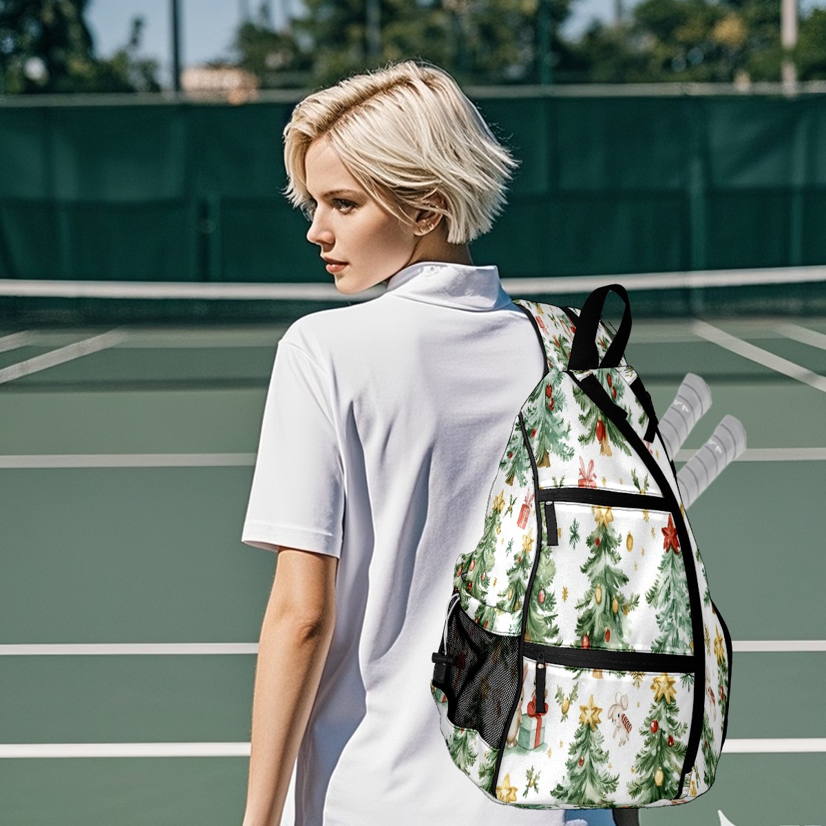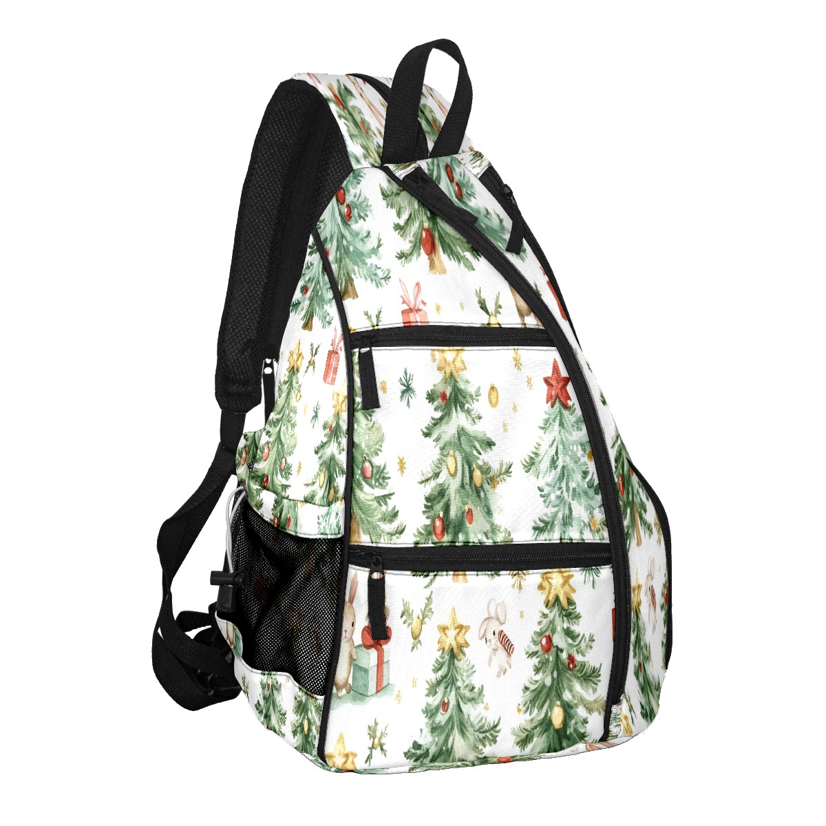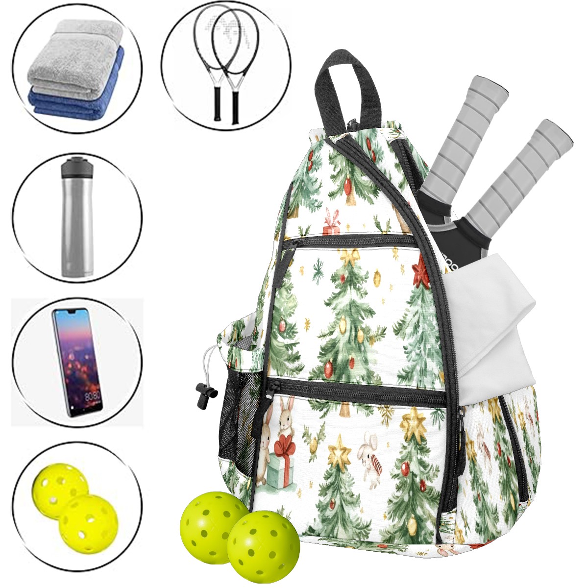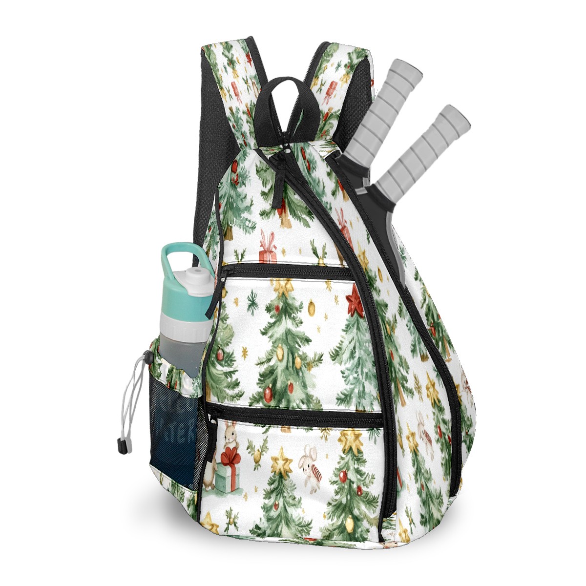 Pickleball Backpack for Women and Men, Adjustable Pickleball Sling Bag for Paddles, Balls & Accessories (Watercolor Christmas Trees)