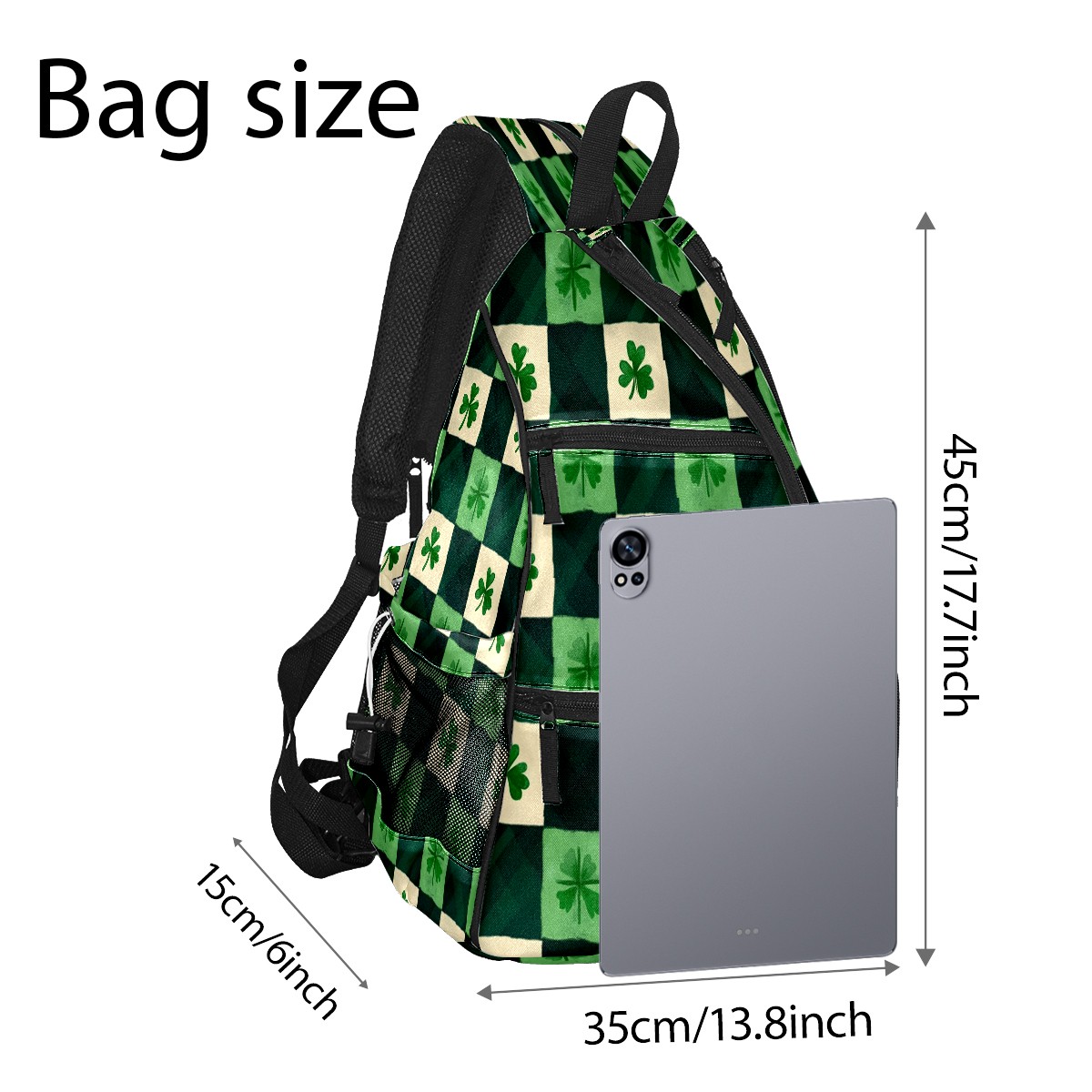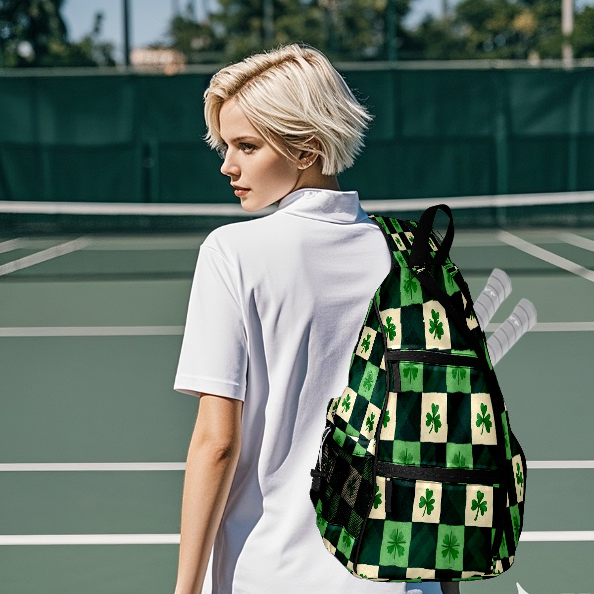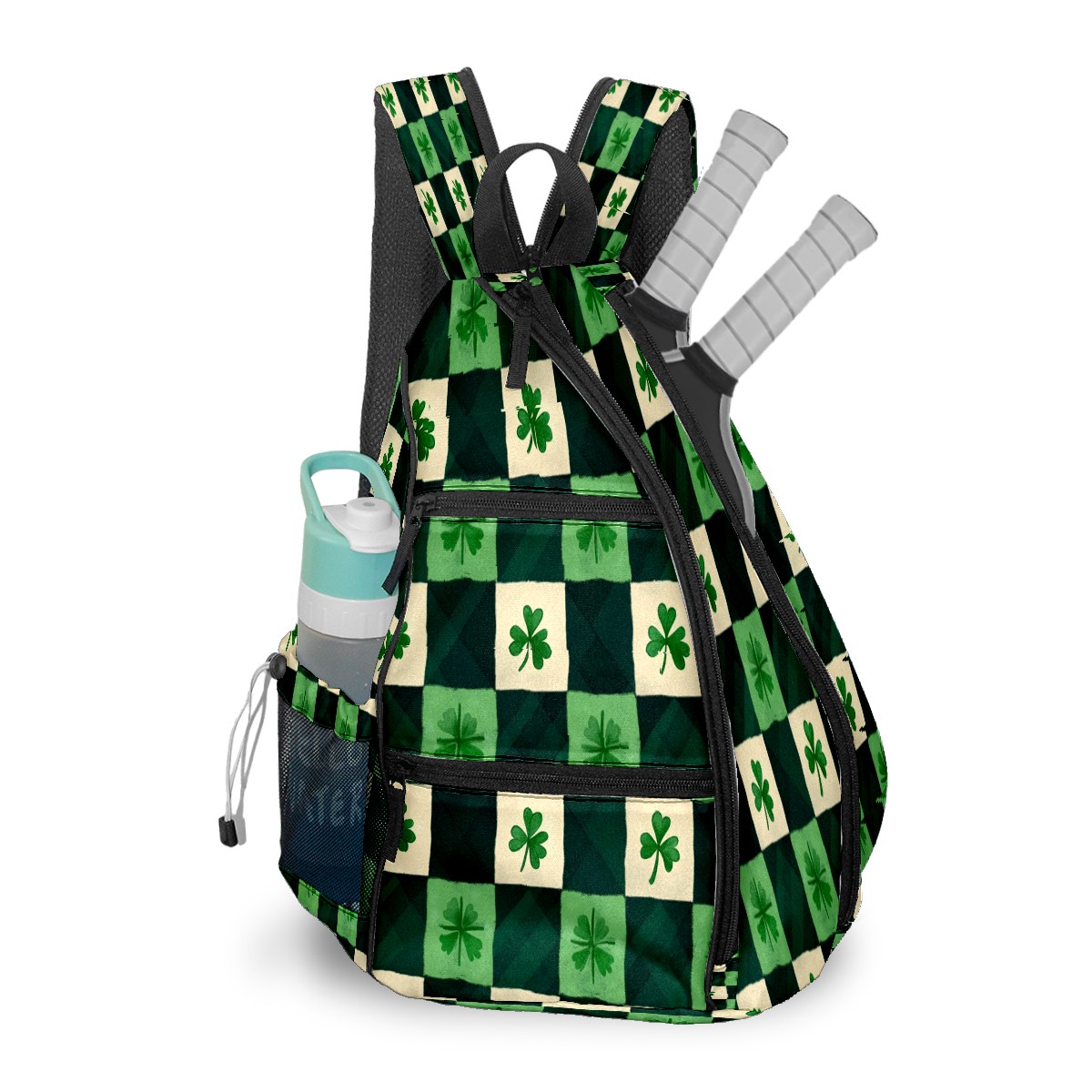 Pickleball Backpack for Women and Men, Adjustable Pickleball Sling Bag for Paddles, Balls & Accessories (St.patricks Day Checkered)