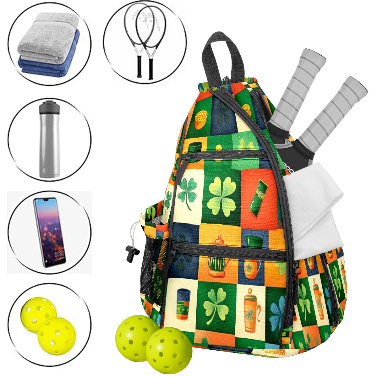 Pickleball Backpack for Women and Men, Adjustable Pickleball Sling Bag for Paddles, Balls & Accessories (Vibrant And Colorful)