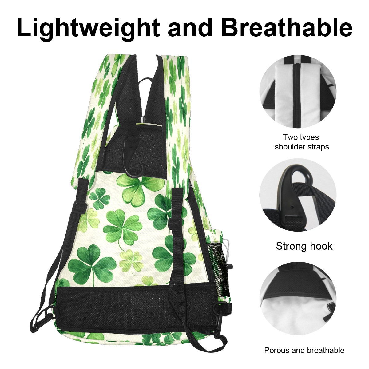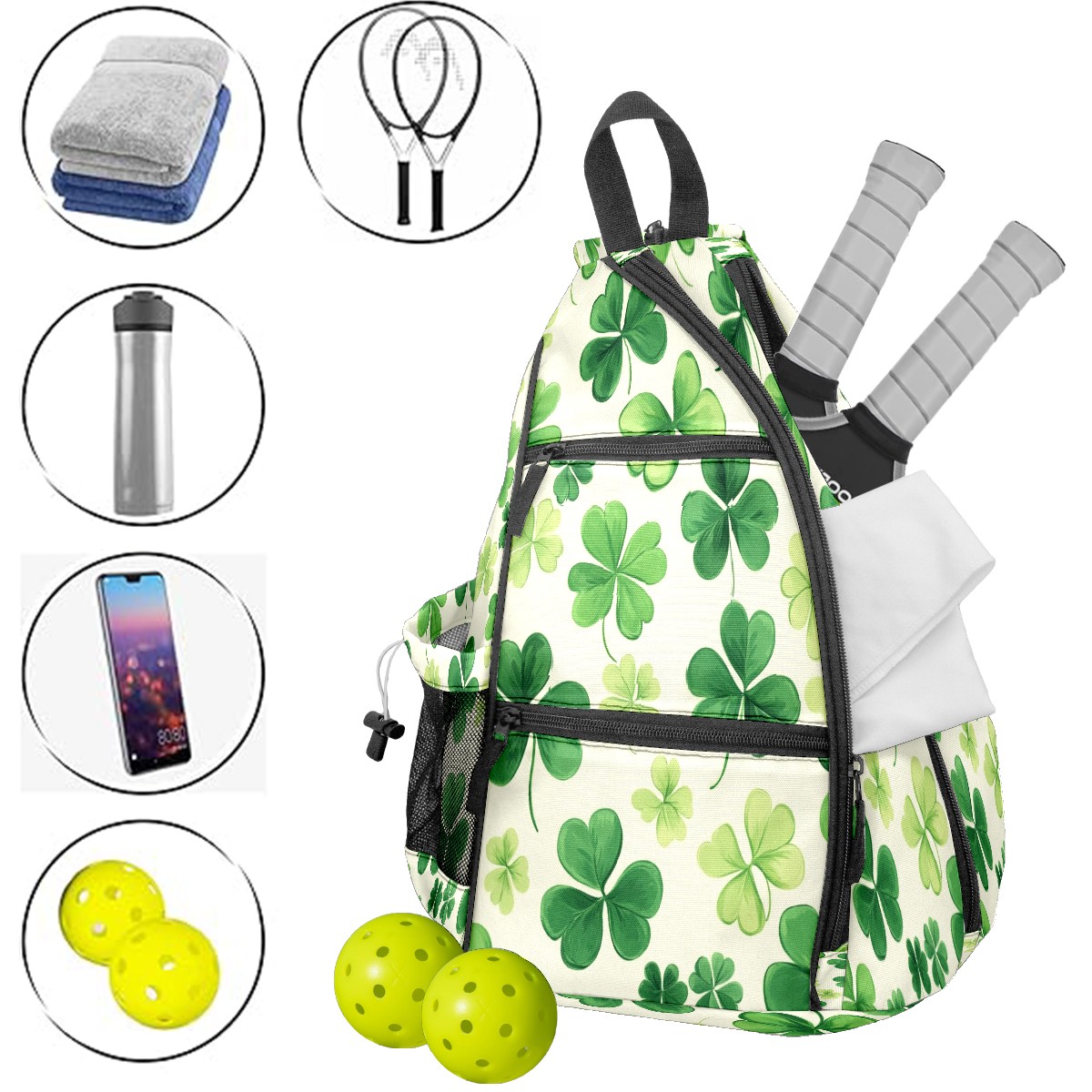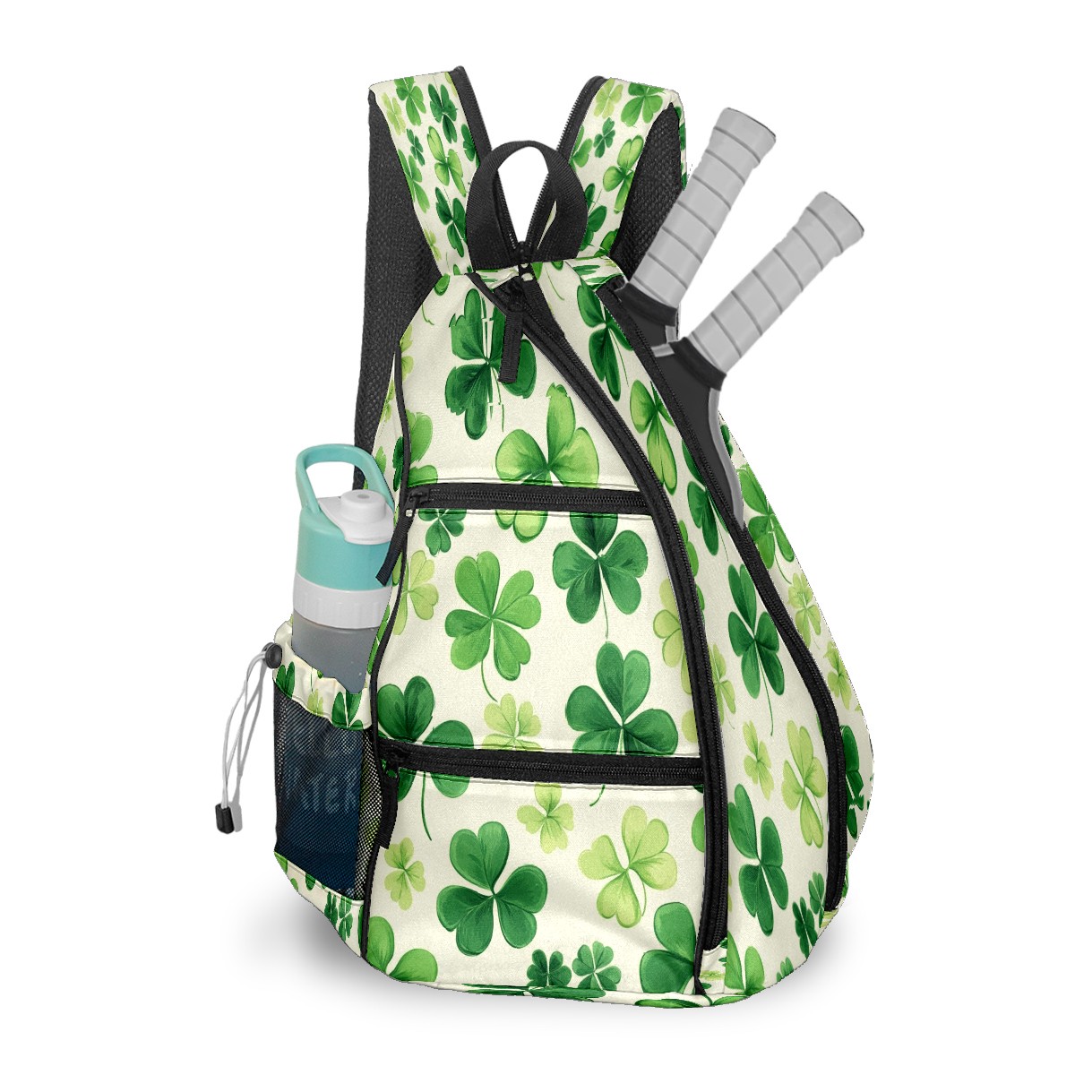 Pickleball Backpack for Women and Men, Adjustable Pickleball Sling Bag for Paddles, Balls & Accessories (Shamrocks)