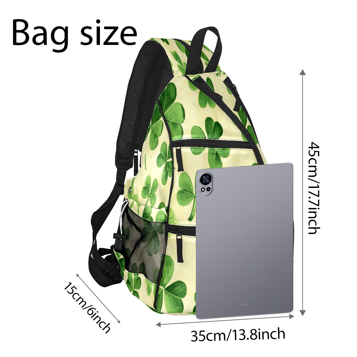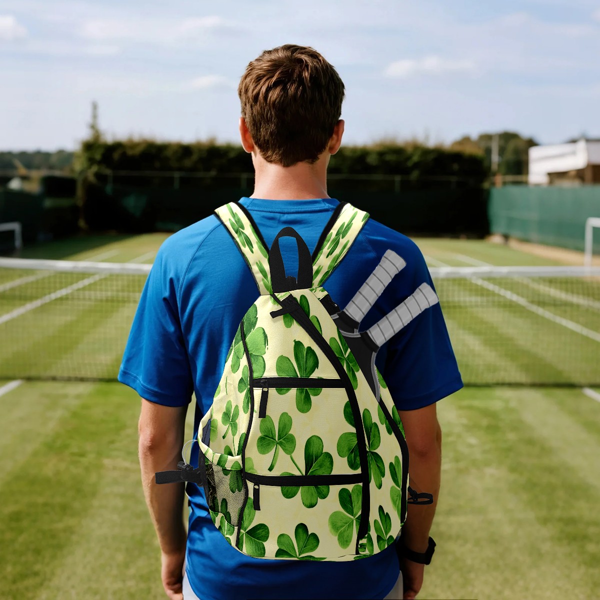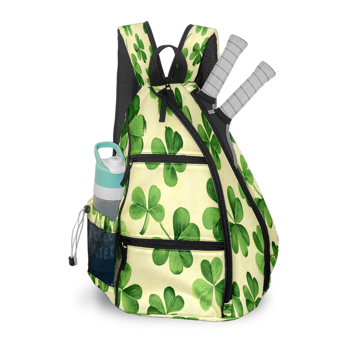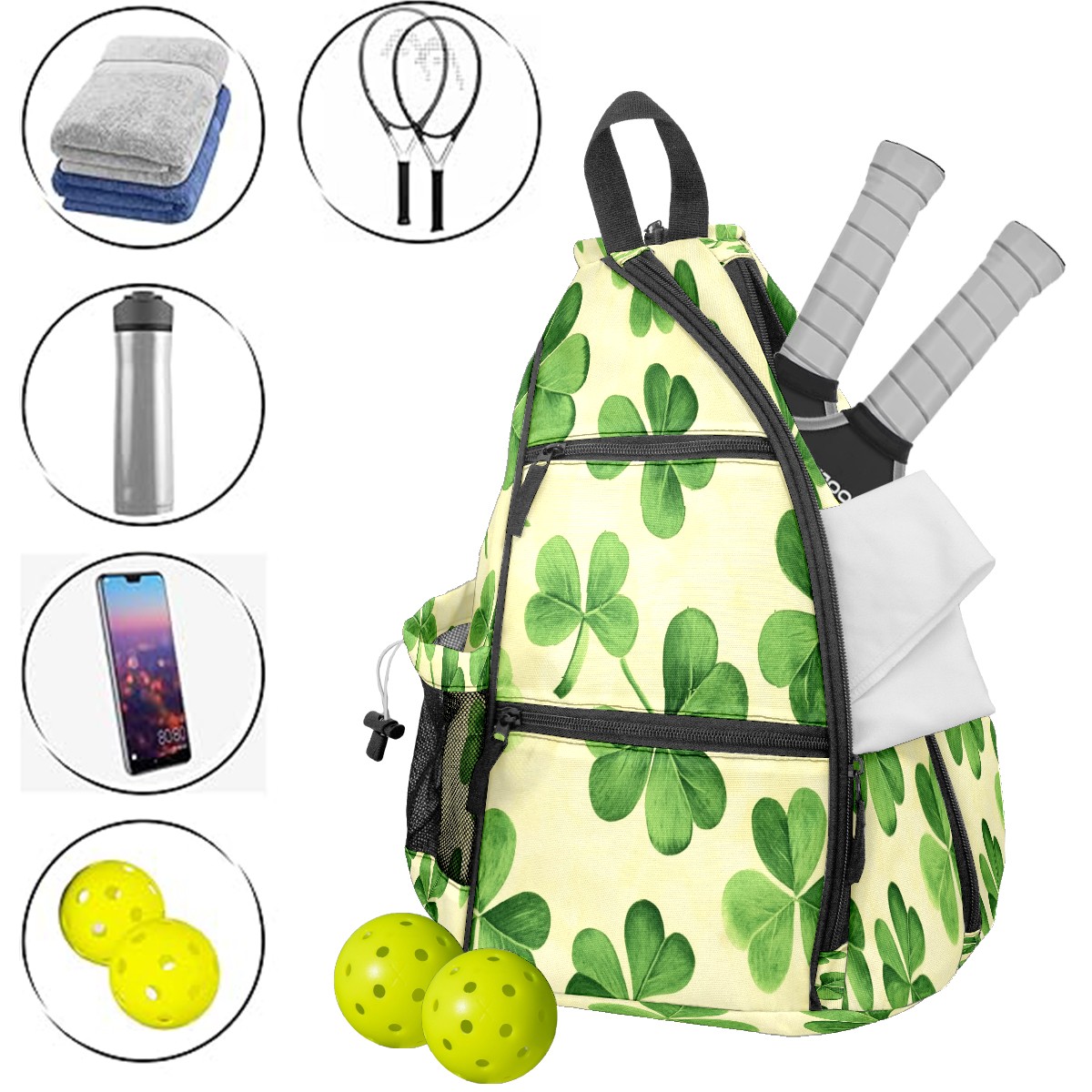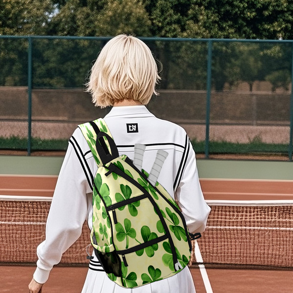 Pickleball Backpack for Women and Men, Adjustable Pickleball Sling Bag for Paddles, Balls & Accessories (Green Shamrocks)