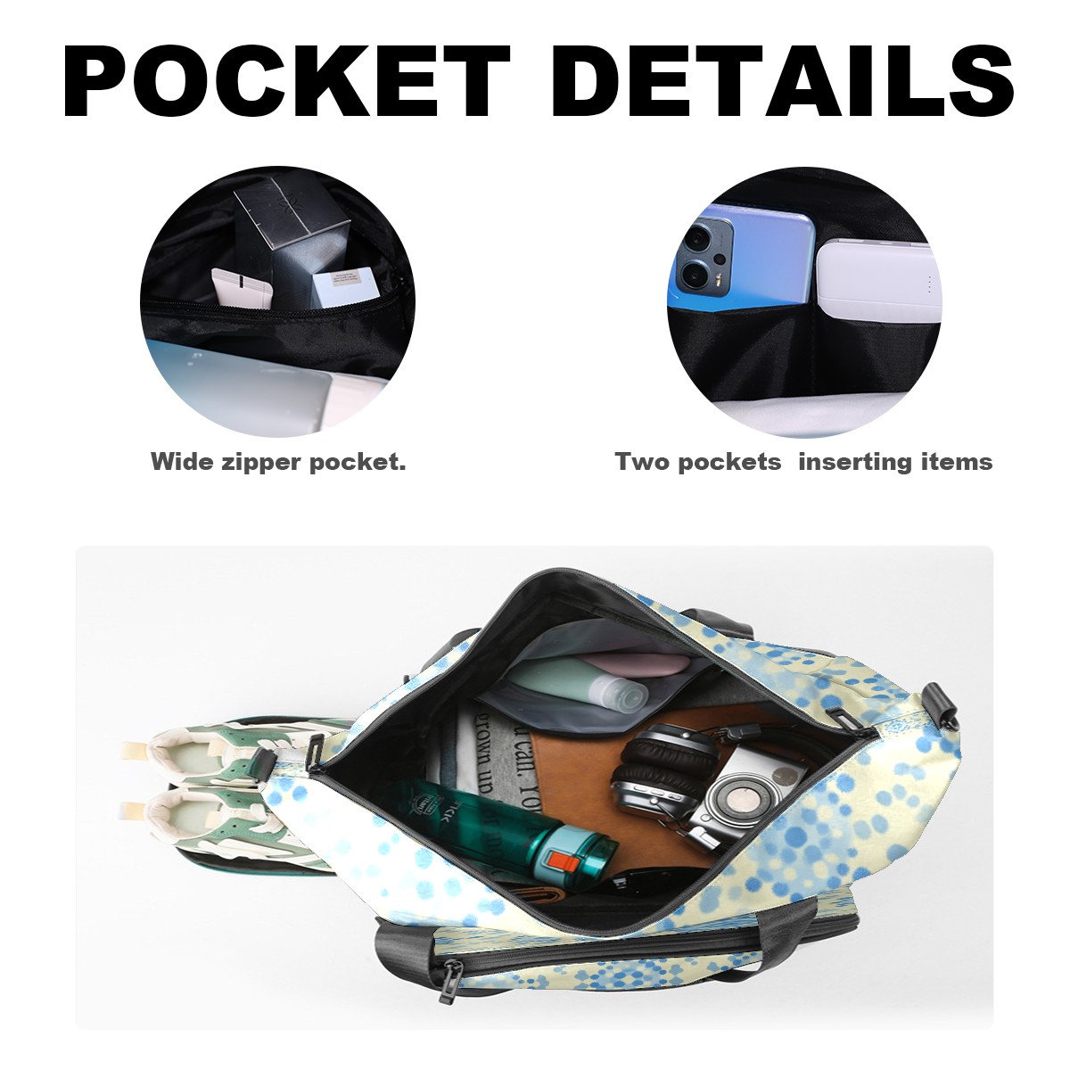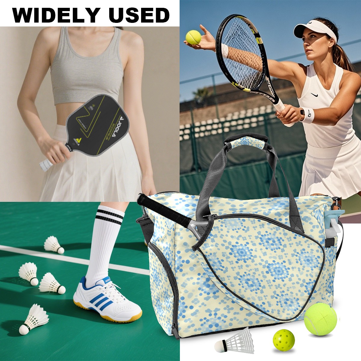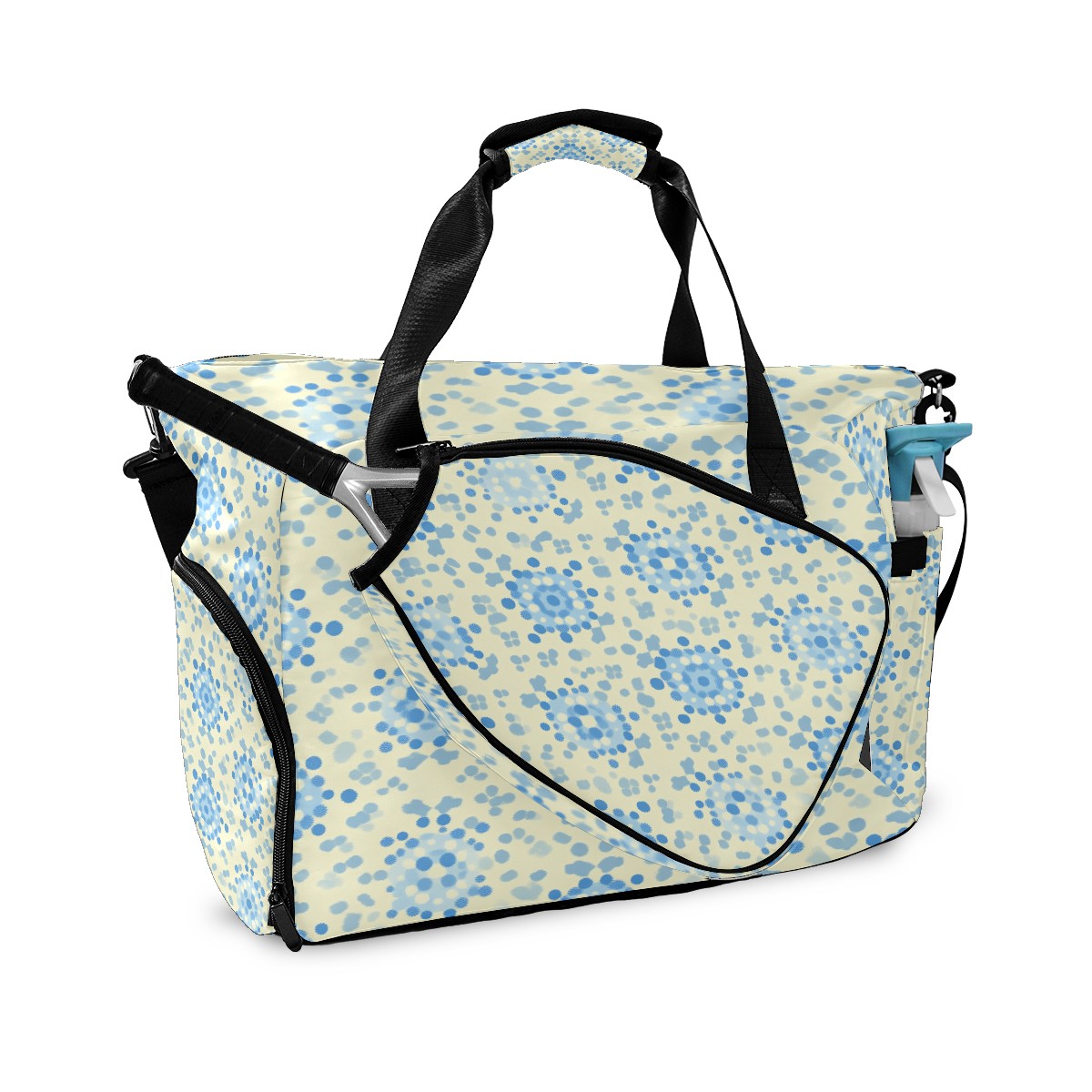 Pickleball Tote Bag Carryall for Paddles Balls and Accessories, Portable Lightweight Gear Bag for Players(Blue And White Dots)