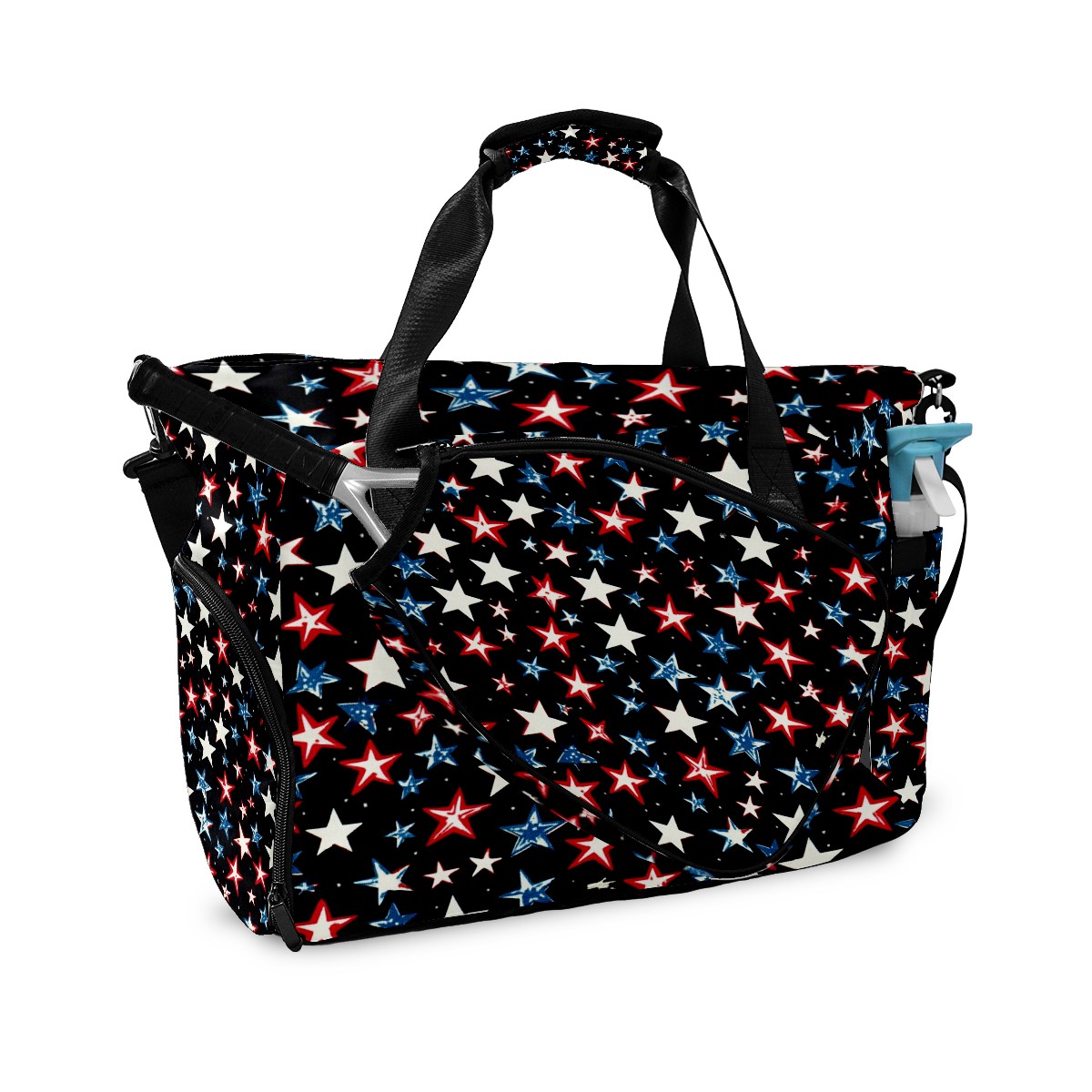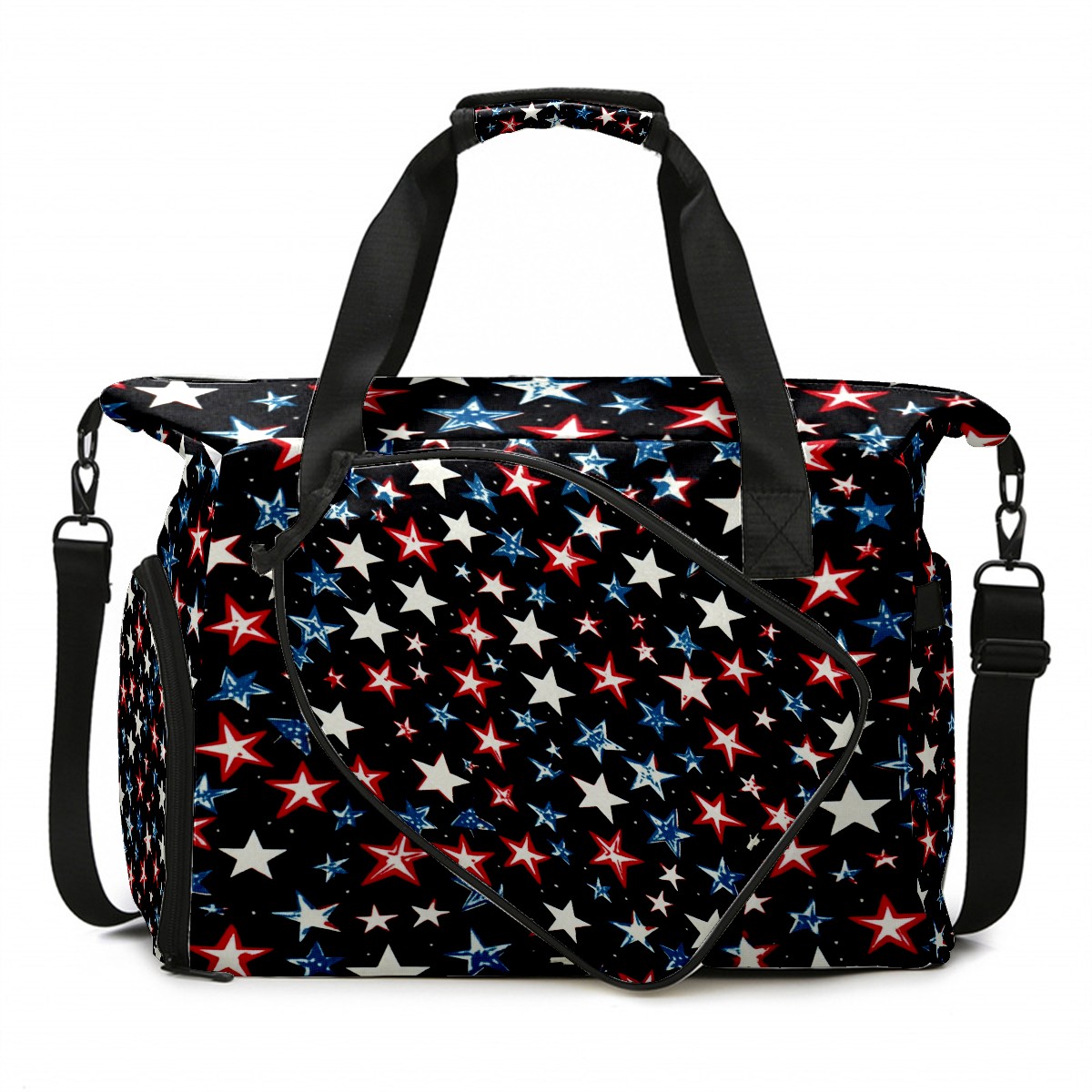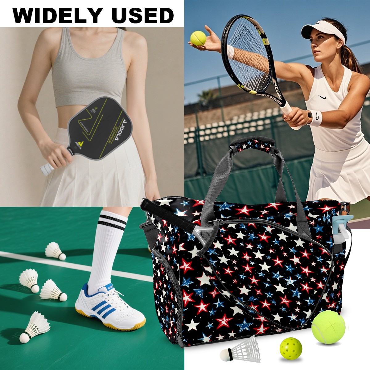 Pickleball Tote Bag Carryall for Paddles Balls and Accessories, Portable Lightweight Gear Bag for Players(Red White And Blue Stars)