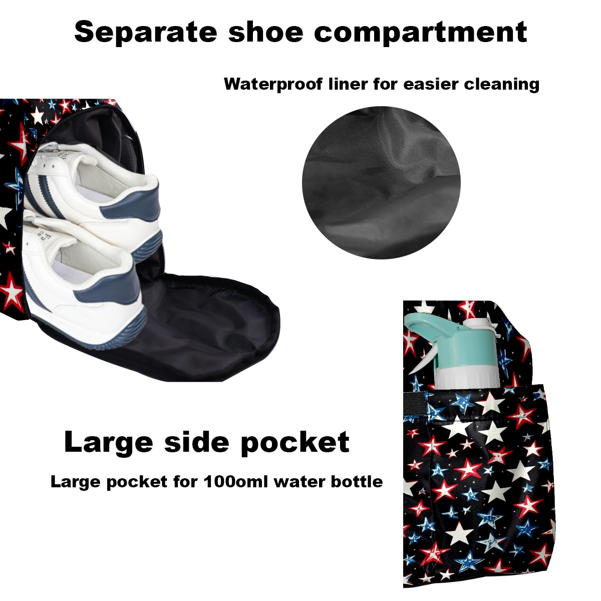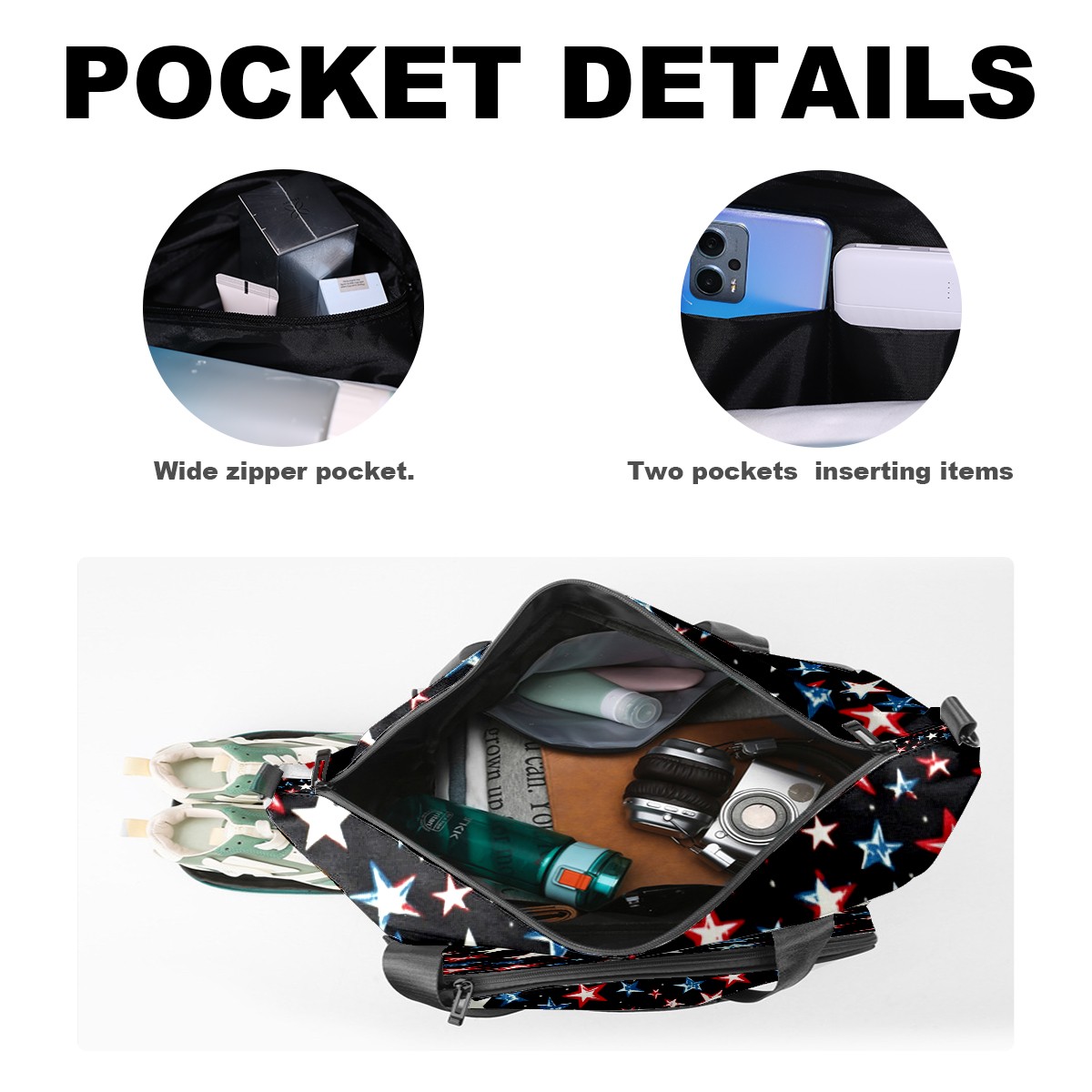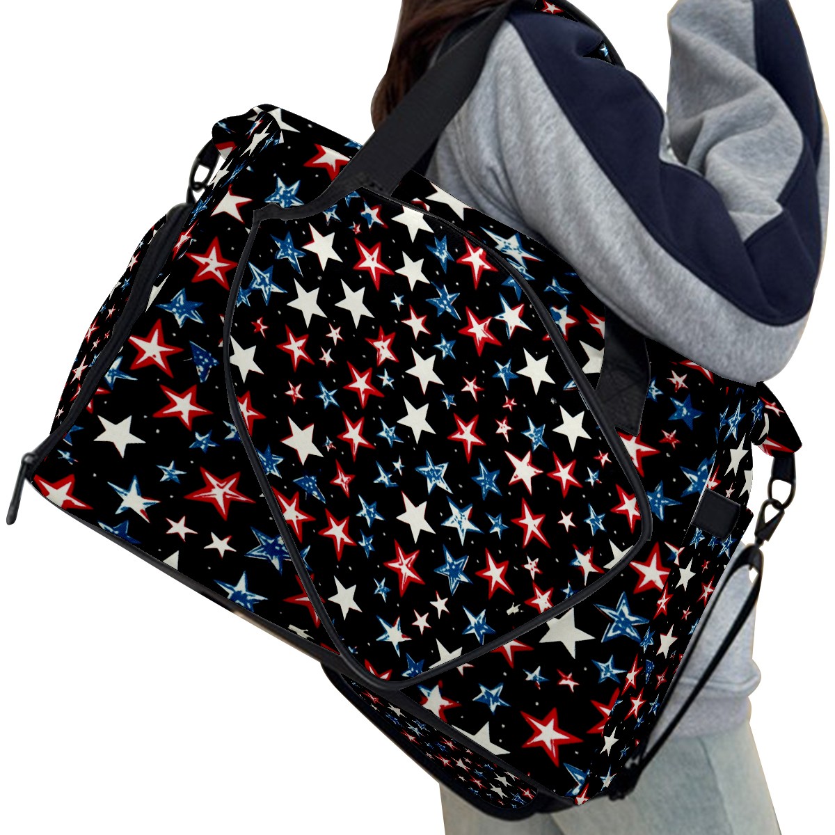 Pickleball Tote Bag Carryall for Paddles Balls and Accessories, Portable Lightweight Gear Bag for Players(Red White And Blue Stars)