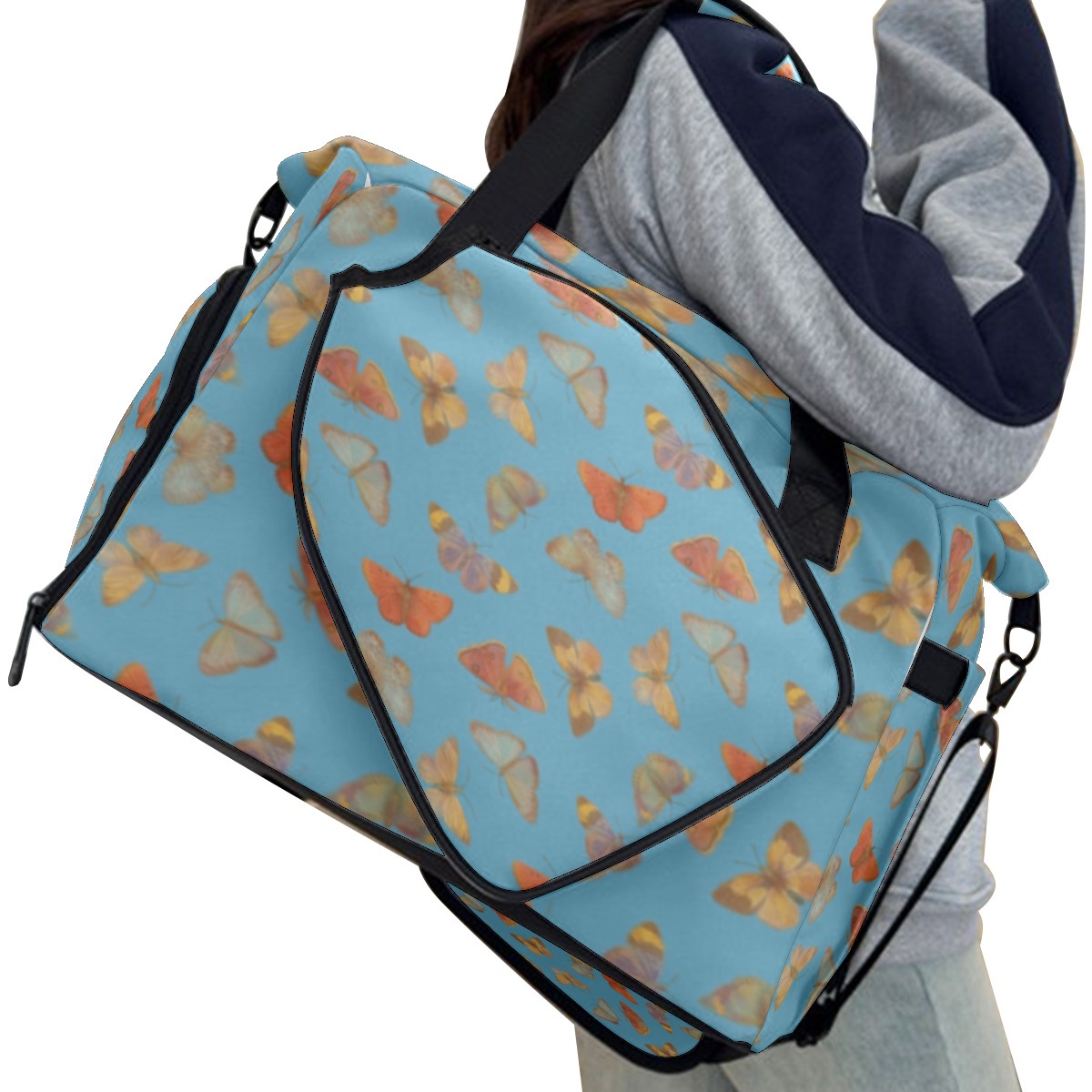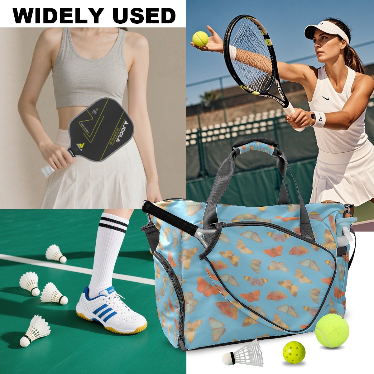 Pickleball Tote Bag Carryall for Paddles Balls and Accessories, Portable Lightweight Gear Bag for Players(Butterfly)