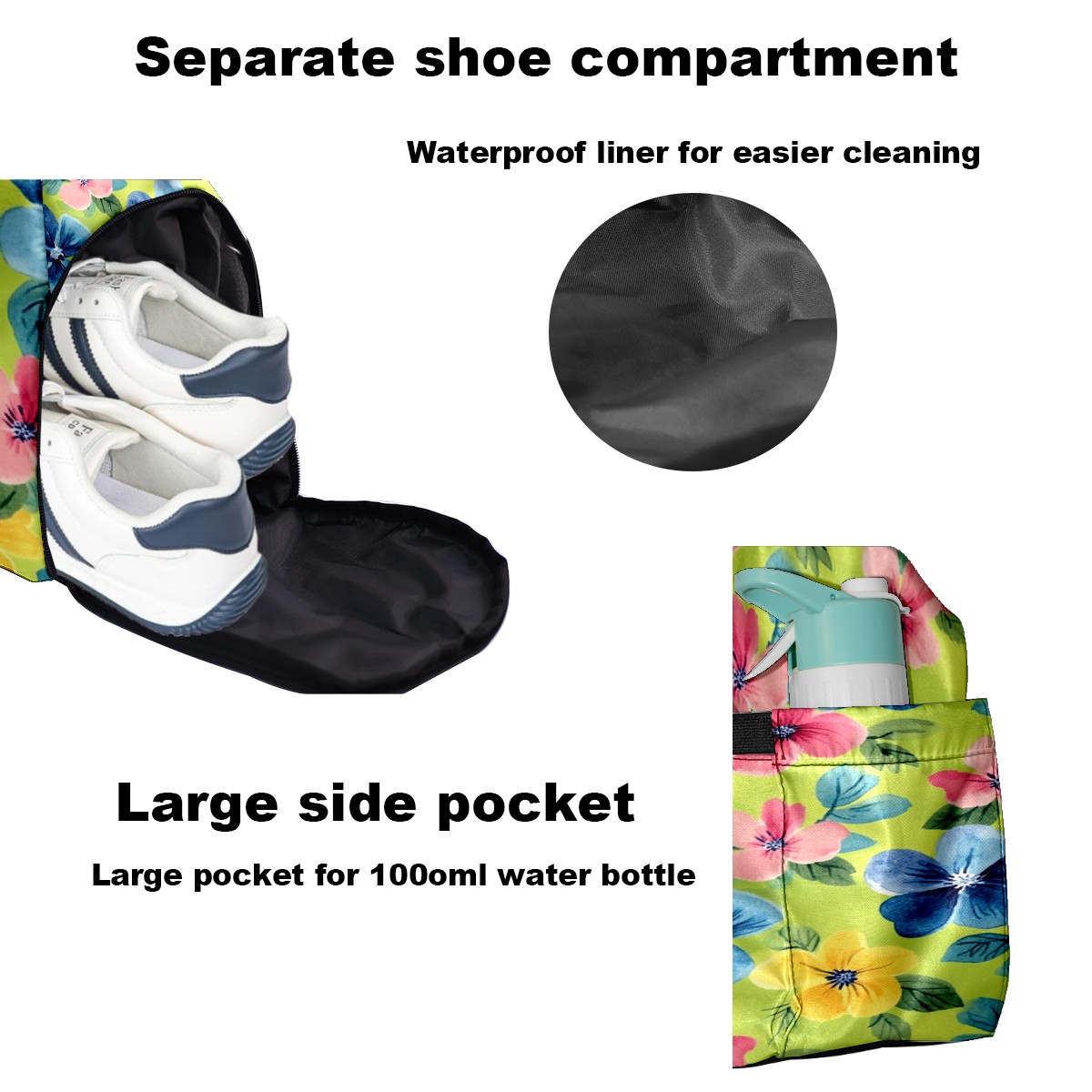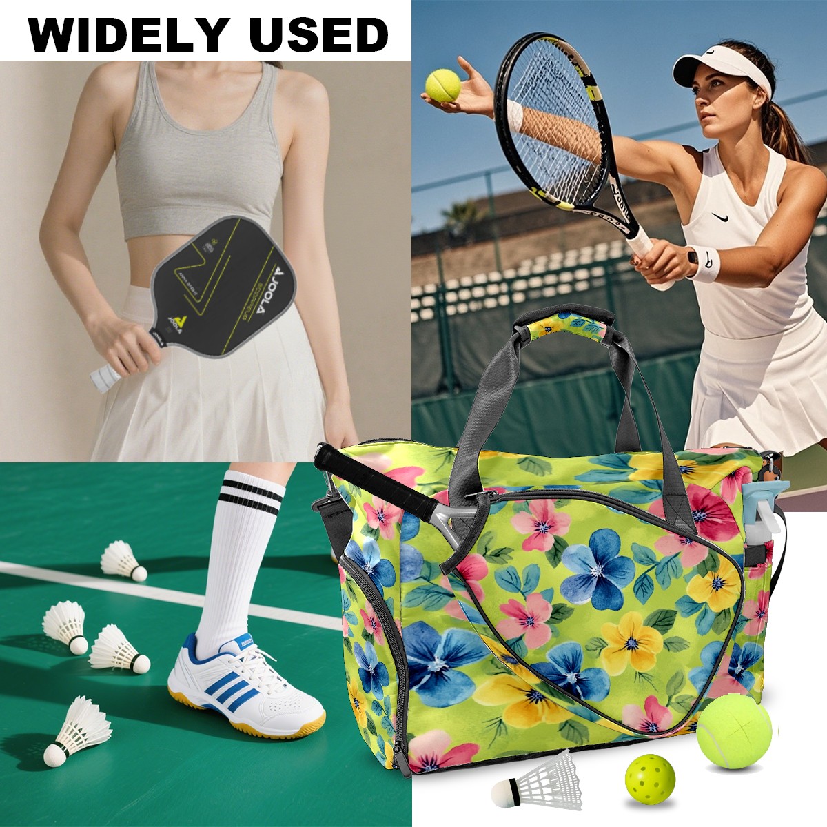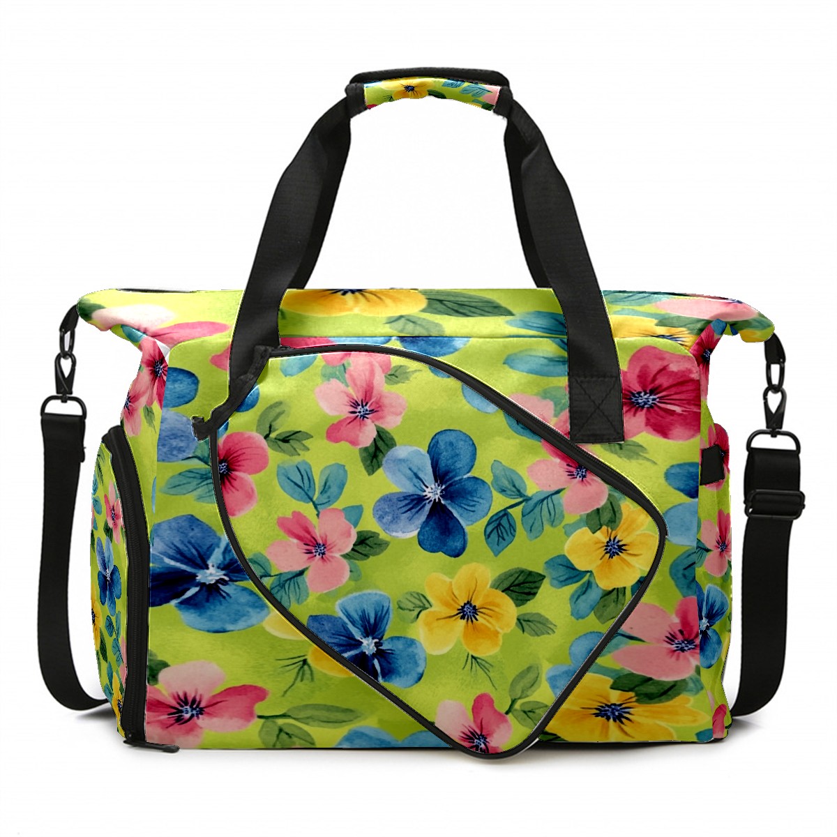 Pickleball Tote Bag Carryall for Paddles Balls and Accessories, Portable Lightweight Gear Bag for Players(Watercolor Flowers)