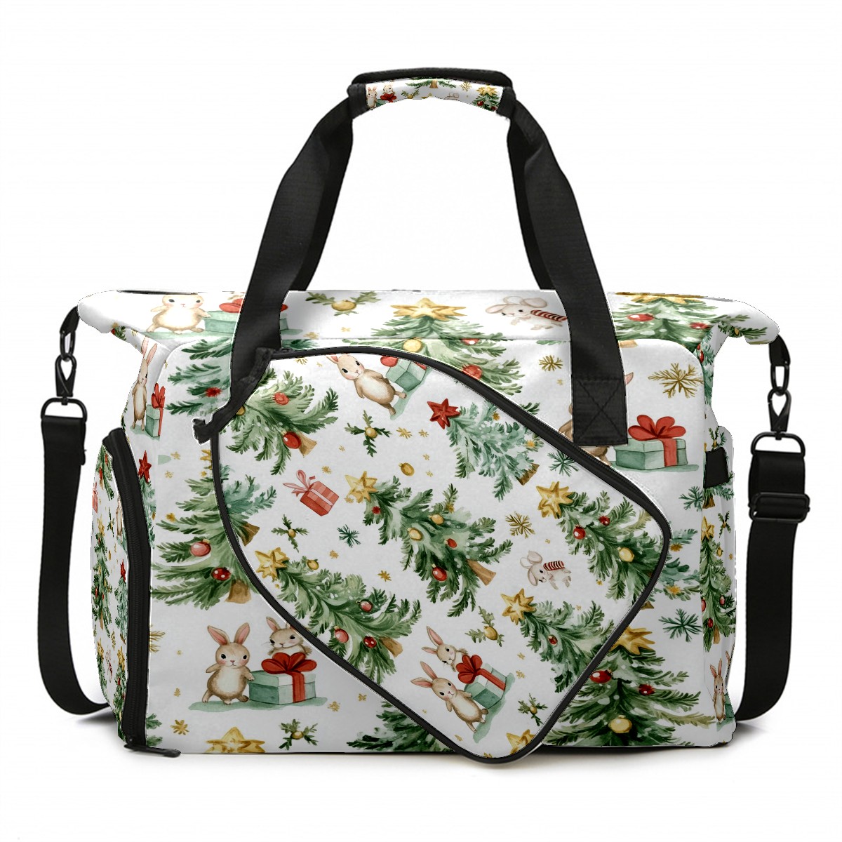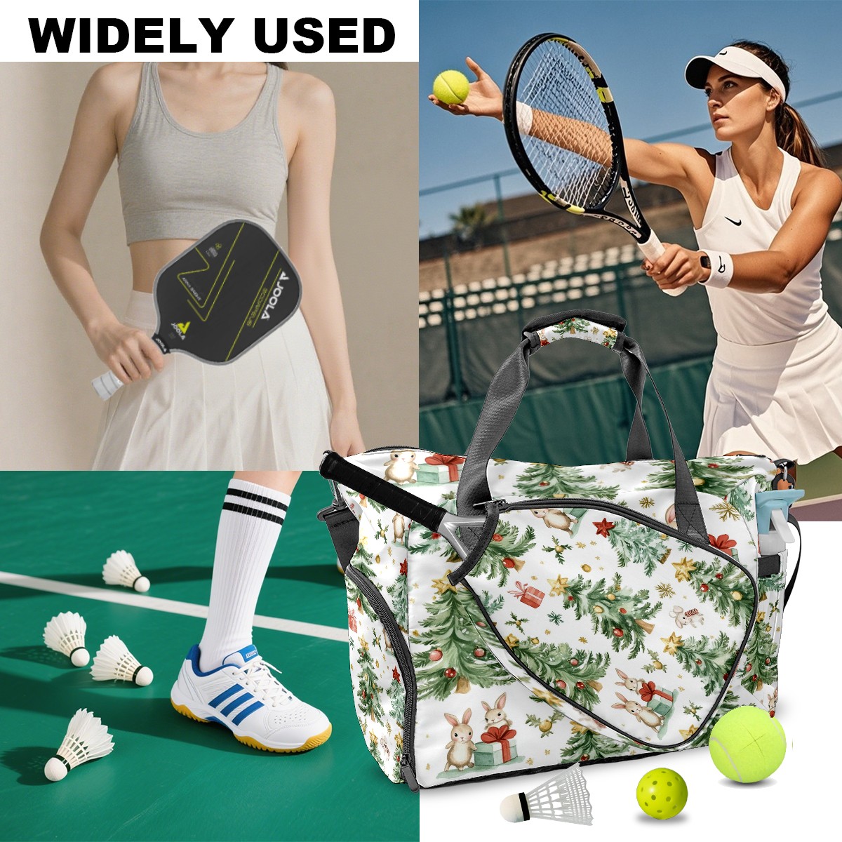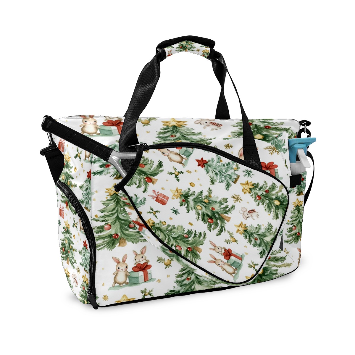 Pickleball Tote Bag Carryall for Paddles Balls and Accessories, Portable Lightweight Gear Bag for Players(Watercolor Christmas Trees)