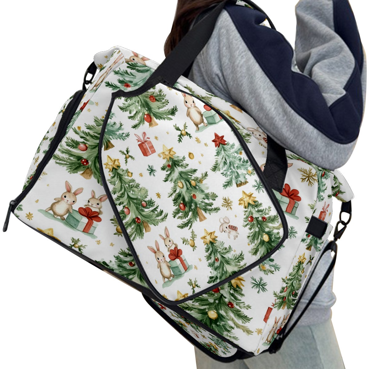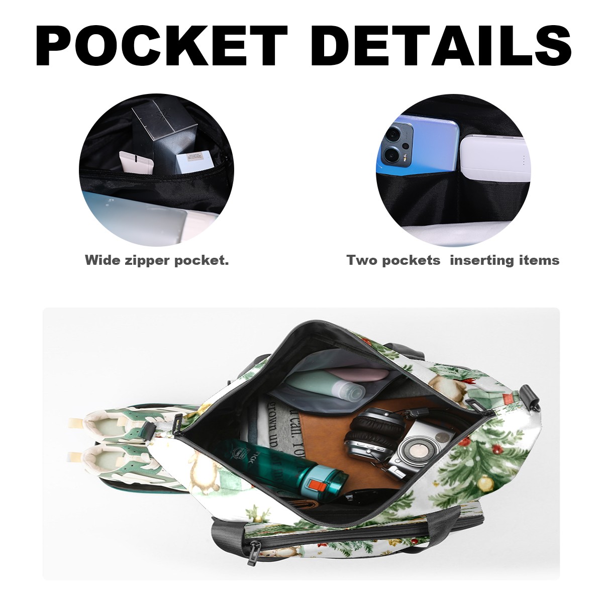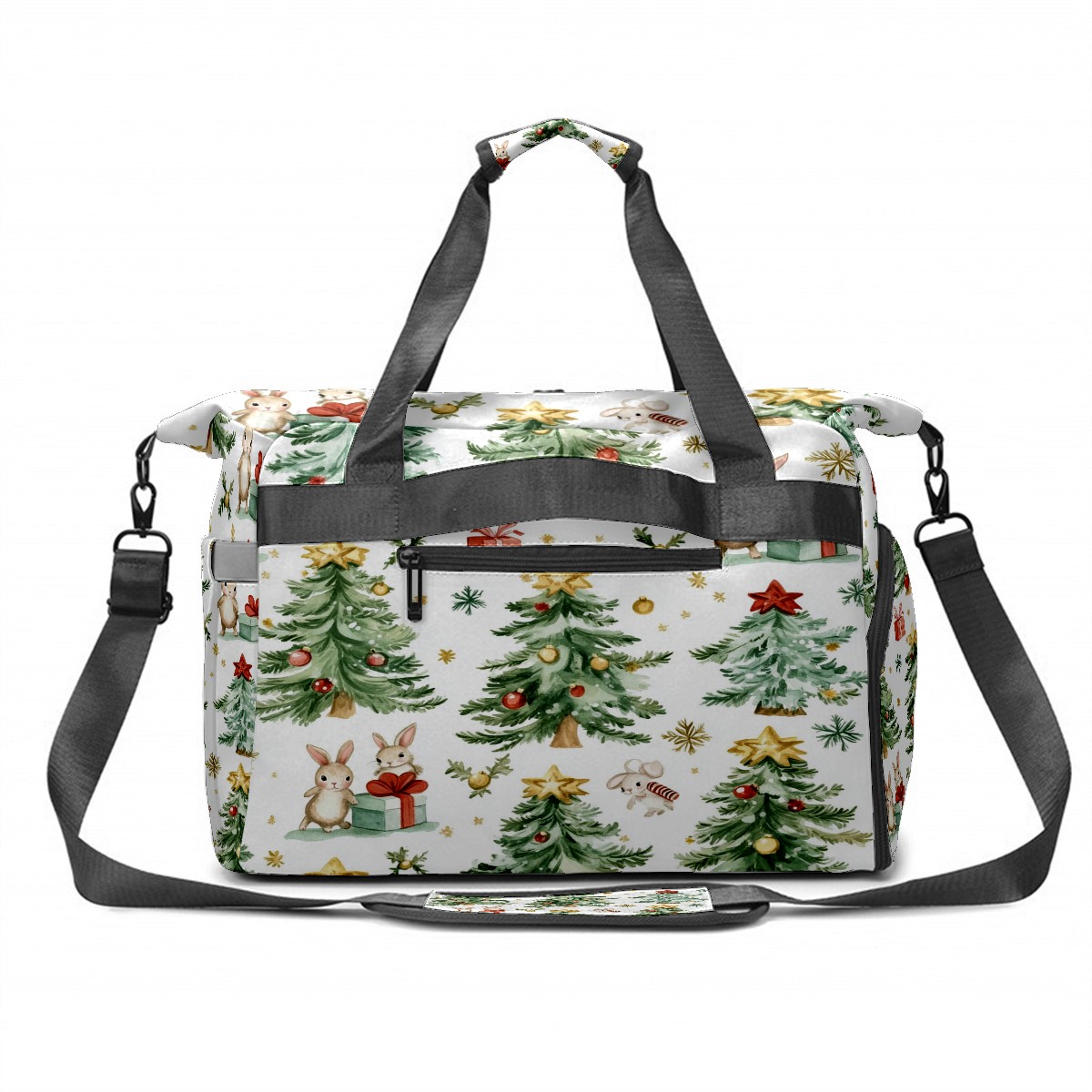 Pickleball Tote Bag Carryall for Paddles Balls and Accessories, Portable Lightweight Gear Bag for Players(Watercolor Christmas Trees)