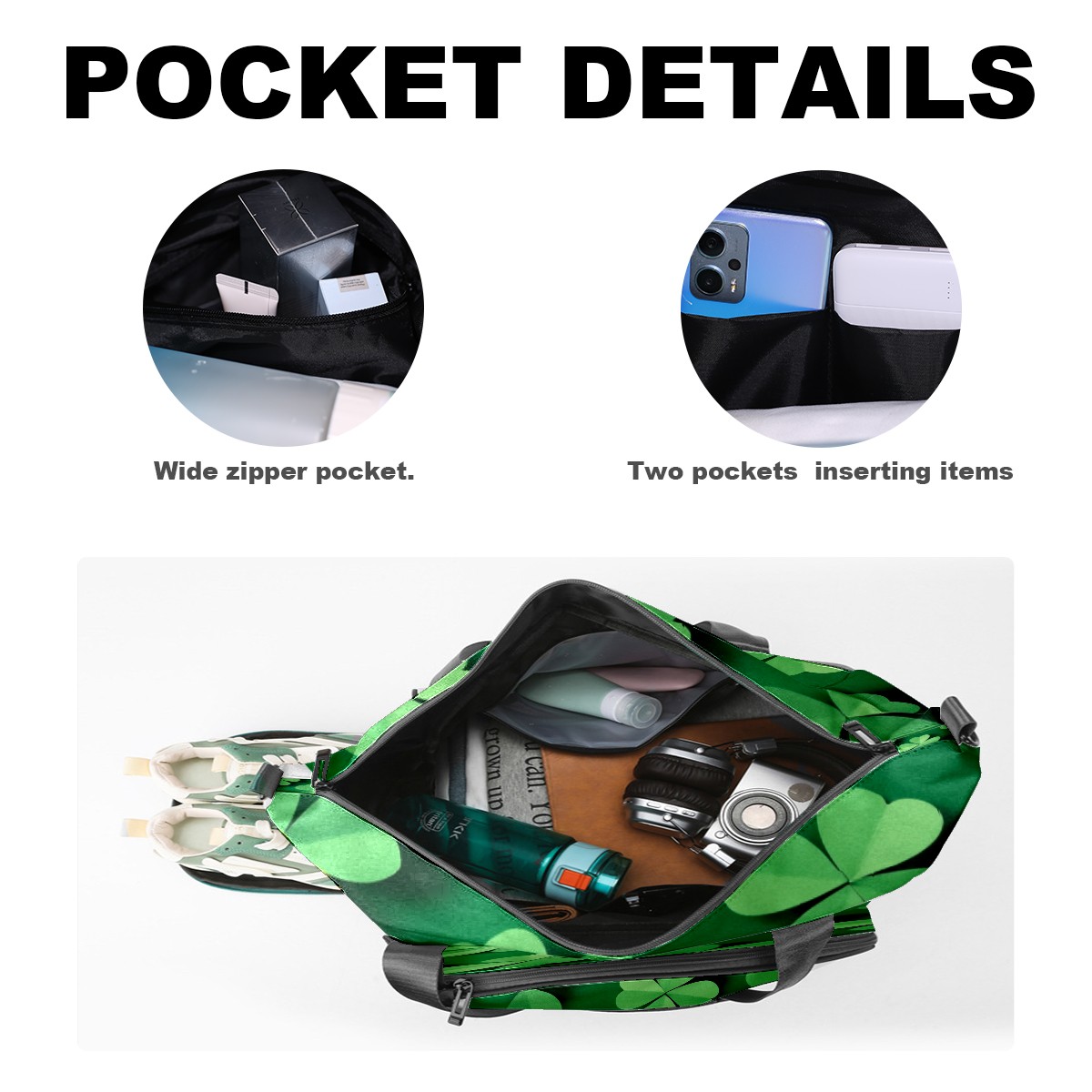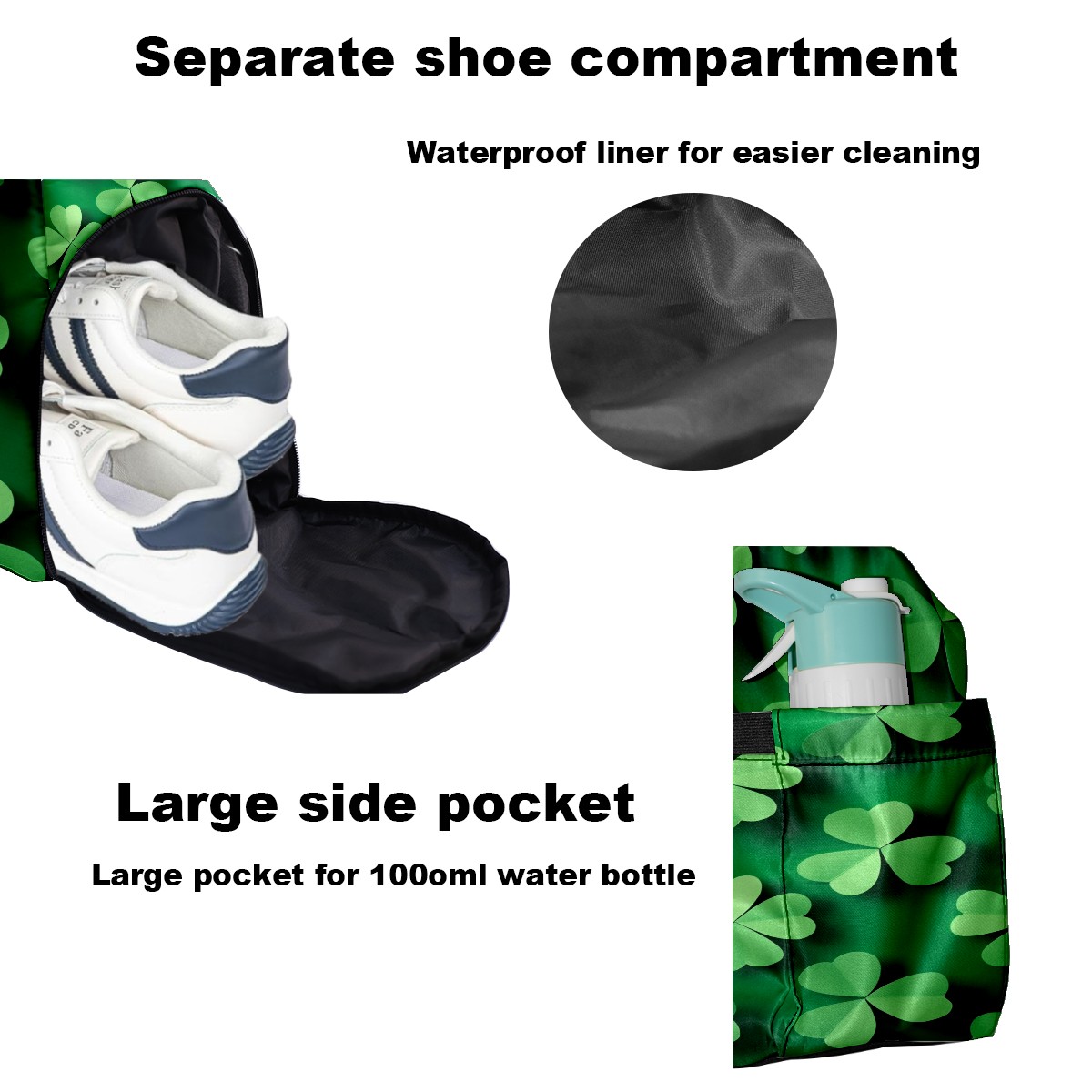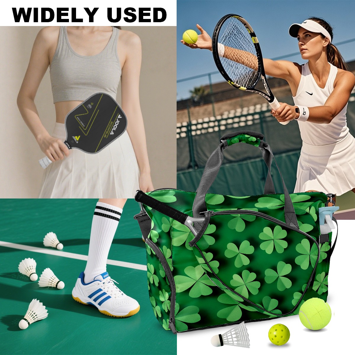 Pickleball Tote Bag Carryall for Paddles Balls and Accessories, Portable Lightweight Gear Bag for Players(Green Shamrock)