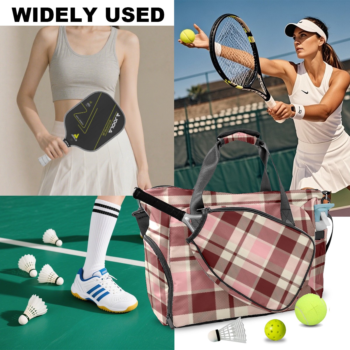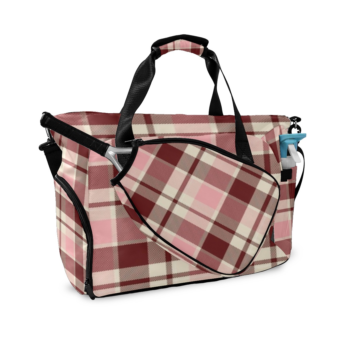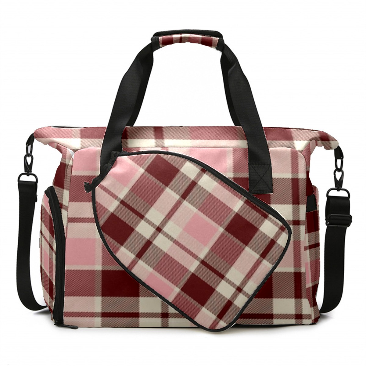 Pickleball Tote Bag Carryall for Paddles Balls and Accessories, Portable Lightweight Gear Bag for Players(Pink And Brown Checkered)