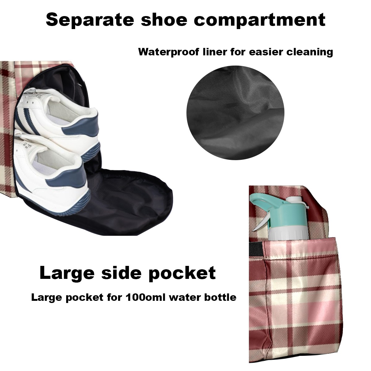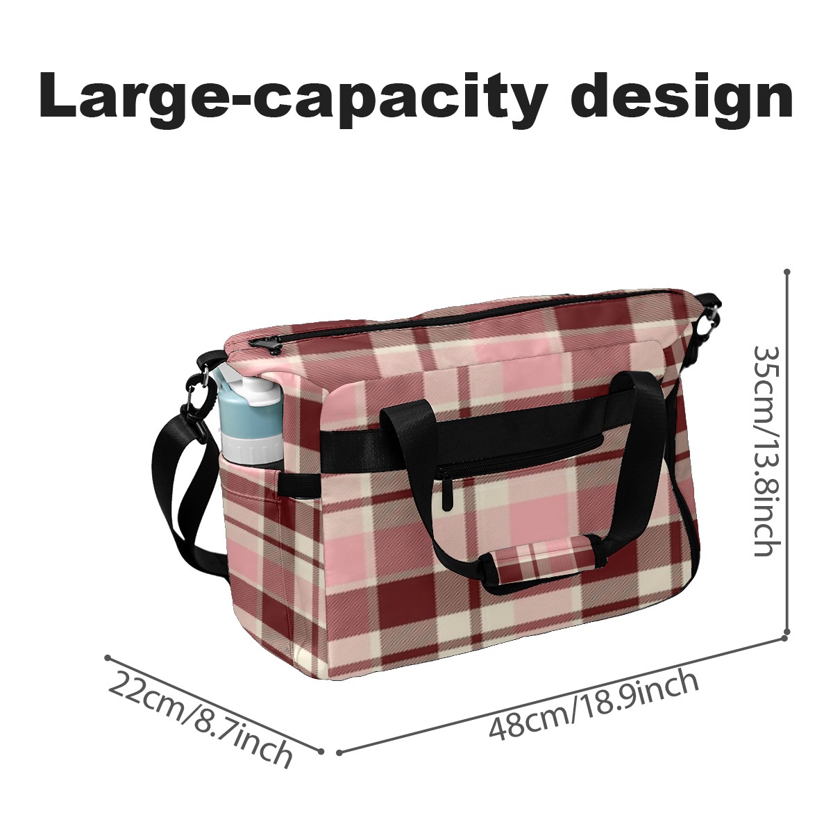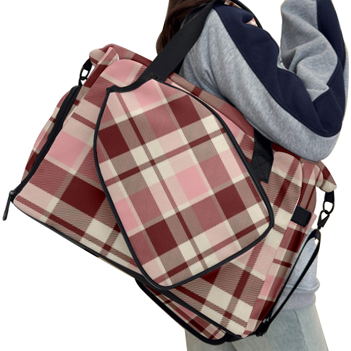 Pickleball Tote Bag Carryall for Paddles Balls and Accessories, Portable Lightweight Gear Bag for Players(Pink And Brown Checkered)