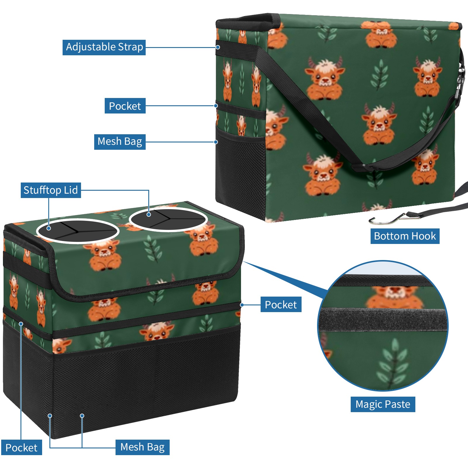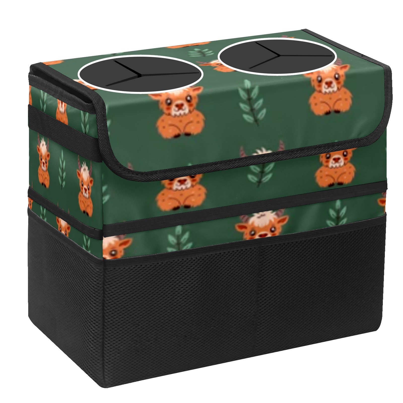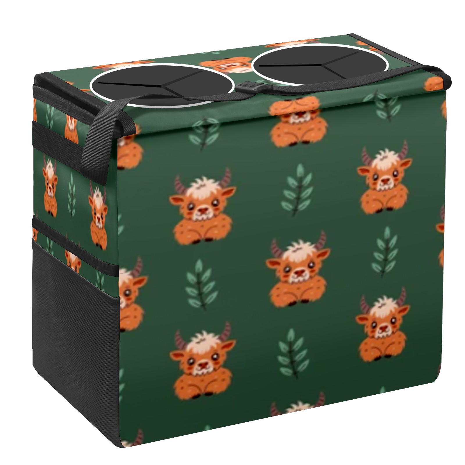 Car Trash Can with Lid, Portable Hanging Automotive Garbage Bin for Vehicles, Leakproof Waste Bag Container for SUV Truck Van Interior Auto Travel Road Trips(Cow)