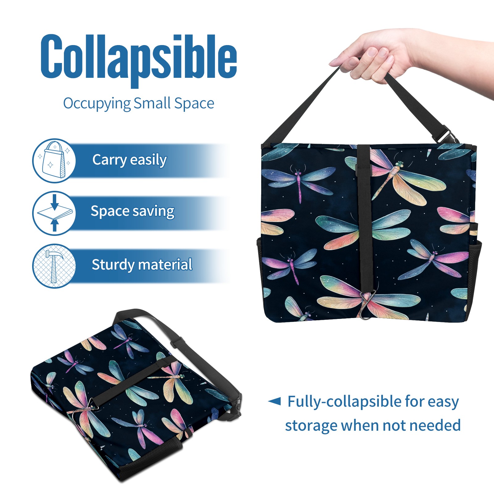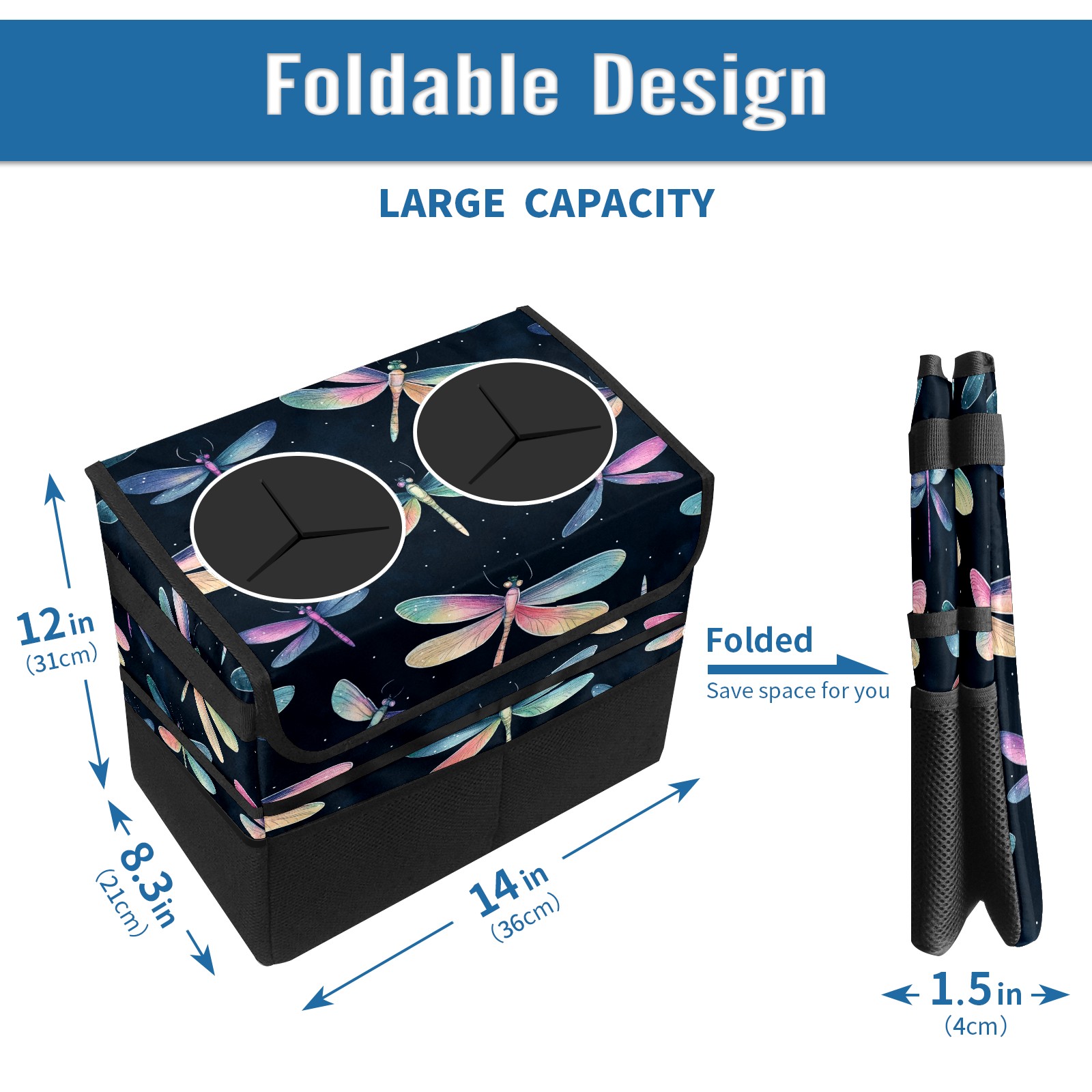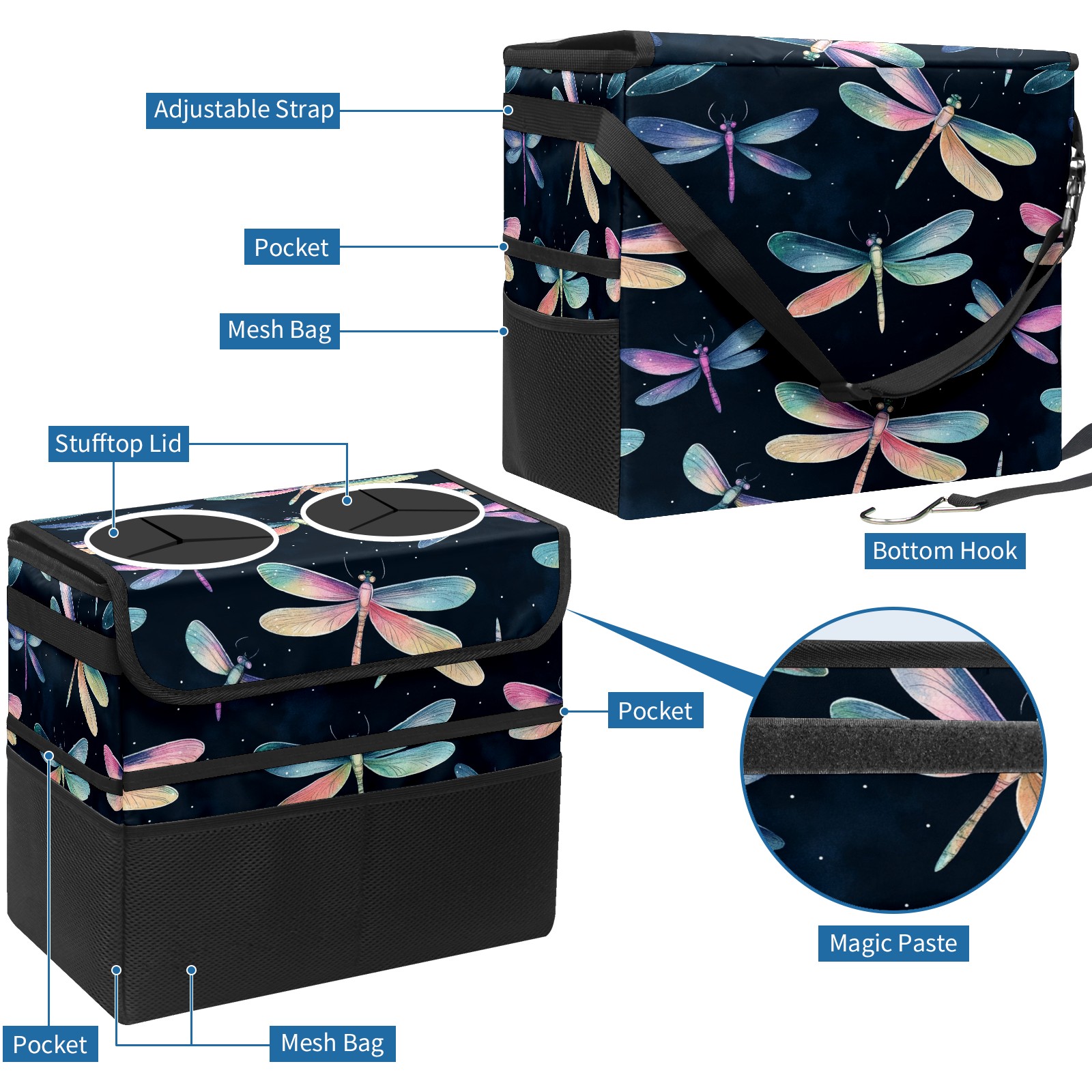 Car Trash Can with Lid, Portable Hanging Automotive Garbage Bin for Vehicles, Leakproof Waste Bag Container for SUV Truck Van Interior Auto Travel Road Trips(Iridescent Dragonflies)