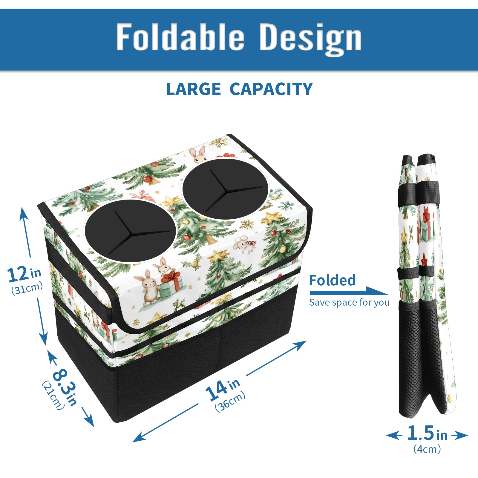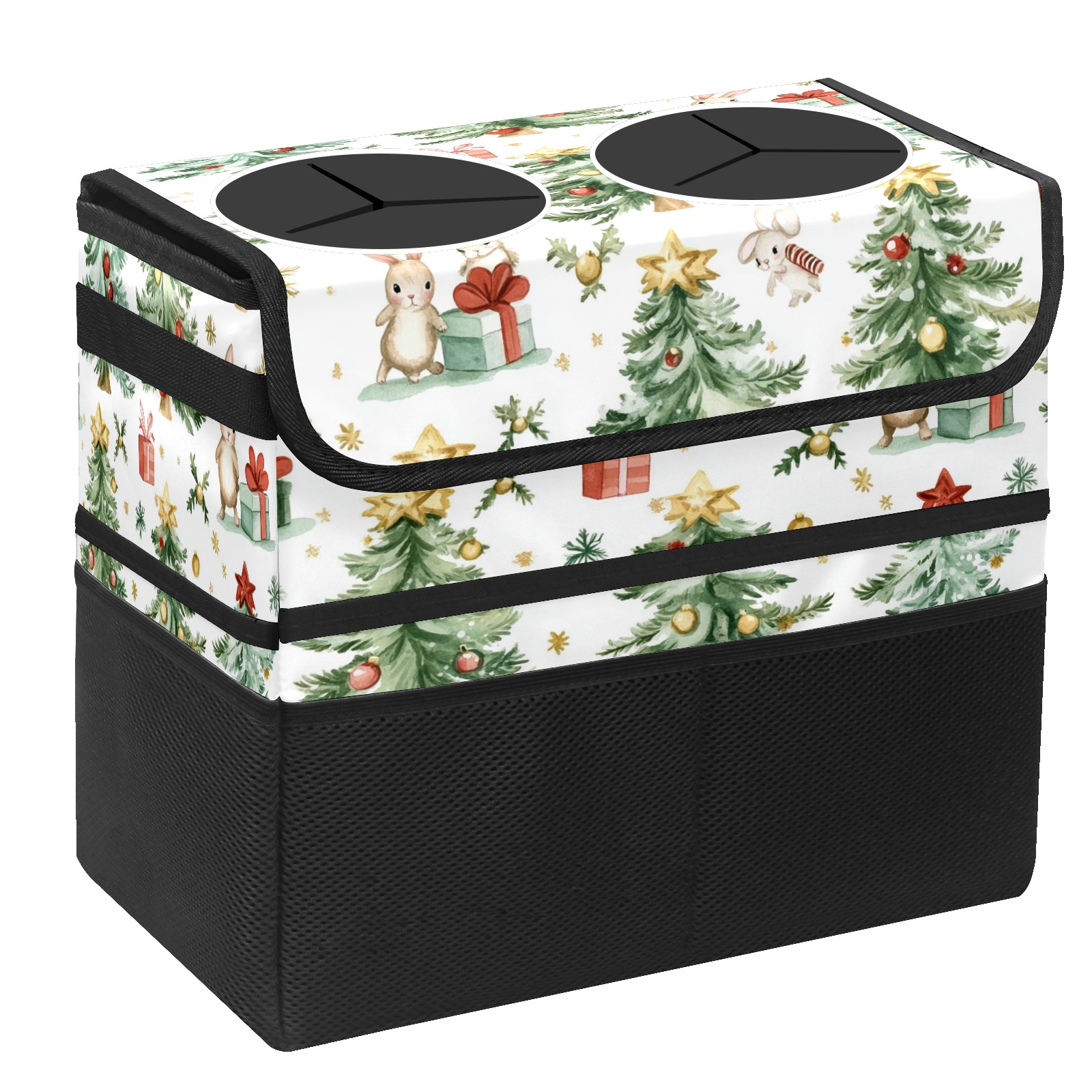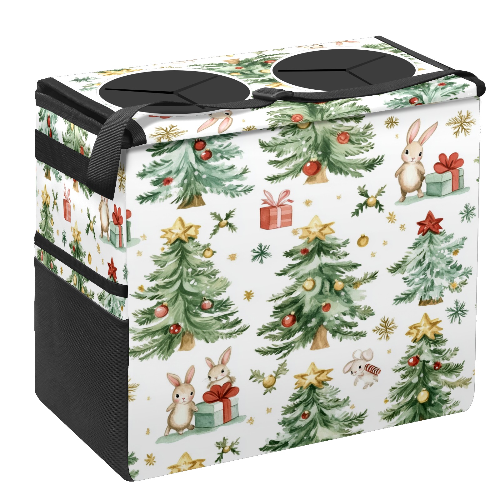 Car Trash Can with Lid, Portable Hanging Automotive Garbage Bin for Vehicles, Leakproof Waste Bag Container for SUV Truck Van Interior Auto Travel Road Trips(Watercolor Christmas Trees)