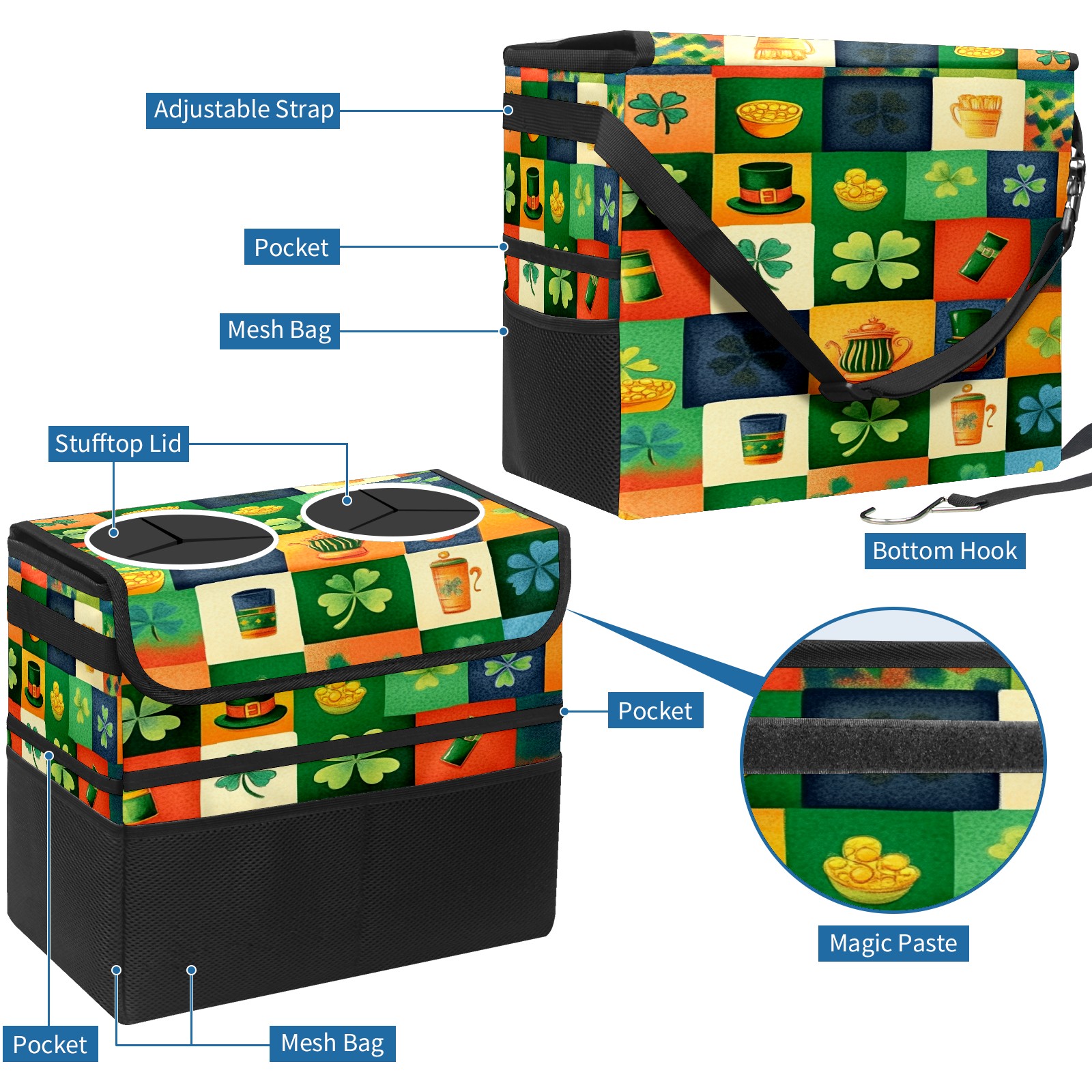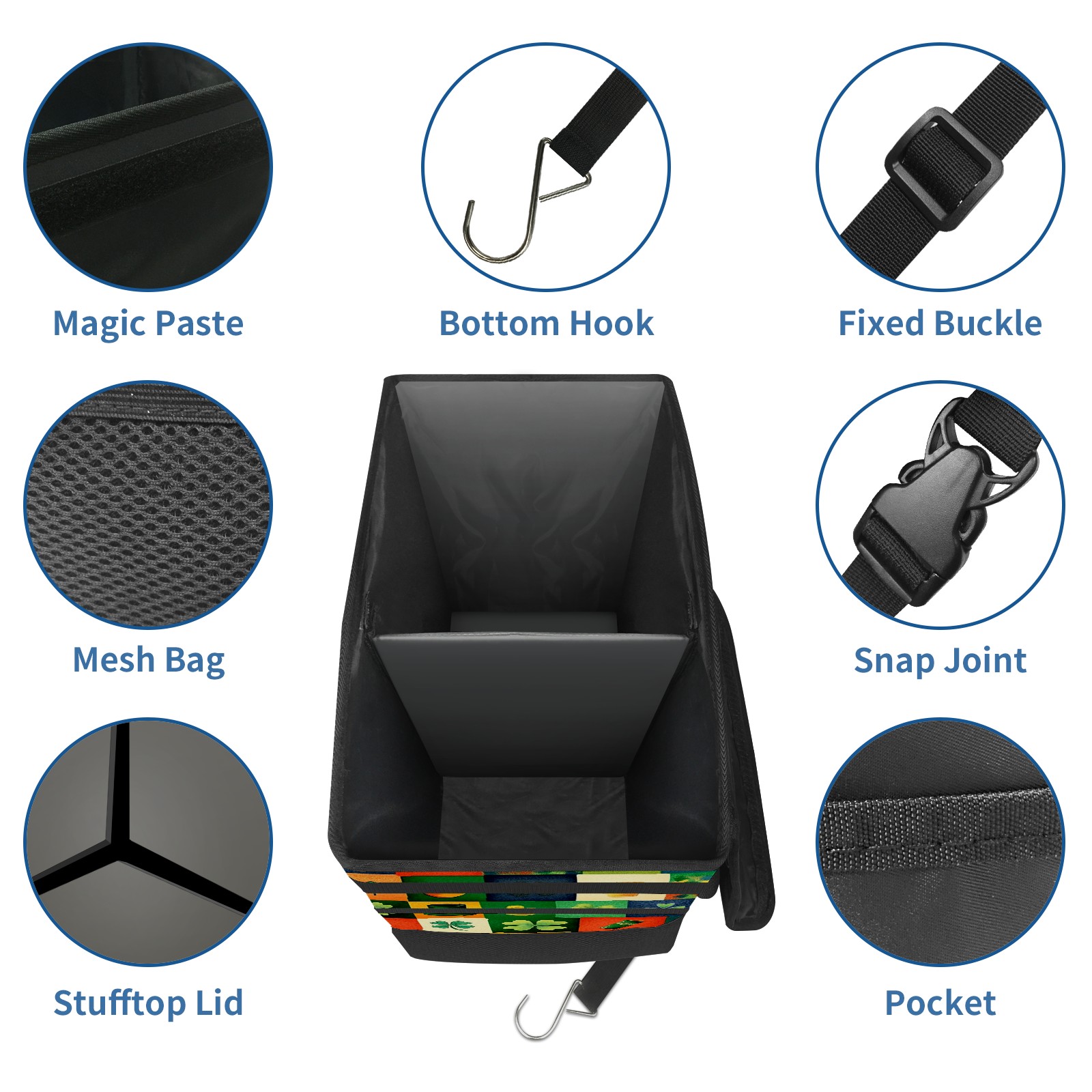 Car Trash Can with Lid, Portable Hanging Automotive Garbage Bin for Vehicles, Leakproof Waste Bag Container for SUV Truck Van Interior Auto Travel Road Trips(Vibrant And Colorful)