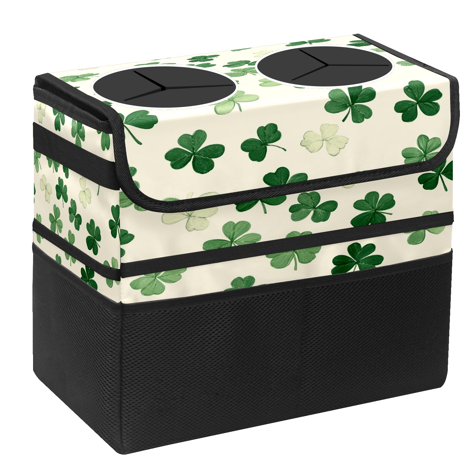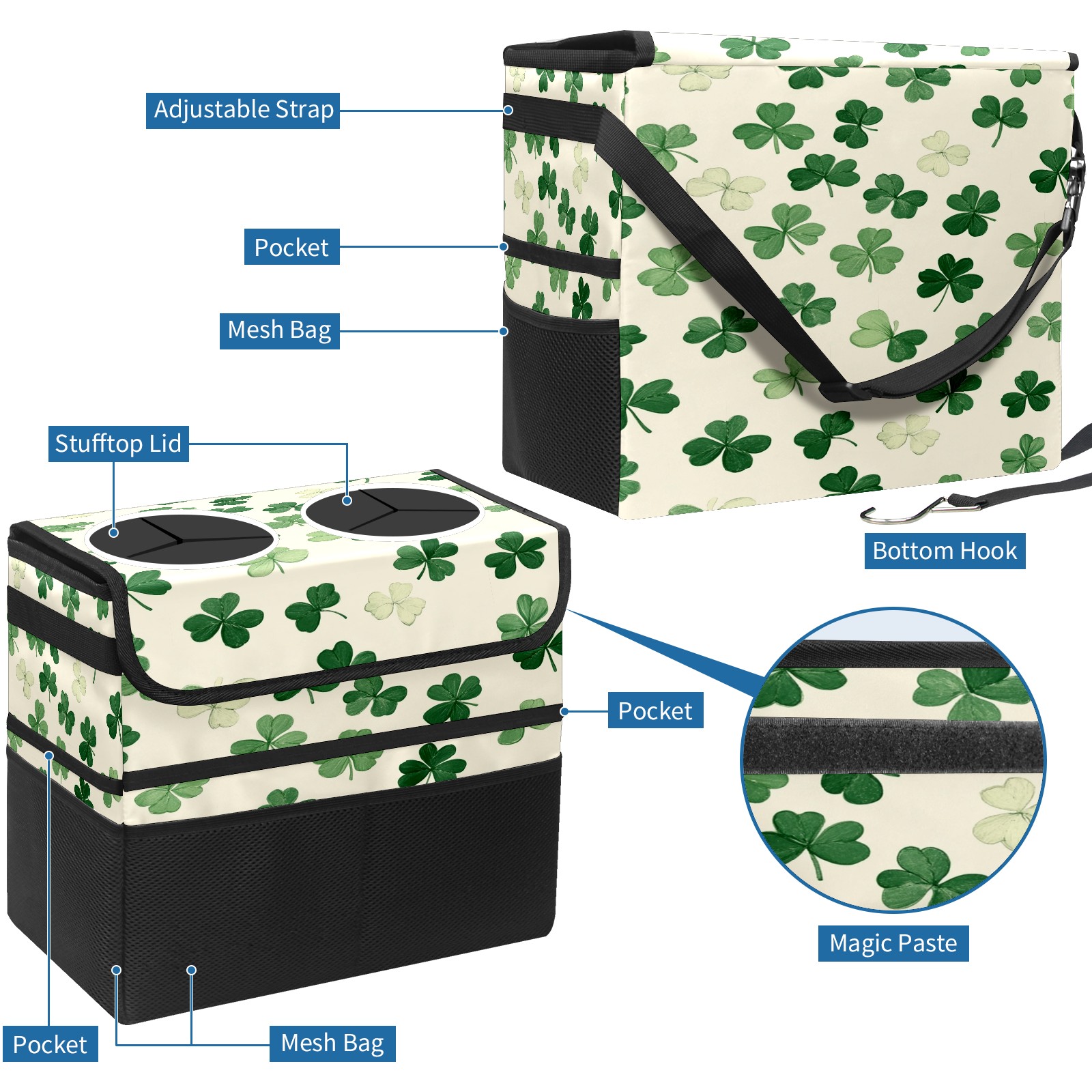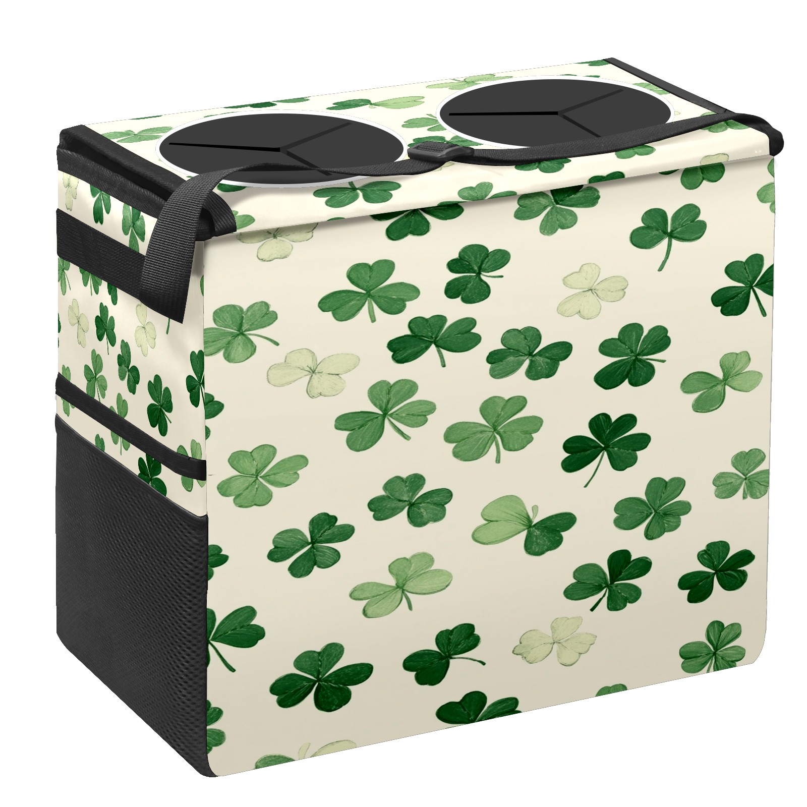 Car Trash Can with Lid, Portable Hanging Automotive Garbage Bin for Vehicles, Leakproof Waste Bag Container for SUV Truck Van Interior Auto Travel Road Trips(Small Shamrocks)