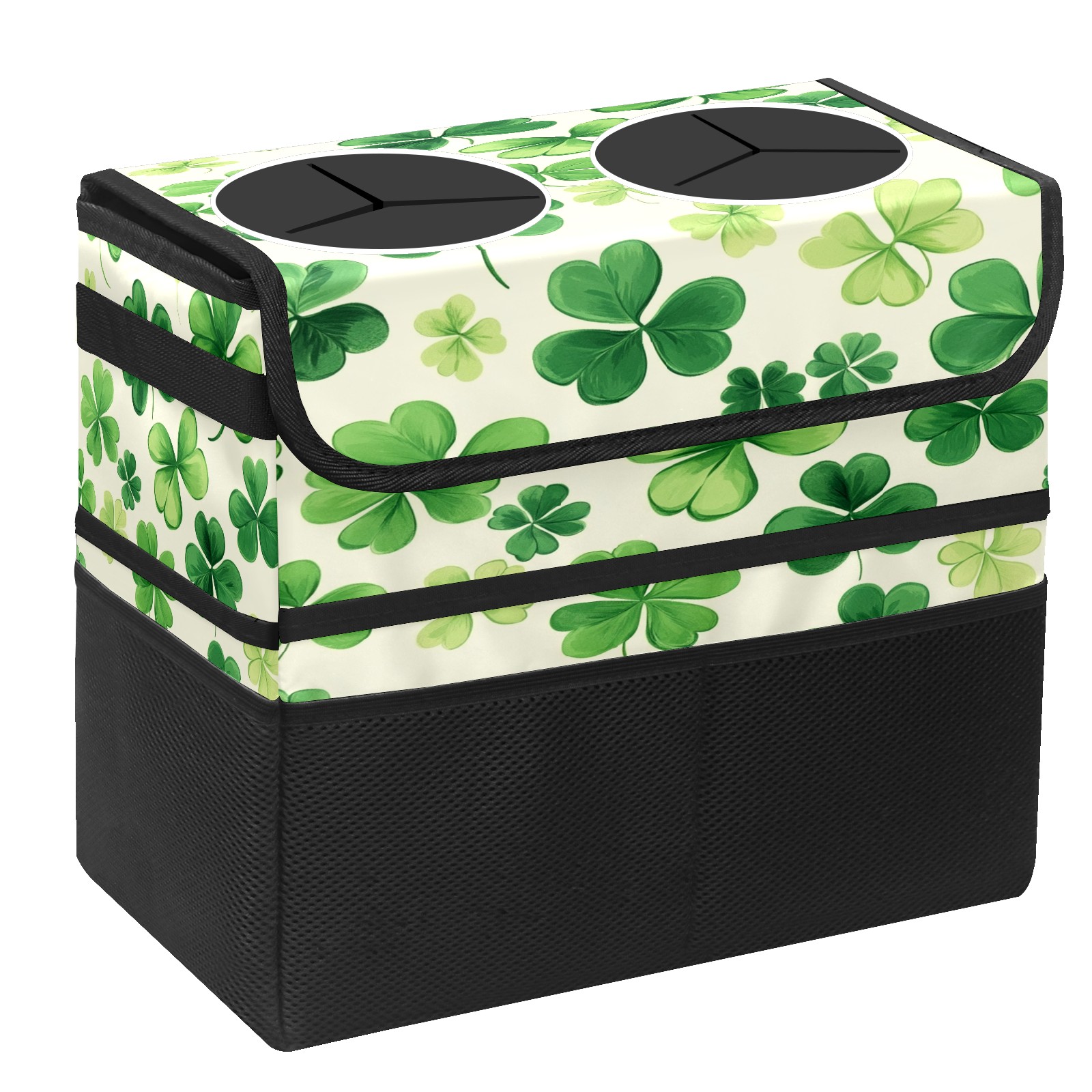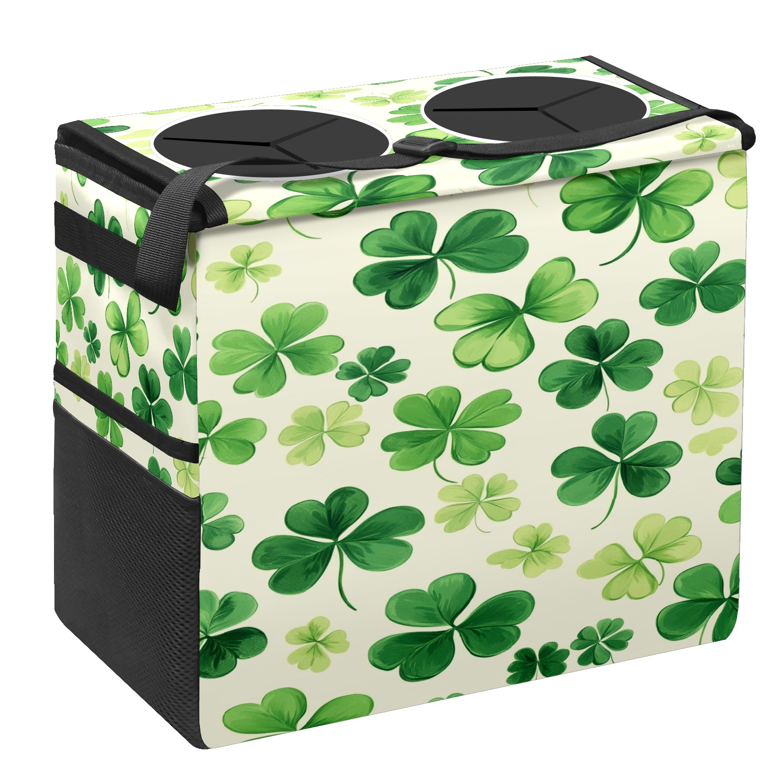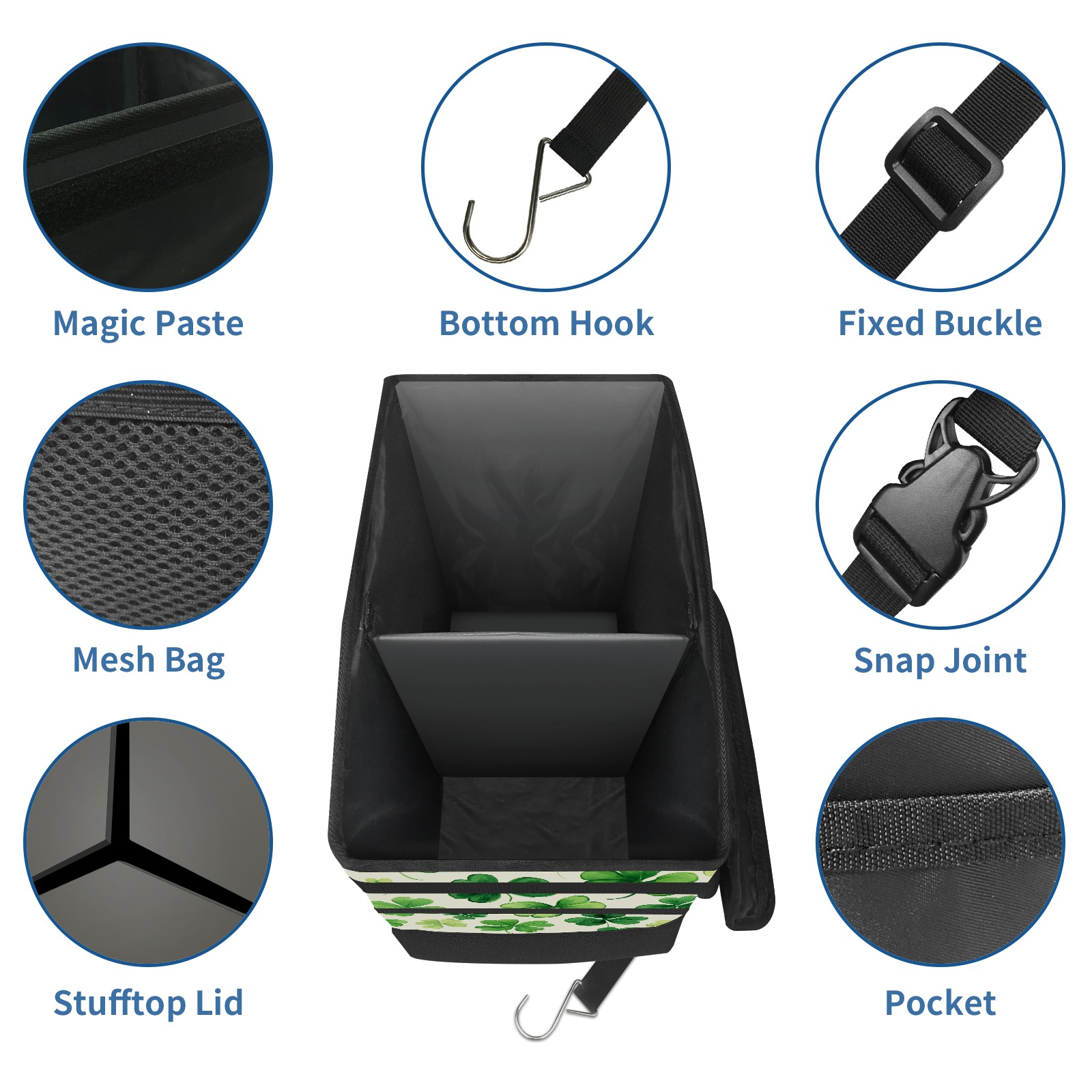 Car Trash Can with Lid, Portable Hanging Automotive Garbage Bin for Vehicles, Leakproof Waste Bag Container for SUV Truck Van Interior Auto Travel Road Trips(Shamrocks)