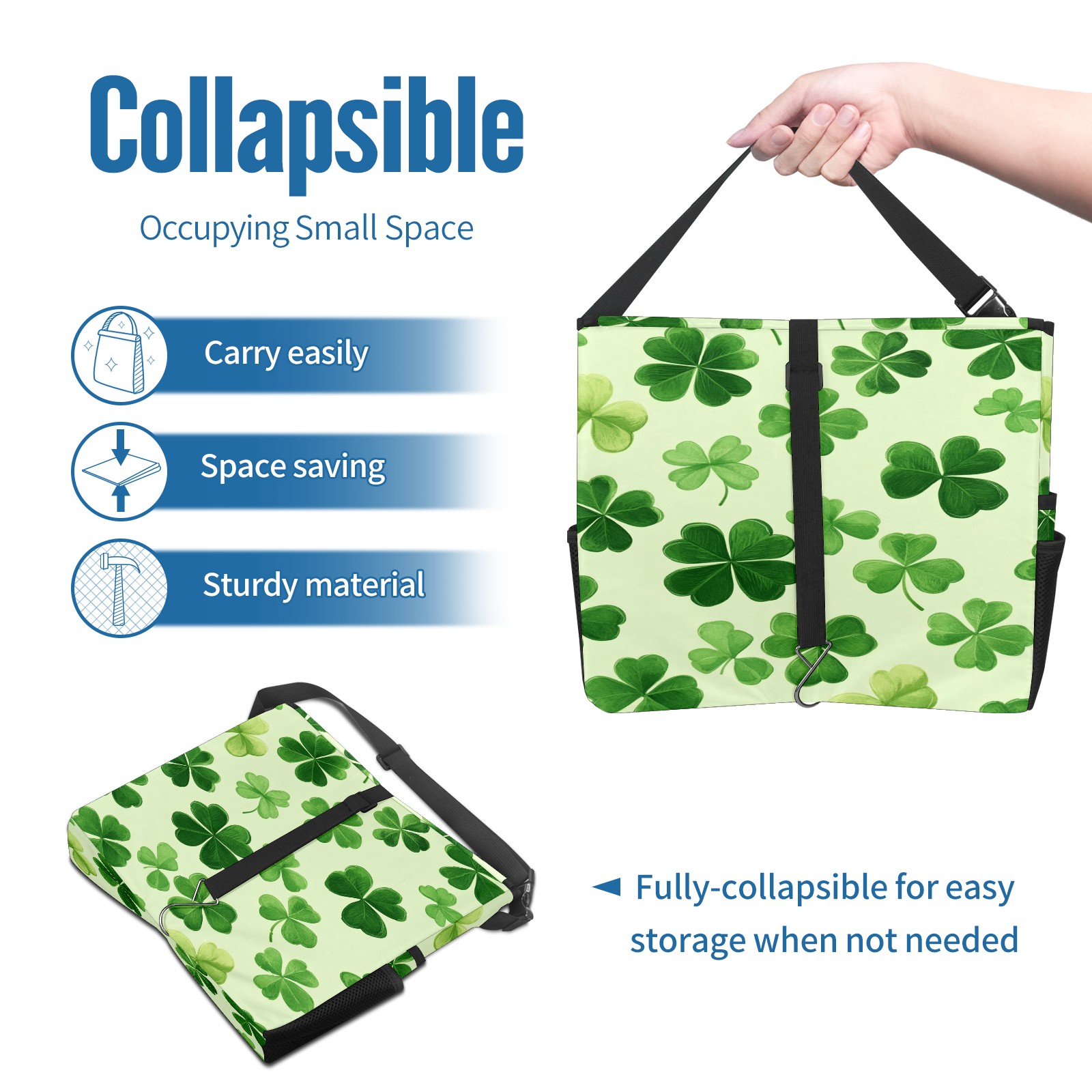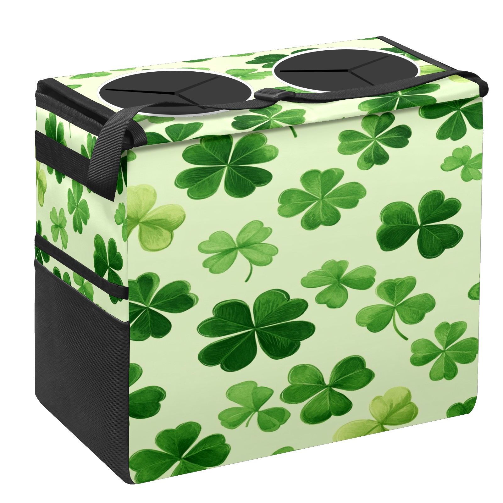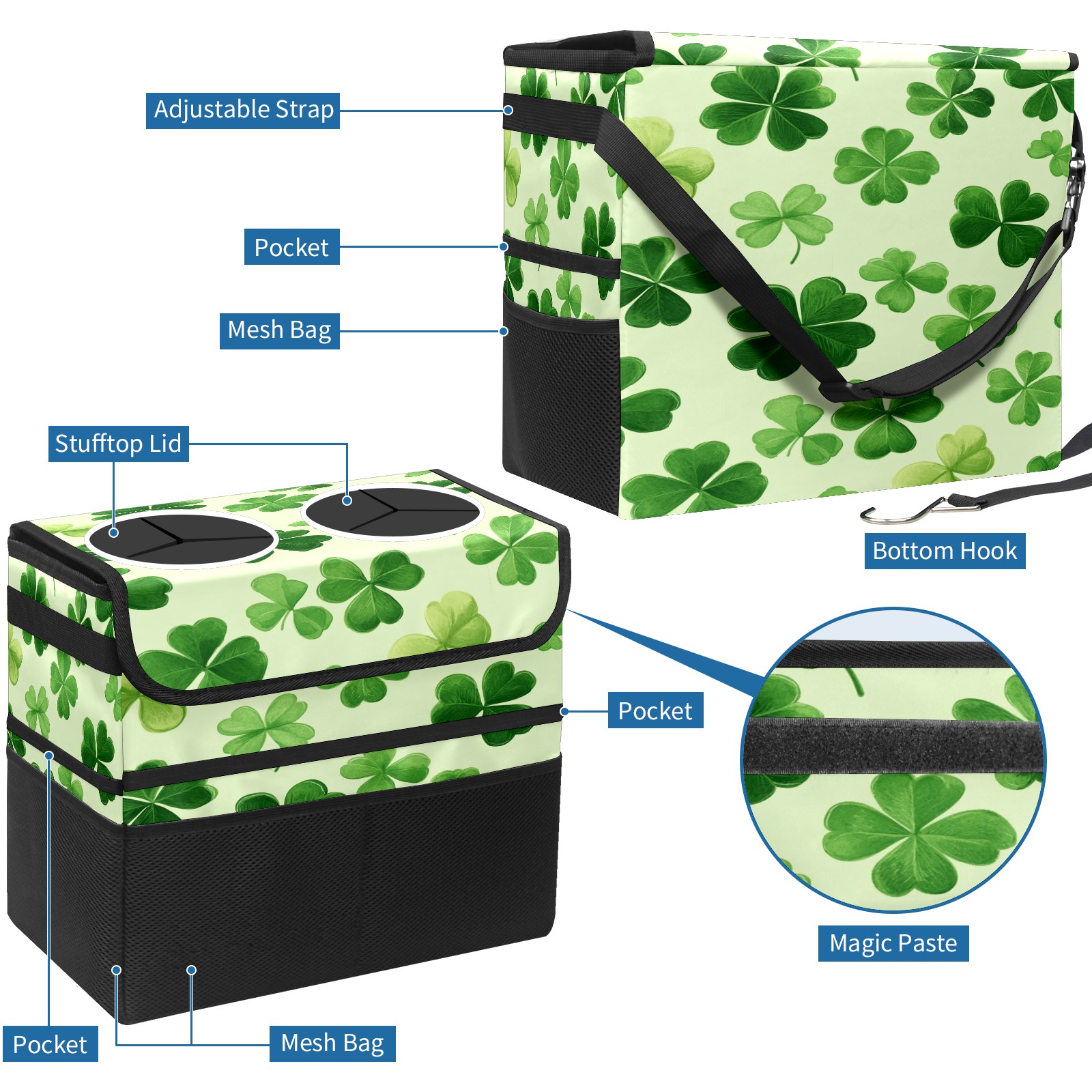 Car Trash Can with Lid, Portable Hanging Automotive Garbage Bin for Vehicles, Leakproof Waste Bag Container for SUV Truck Van Interior Auto Travel Road Trips(Shamrock Leaves)