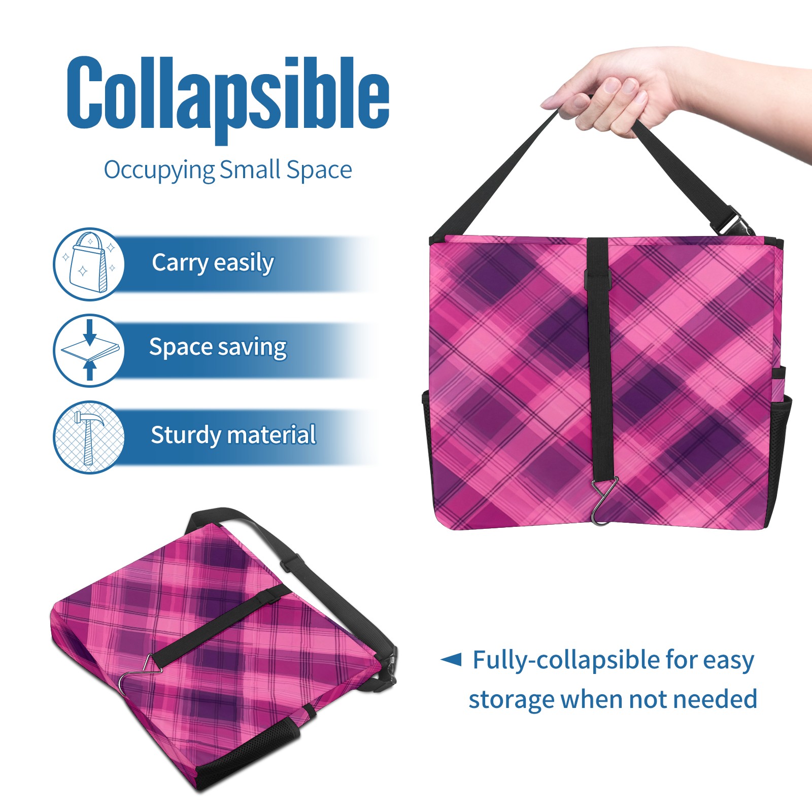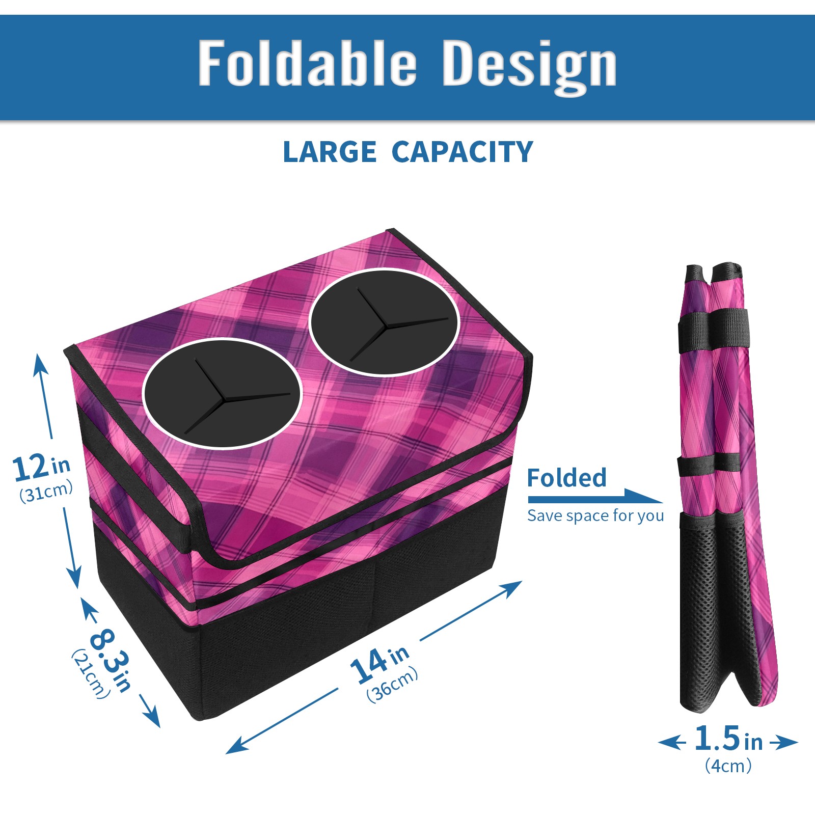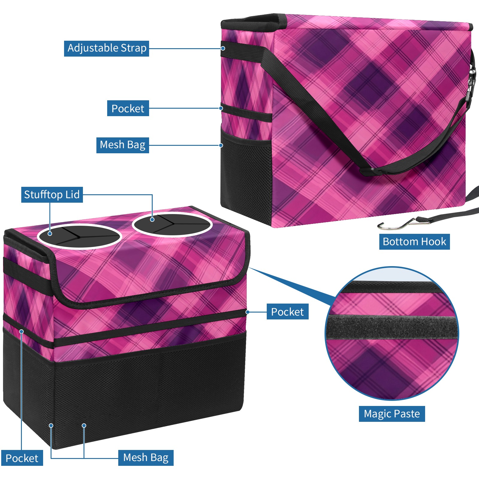Car Trash Can with Lid, Portable Hanging Automotive Garbage Bin for Vehicles, Leakproof Waste Bag Container for SUV Truck Van Interior Auto Travel Road Trips(Pink And Purple Checkered)