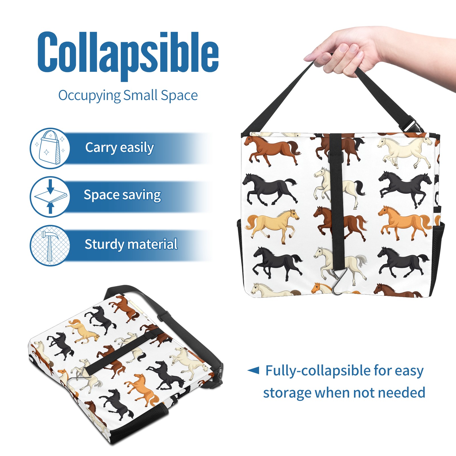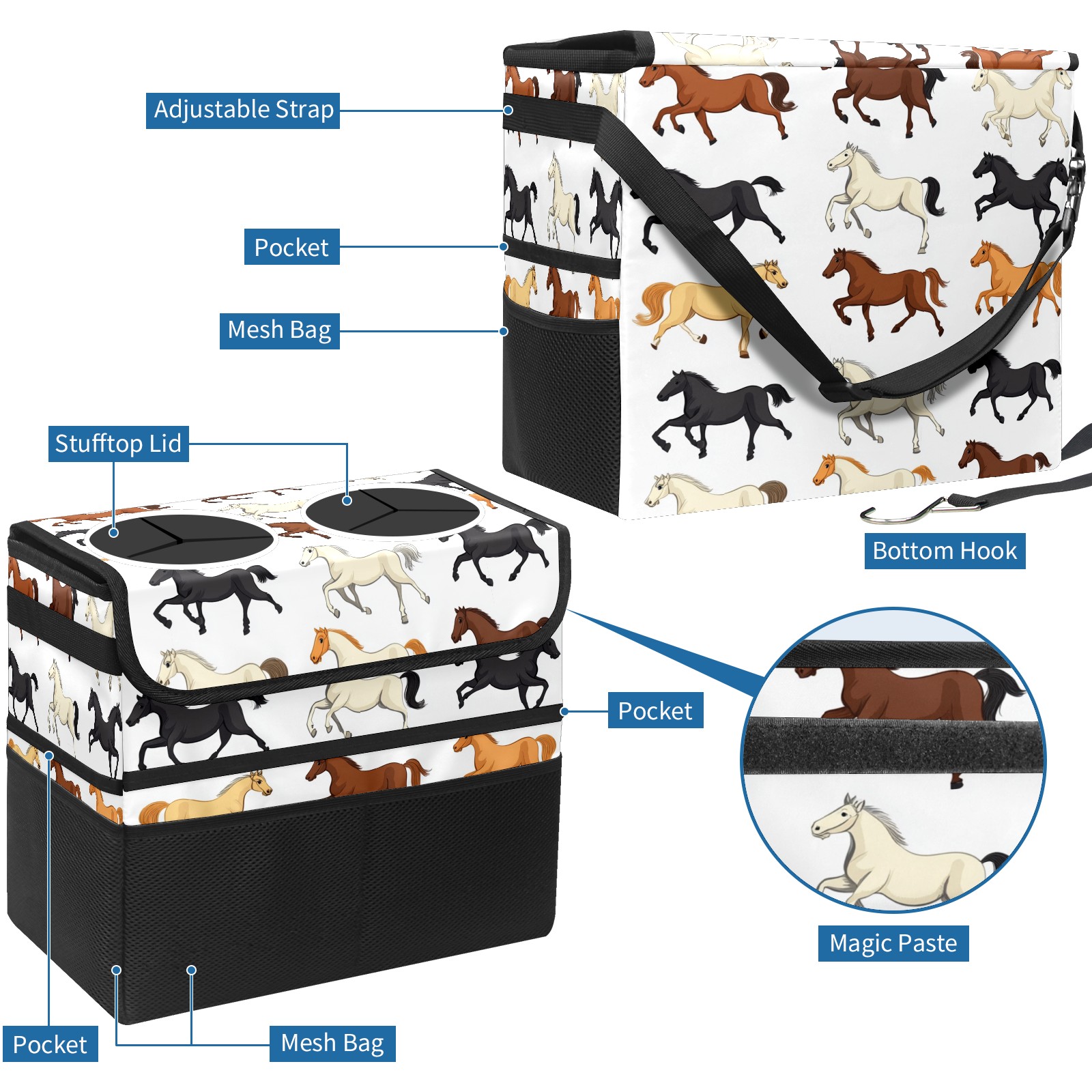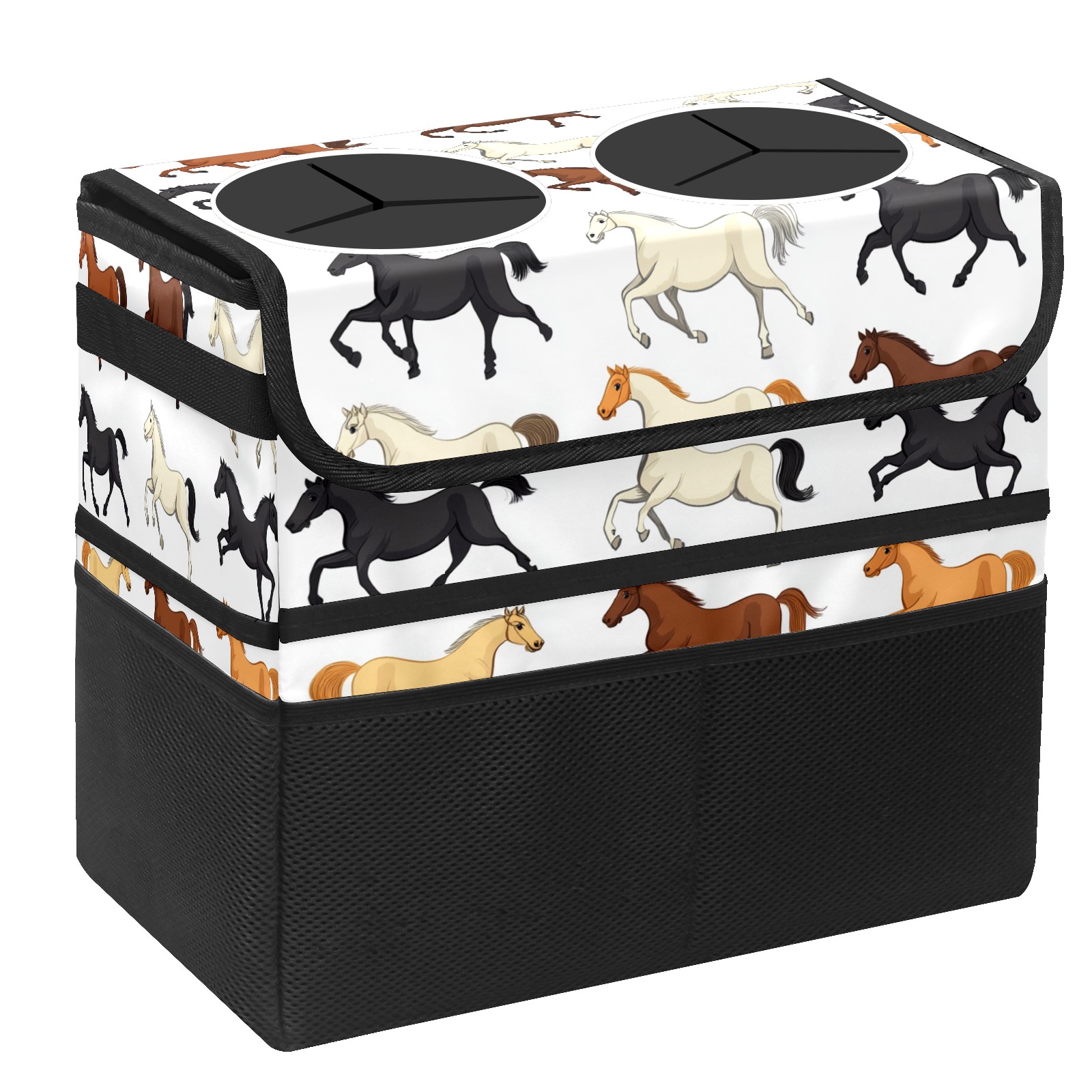 Car Trash Can with Lid, Portable Hanging Automotive Garbage Bin for Vehicles, Leakproof Waste Bag Container for SUV Truck Van Interior Auto Travel Road Trips(Horses)