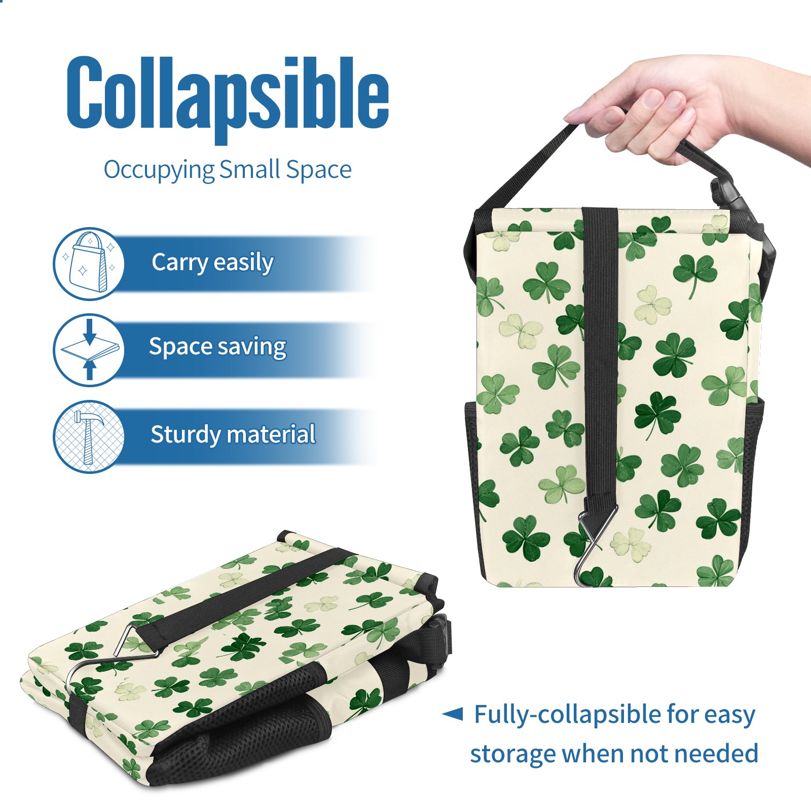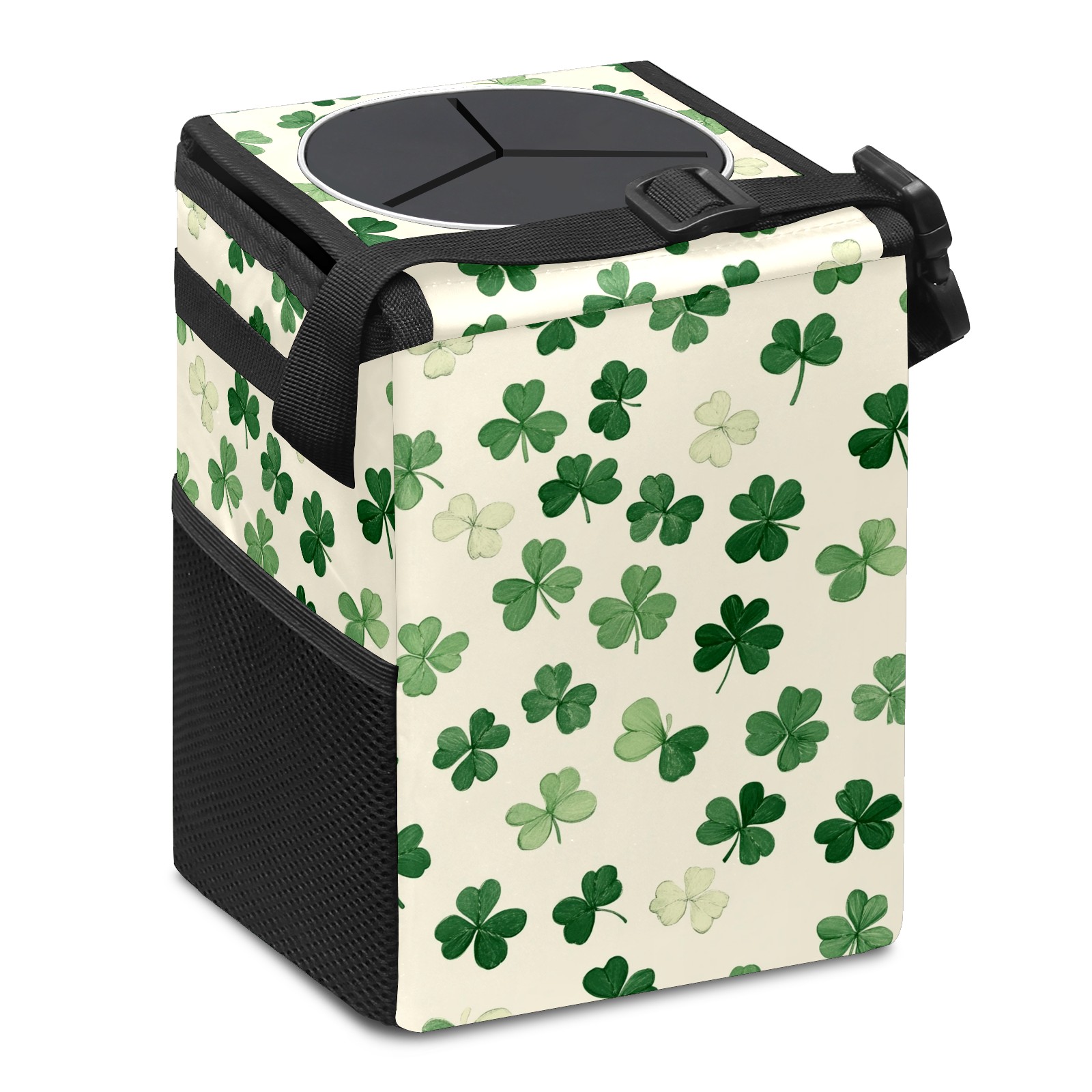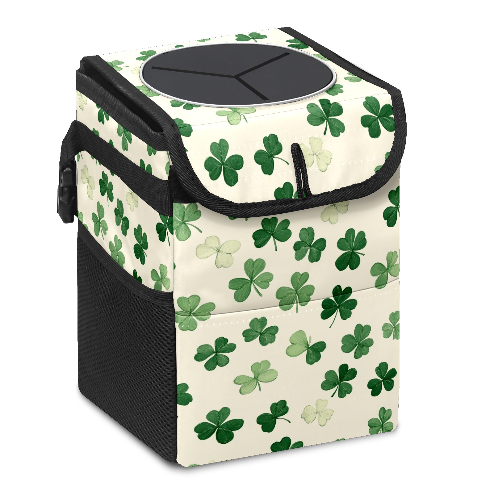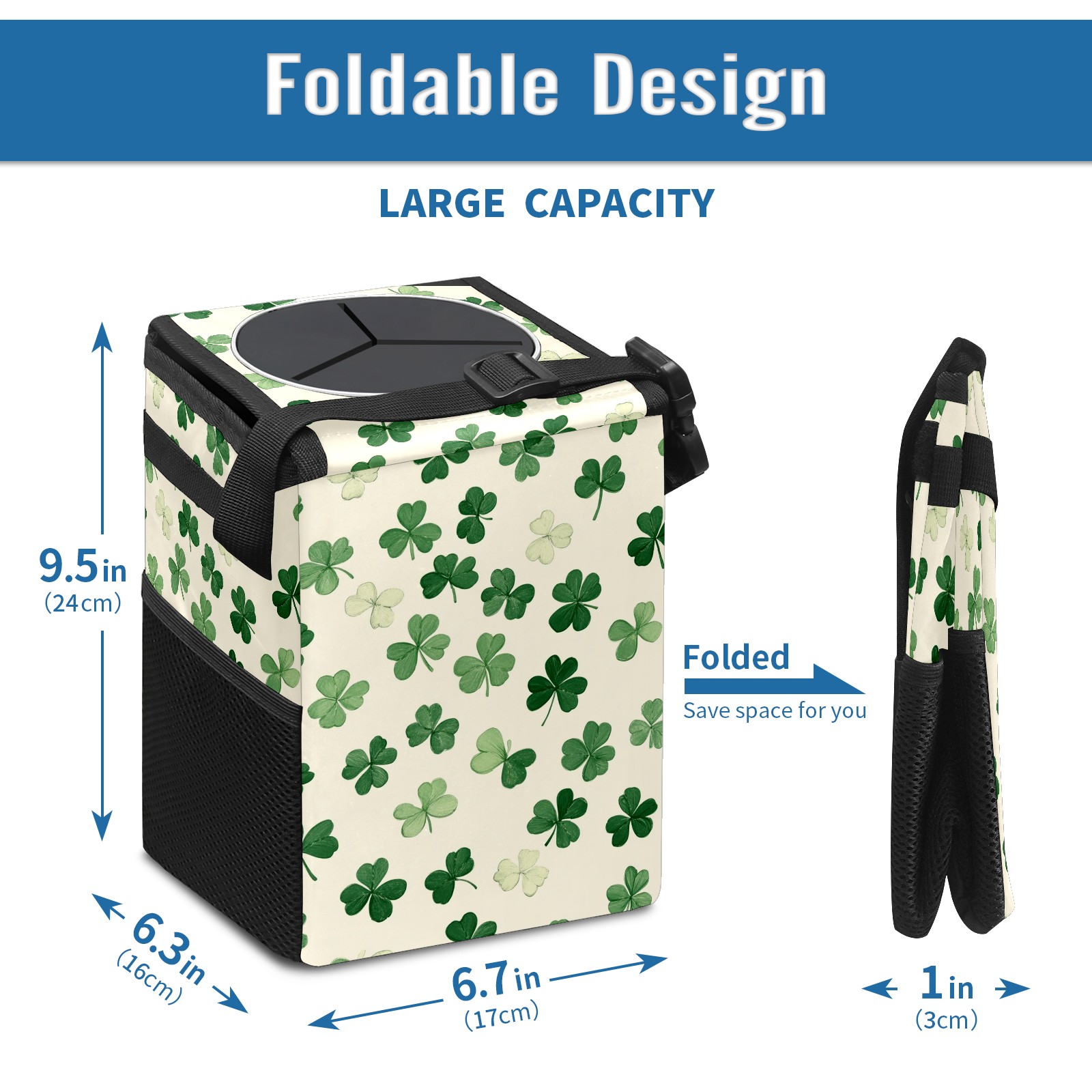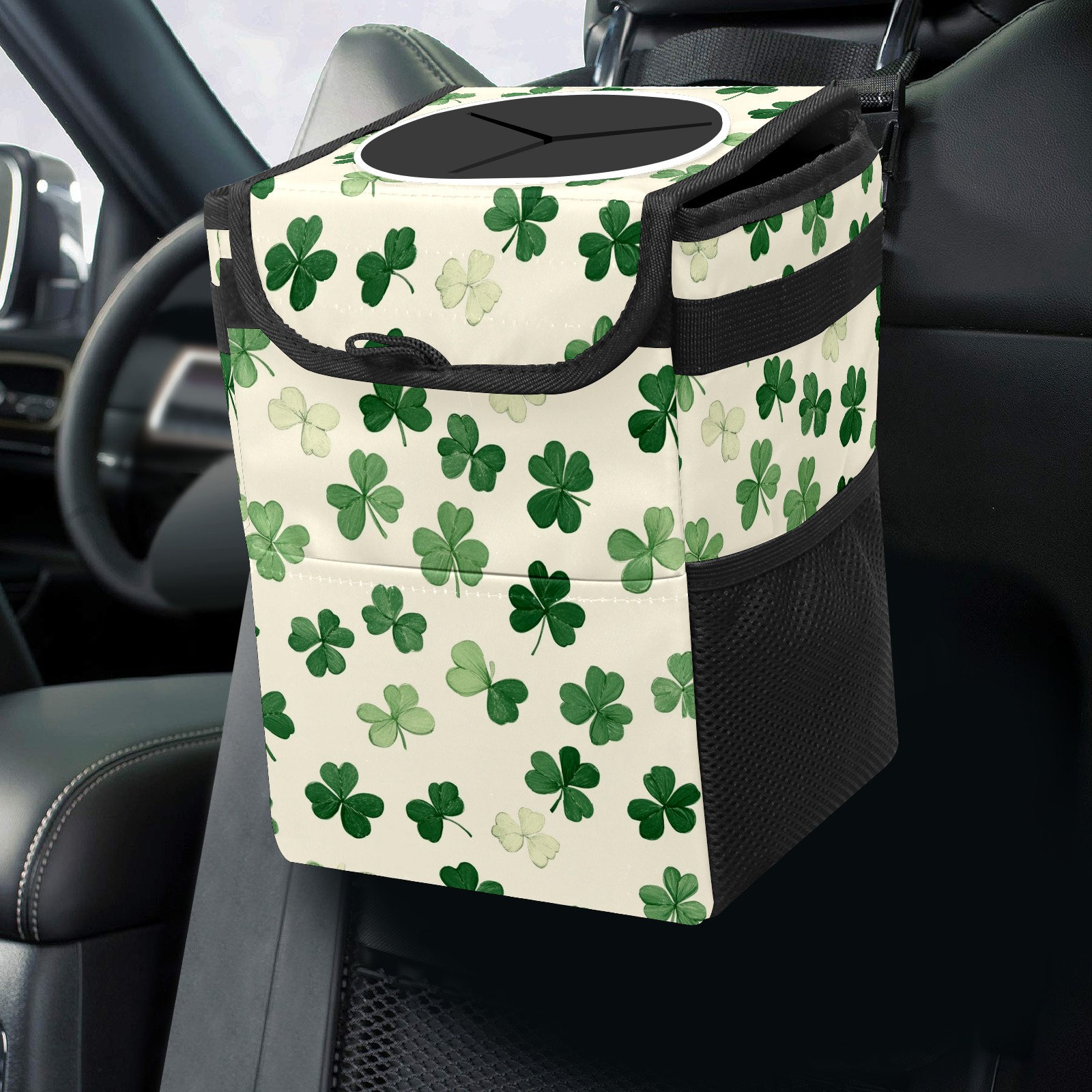 Car Trash Can with Lid, Small Portable Hanging Automotive Garbage Bin for Vehicles, Leakproof Waste Bag Container for SUV Truck Van Interior Auto Travel Road Trips(Small Shamrocks)