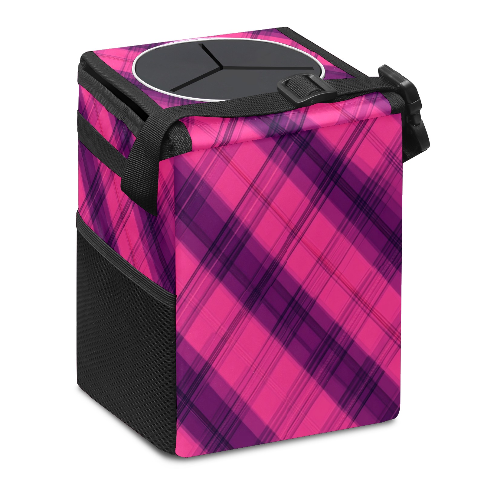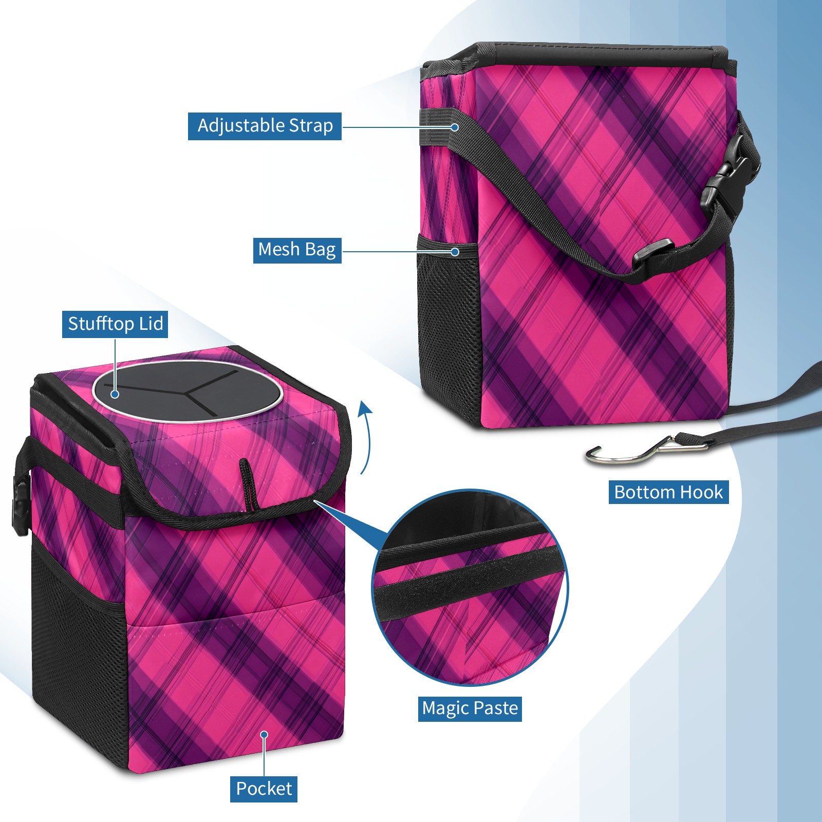 Car Trash Can with Lid, Small Portable Hanging Automotive Garbage Bin for Vehicles, Leakproof Waste Bag Container for SUV Truck Van Interior Auto Travel Road Trips(Pink And Purple)
