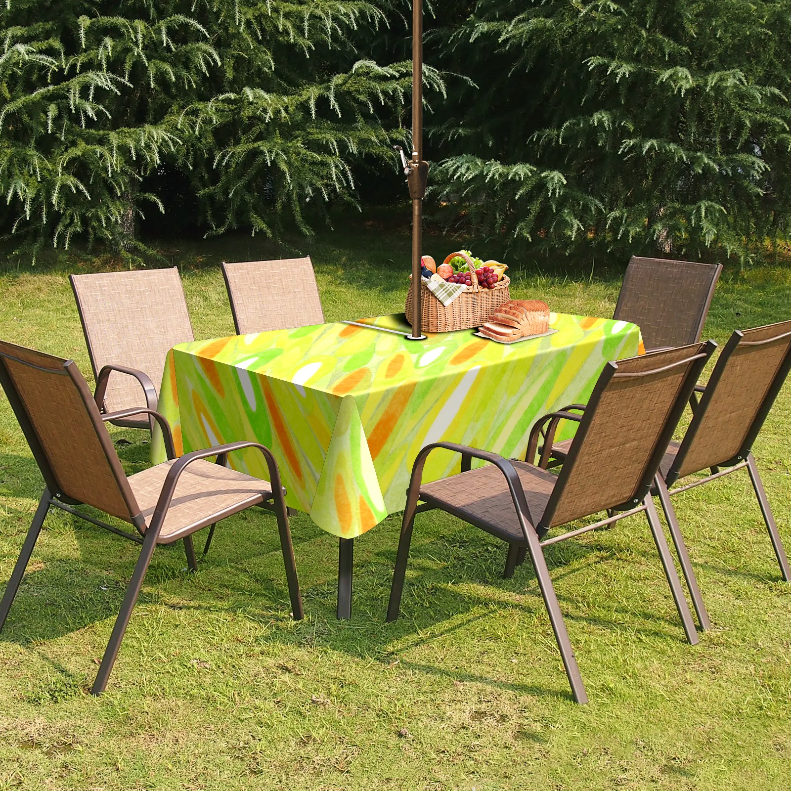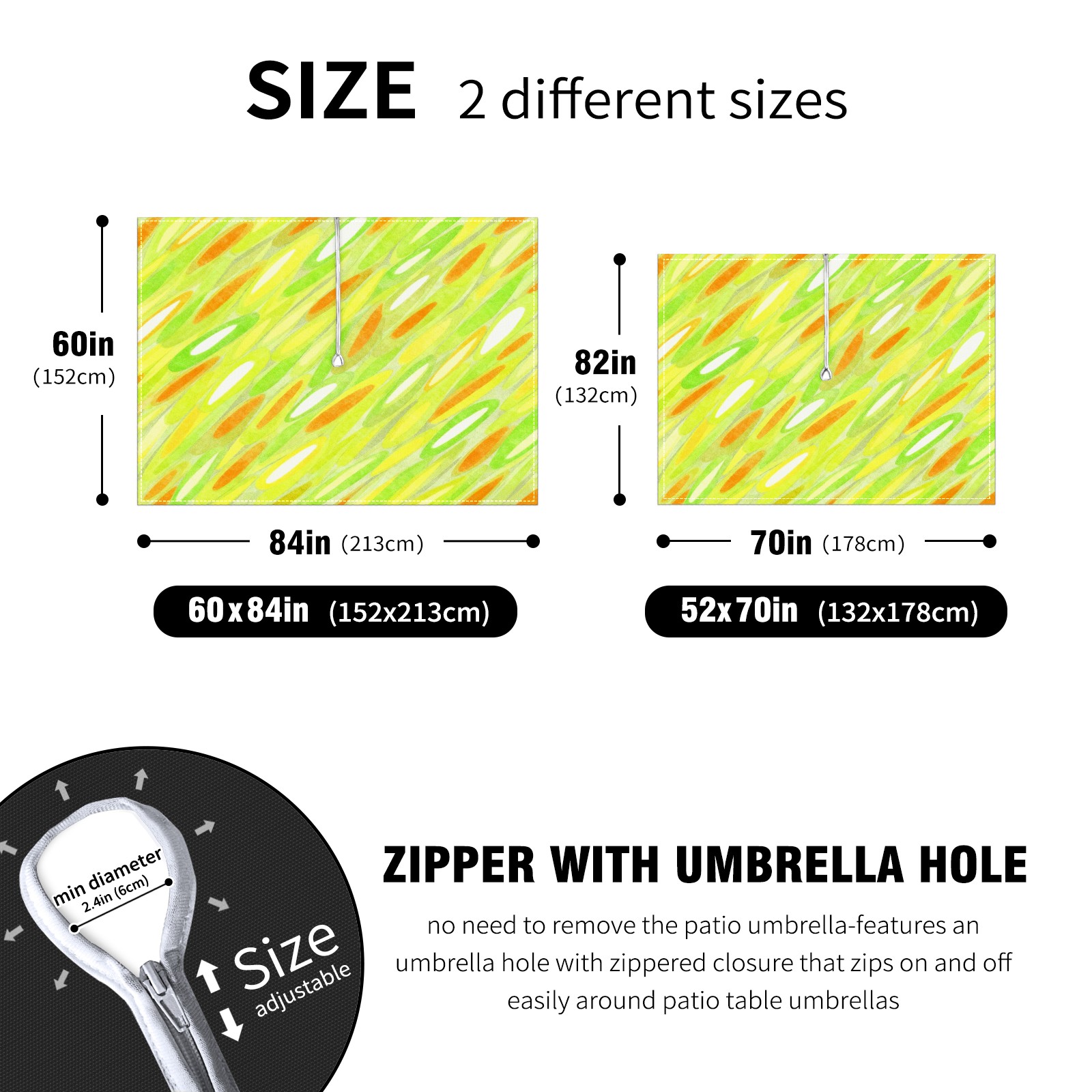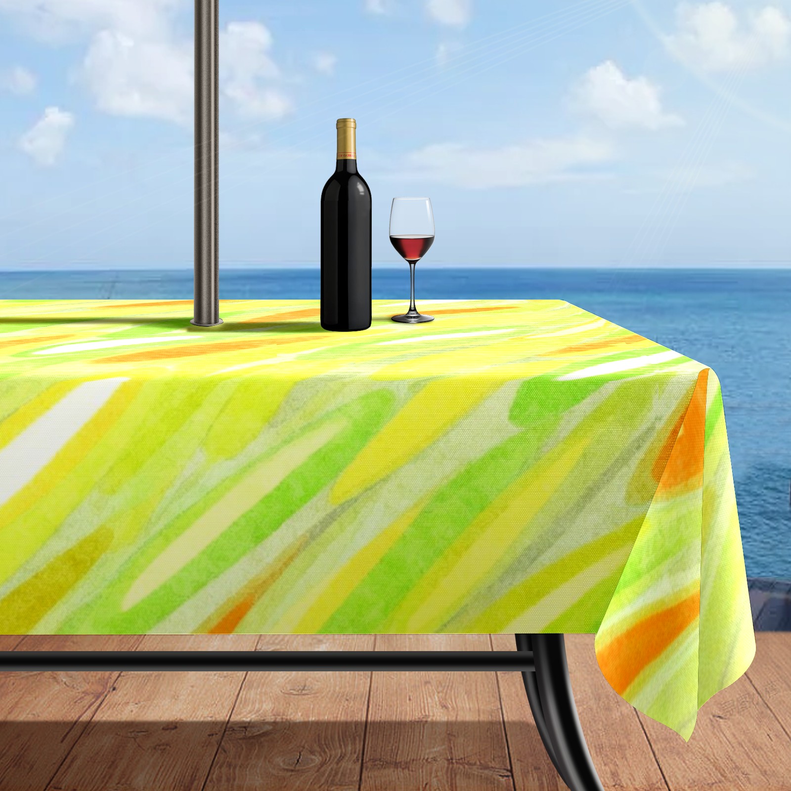 Square Tablecloth Easy Install Table Cover with Adjustable Zippered Hole - Durable Polyester for Patio, Restaurant & Outdoor Dining Green Yellow Gradient Pattern (52x70in)
