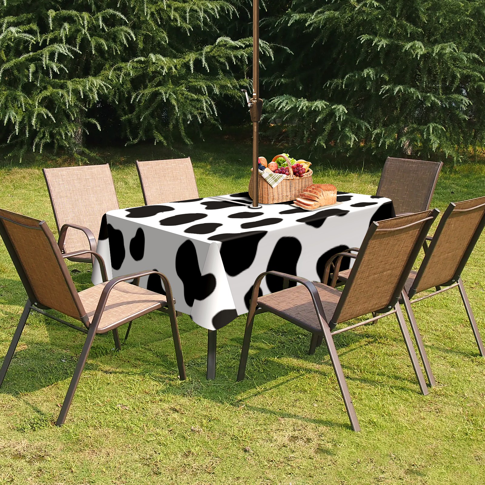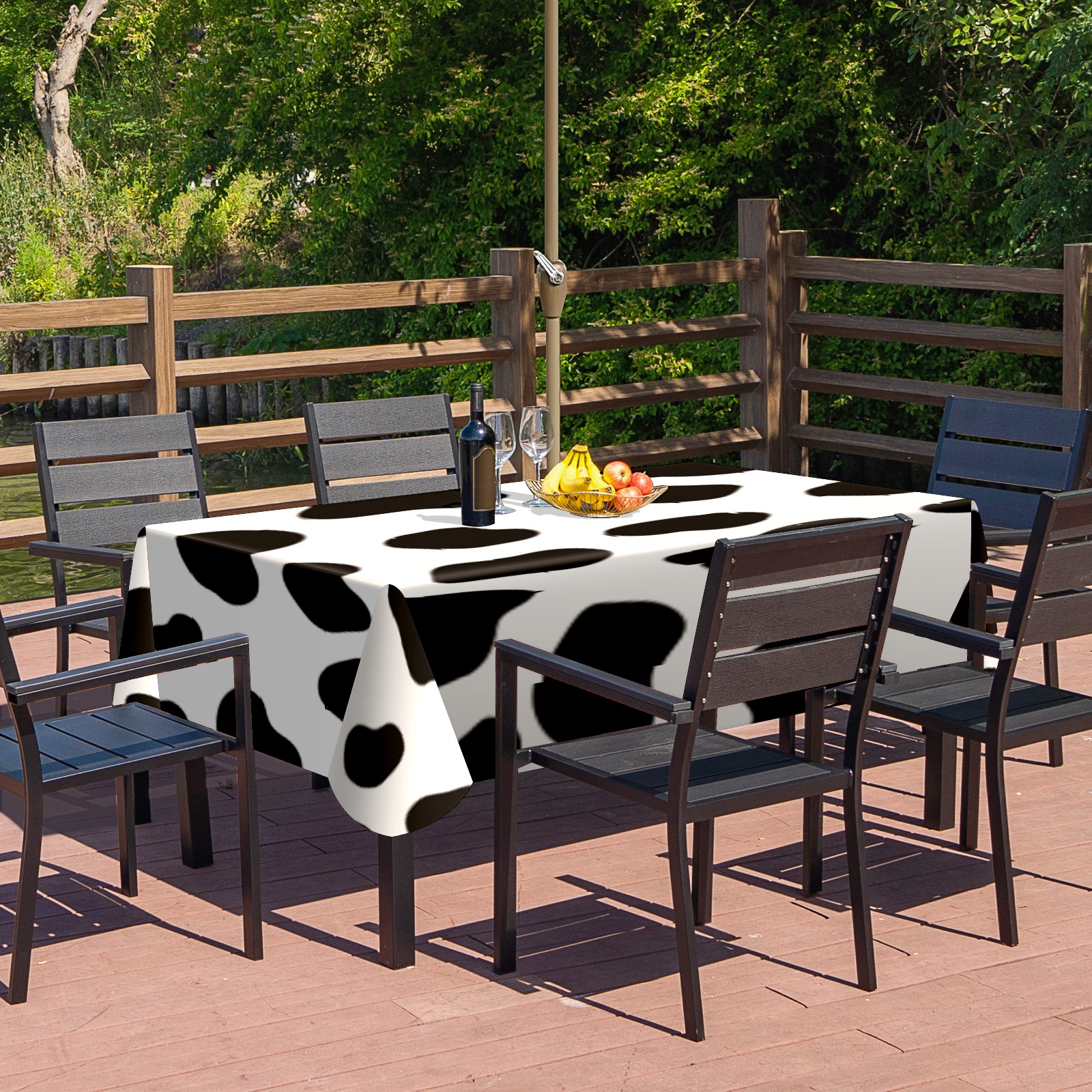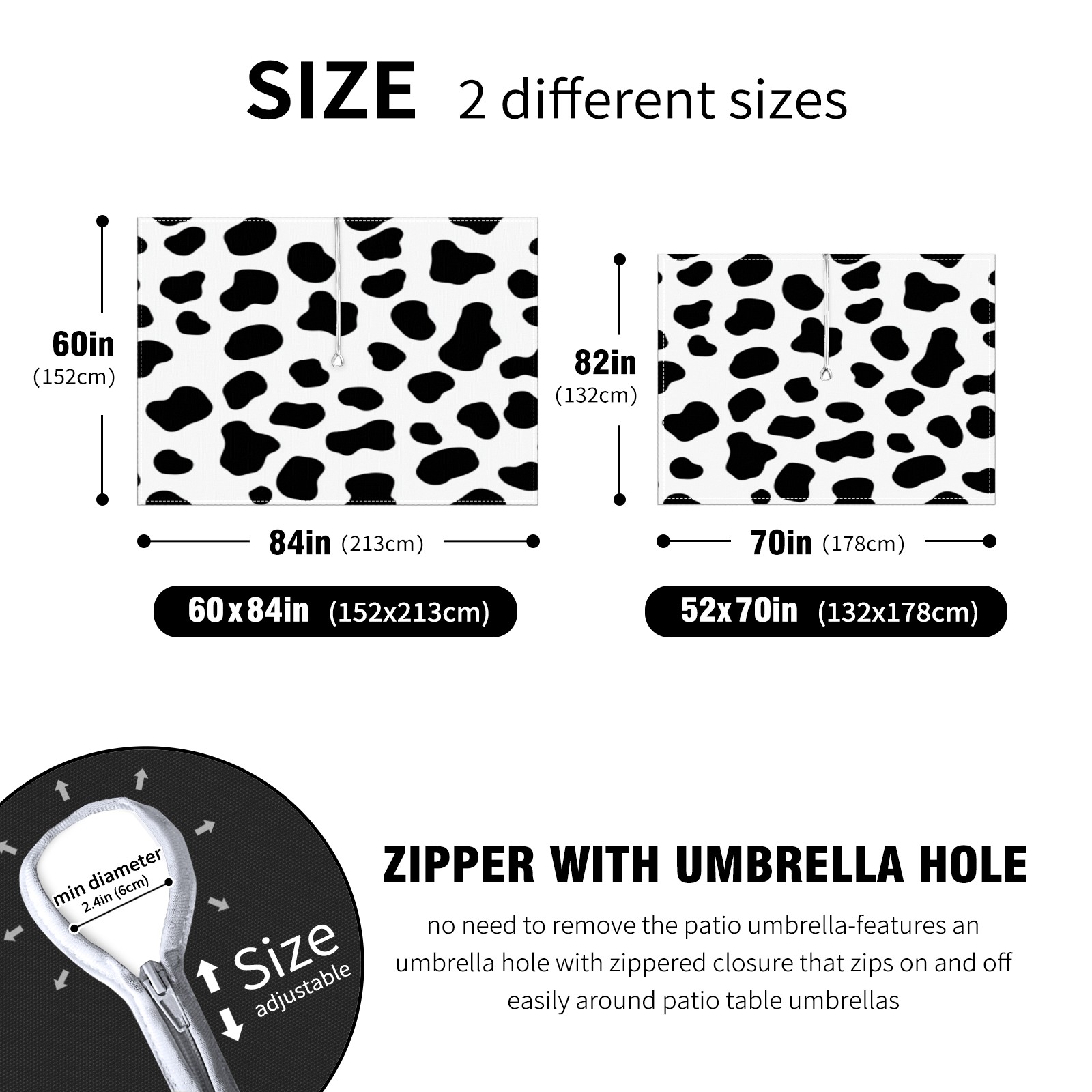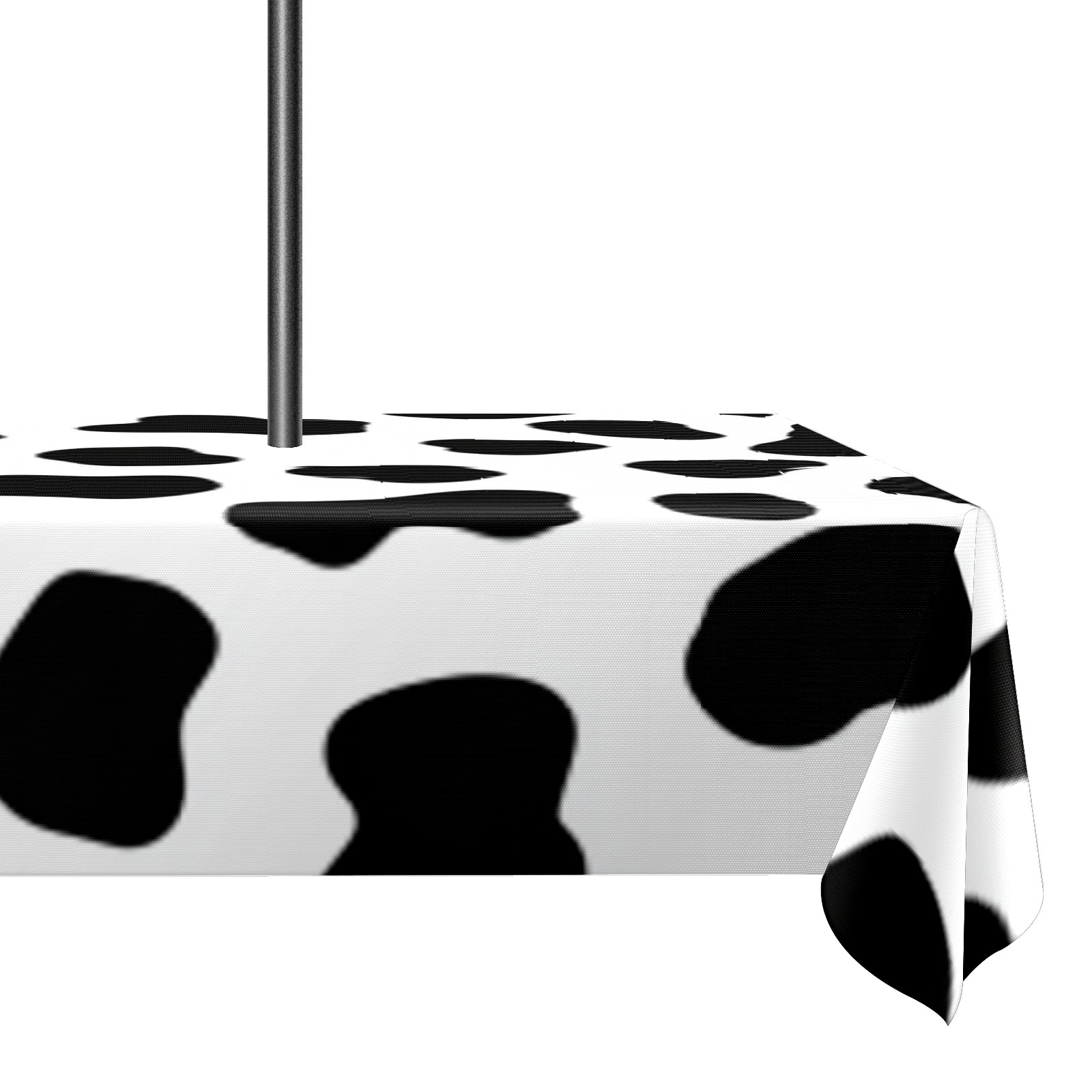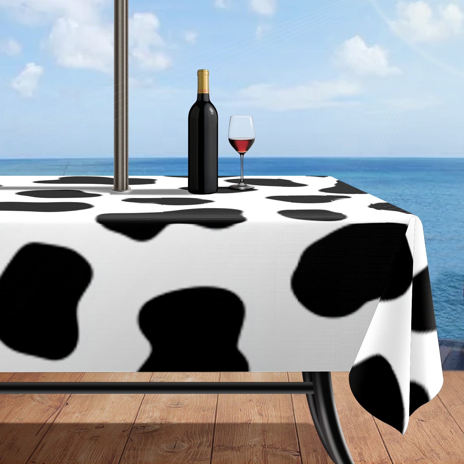Square Tablecloth Easy Install Table Cover with Adjustable Zippered Hole - Durable Polyester for Patio, Restaurant & Outdoor Dining Black And White Cow Pattern (52x70in)