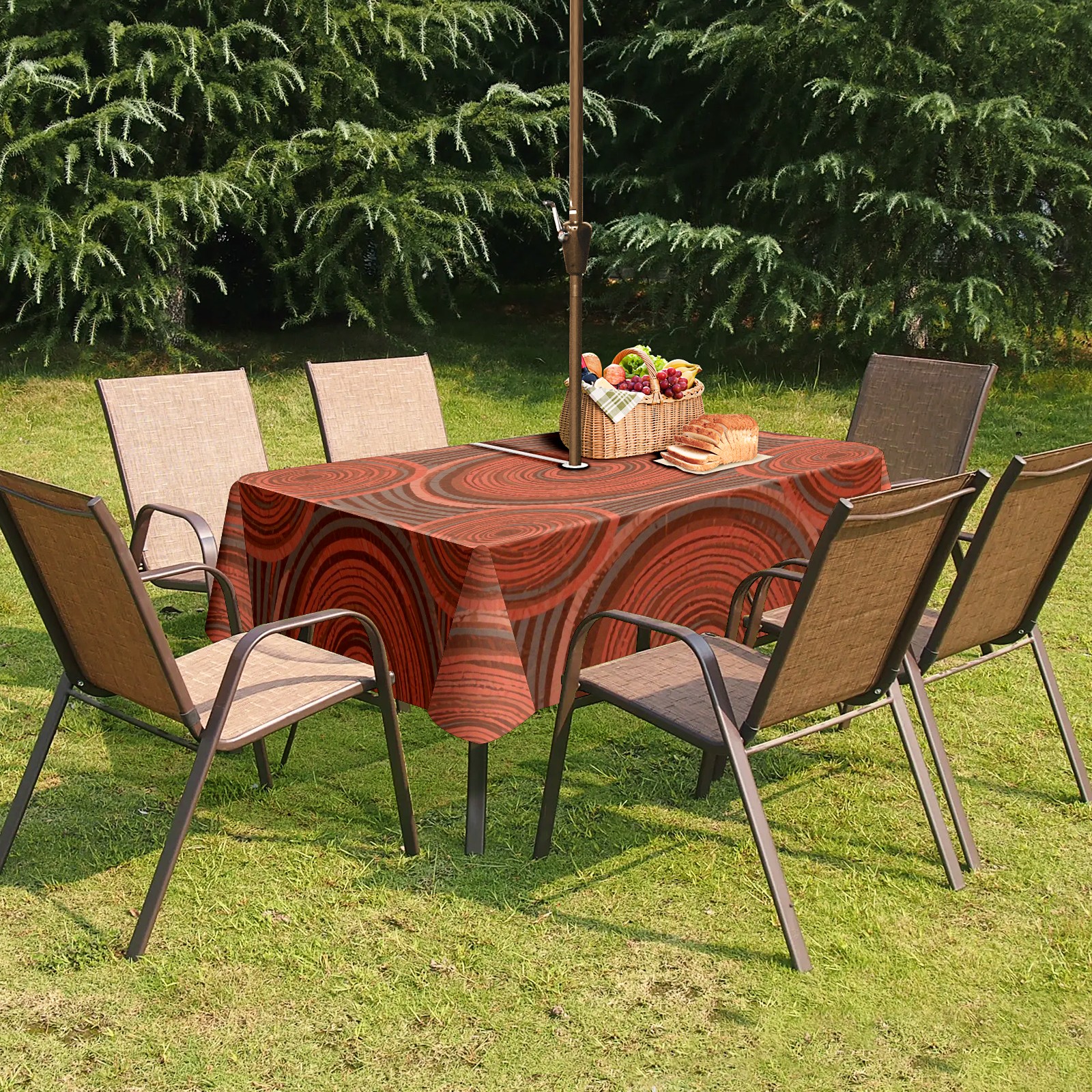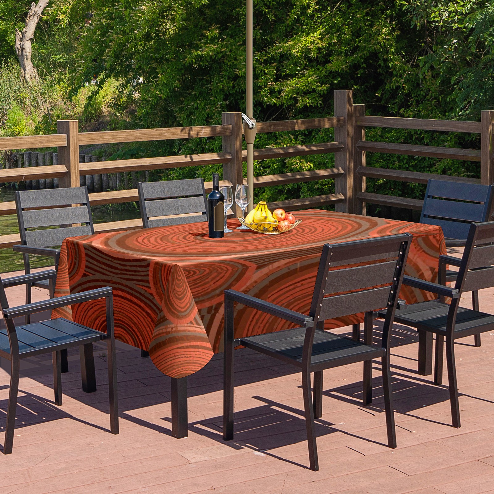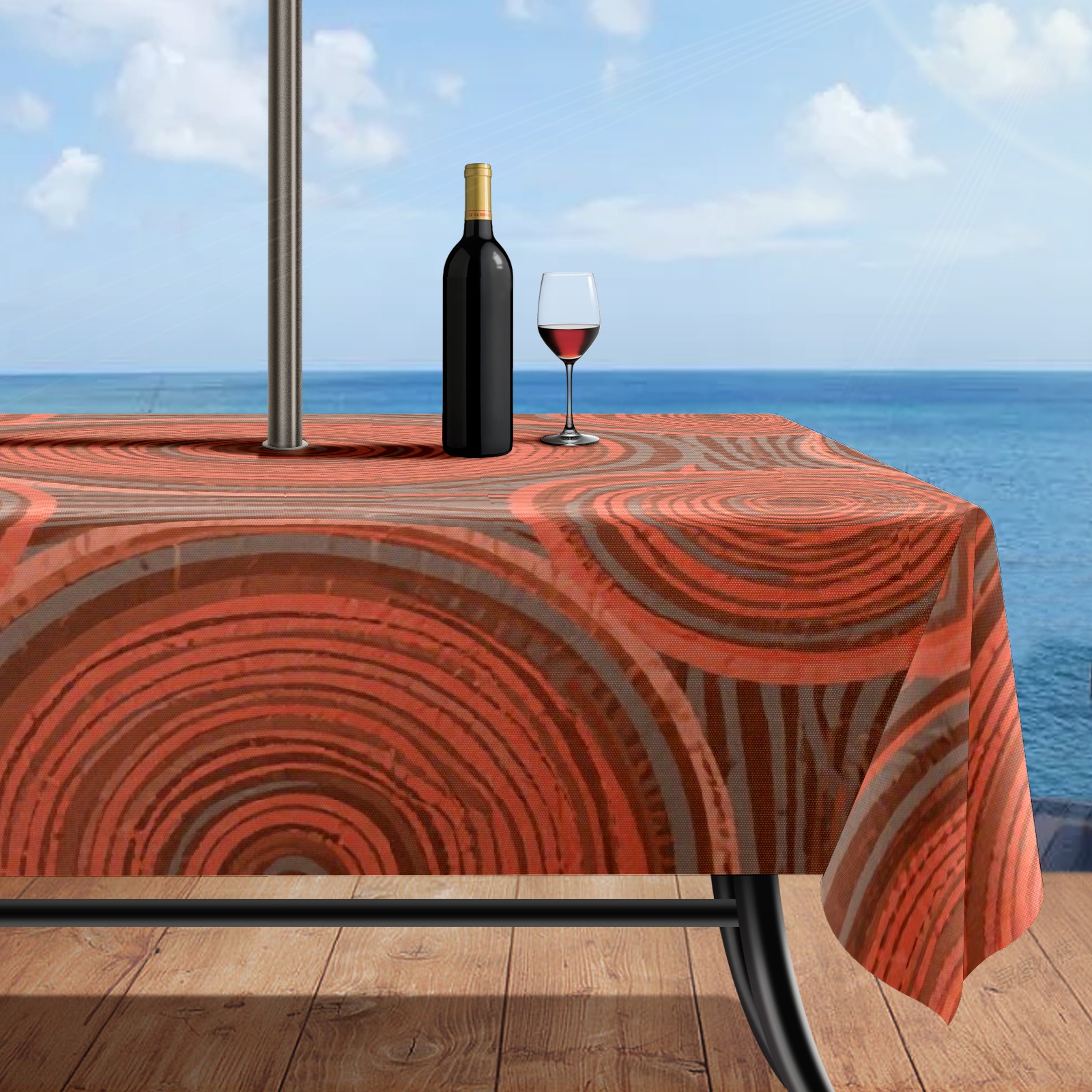 Square Tablecloth Easy Install Table Cover with Adjustable Zippered Hole - Durable Polyester for Patio, Restaurant & Outdoor Dining Circular Wood Grain (52x70in)