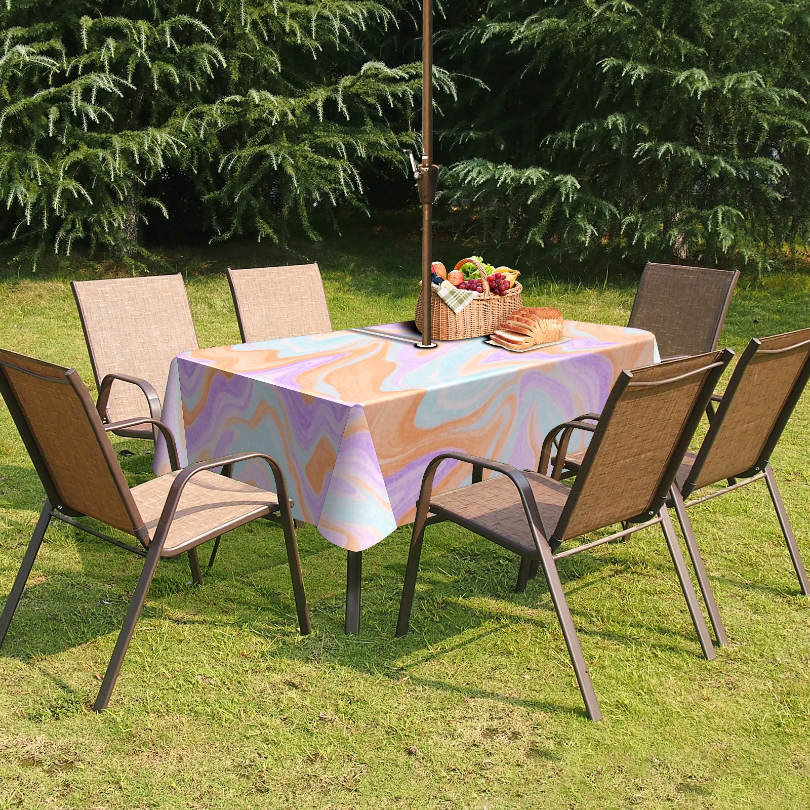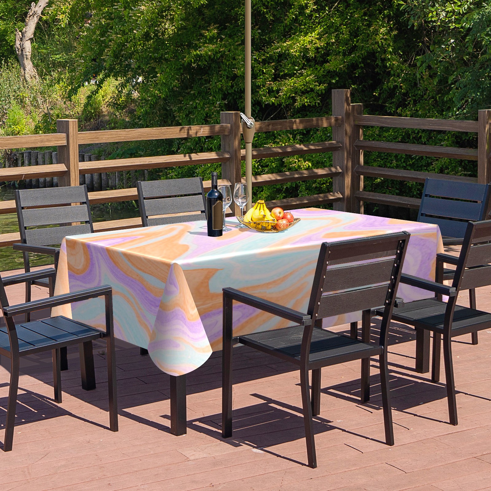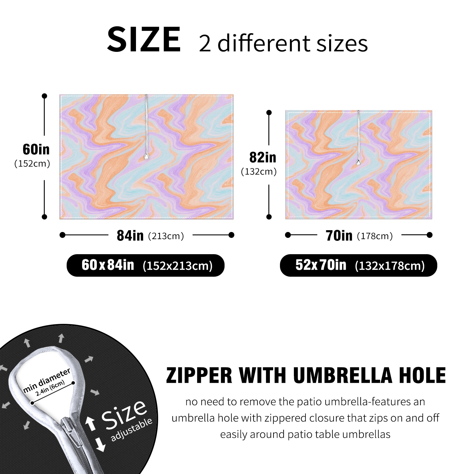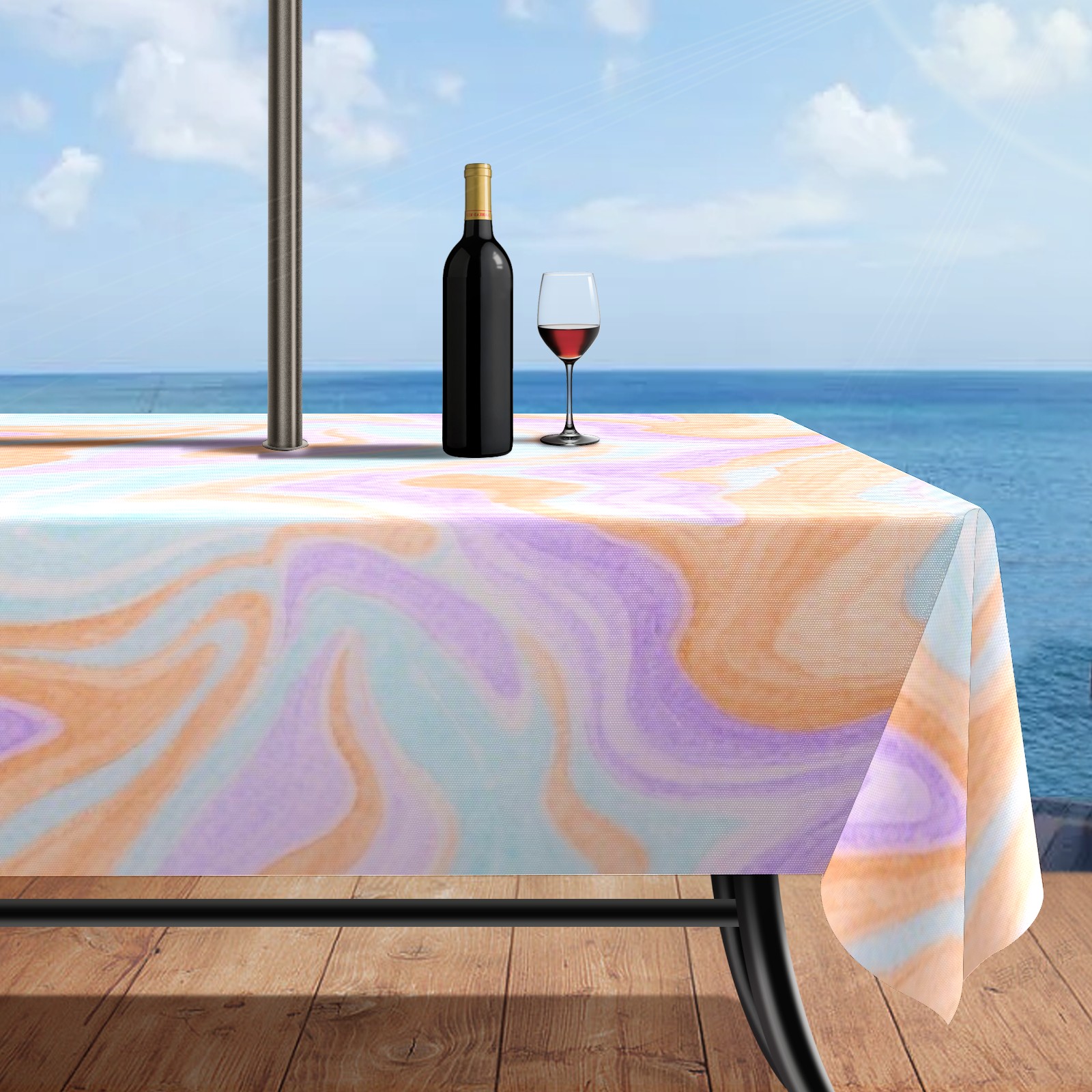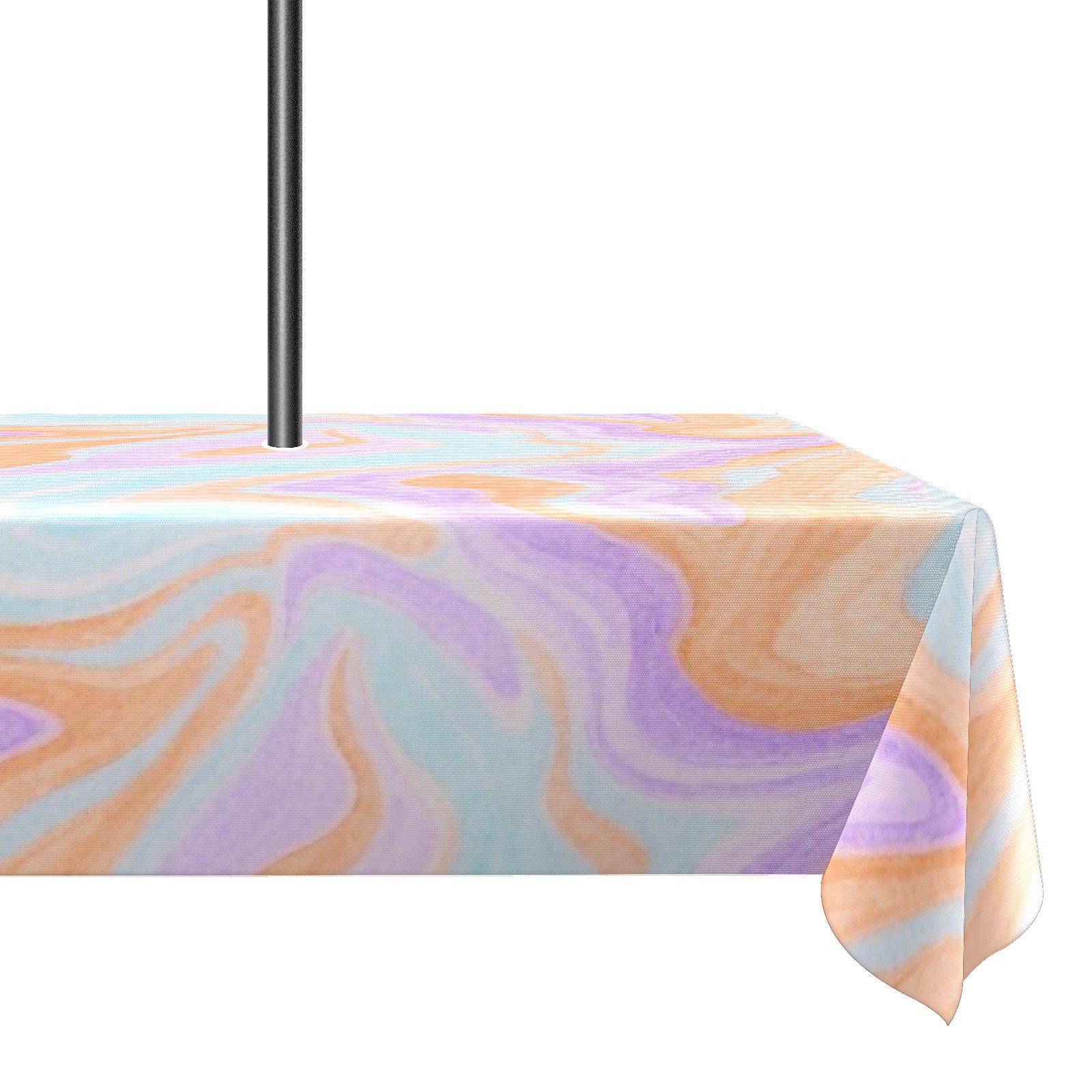 Square Tablecloth Easy Install Table Cover with Adjustable Zippered Hole - Durable Polyester for Patio, Restaurant & Outdoor Dining Rainbow Swirl Vein (52x70in)