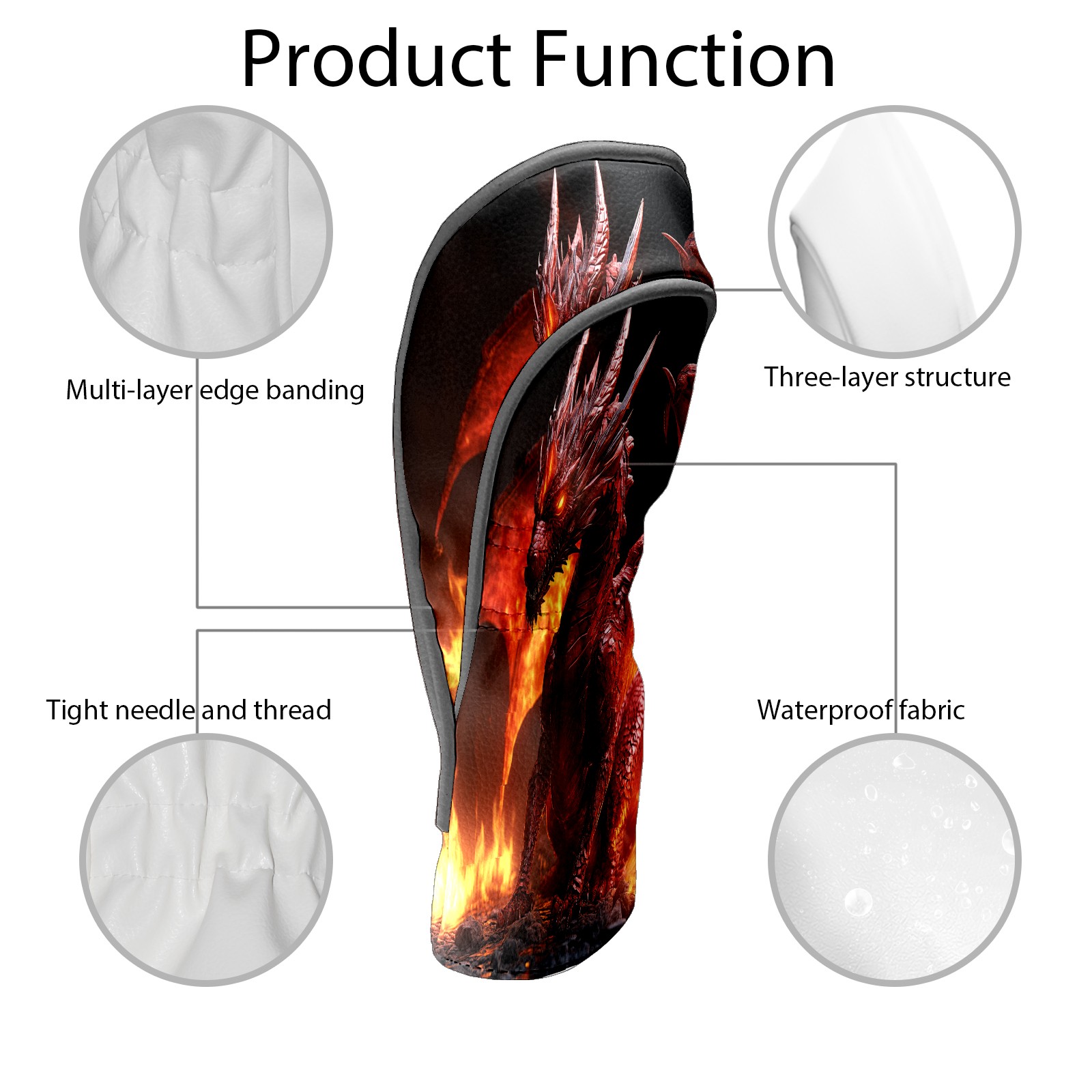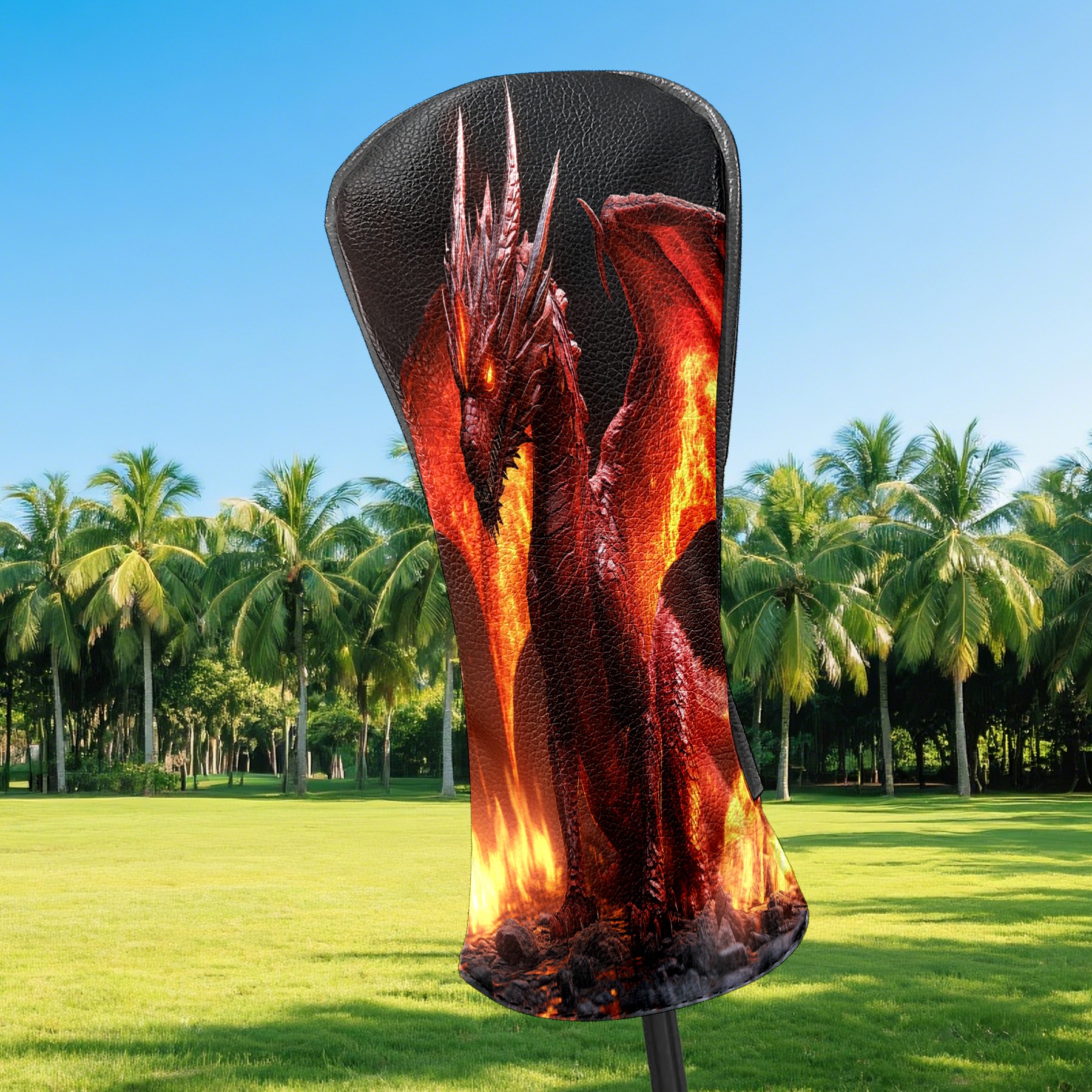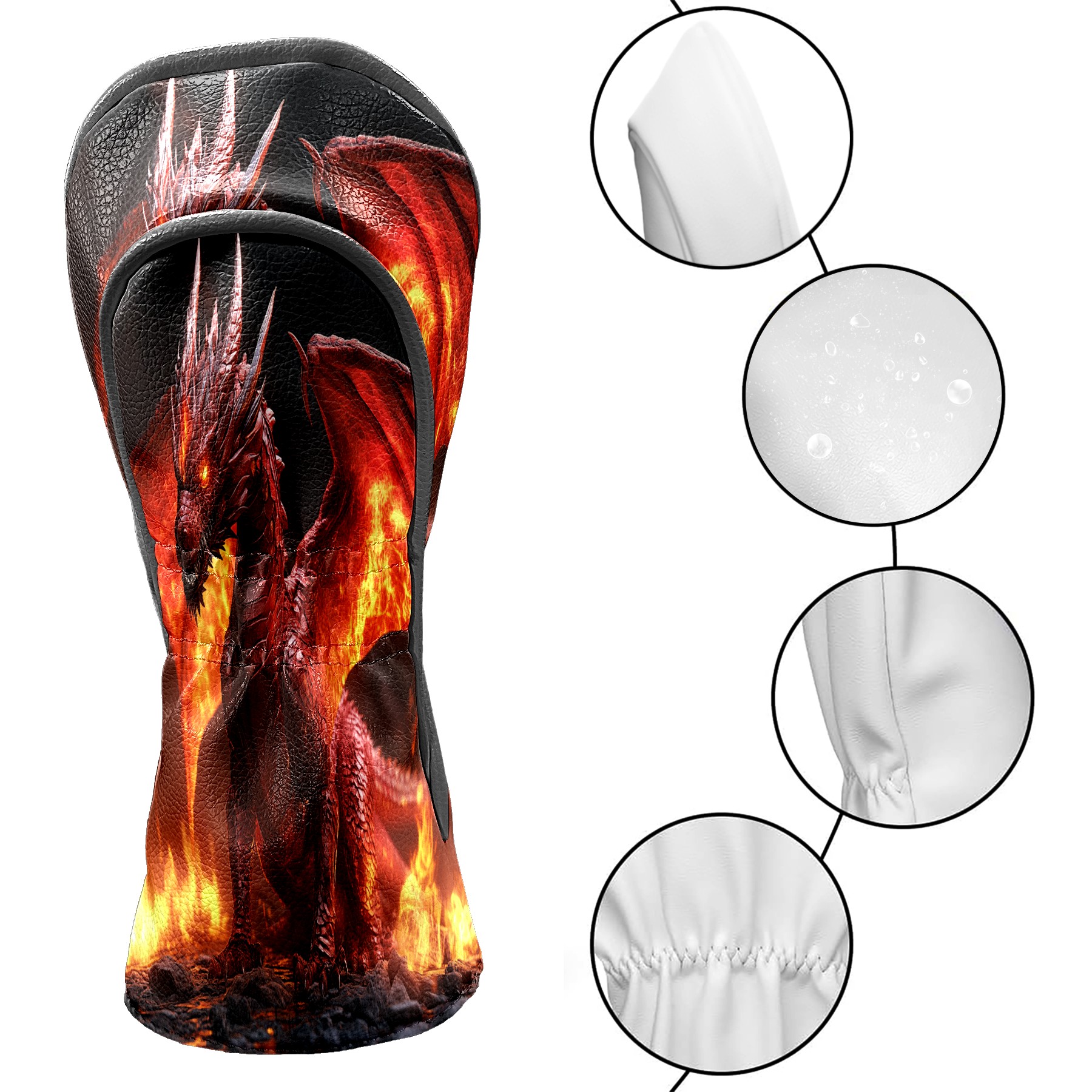 Golf Head Covers Leather Driver Headcovers, Premium Golf Club Covers with Anti-Scratch Lining 1/3/5 Wood Cover for golf clubs for Women Men (Dragon Red)