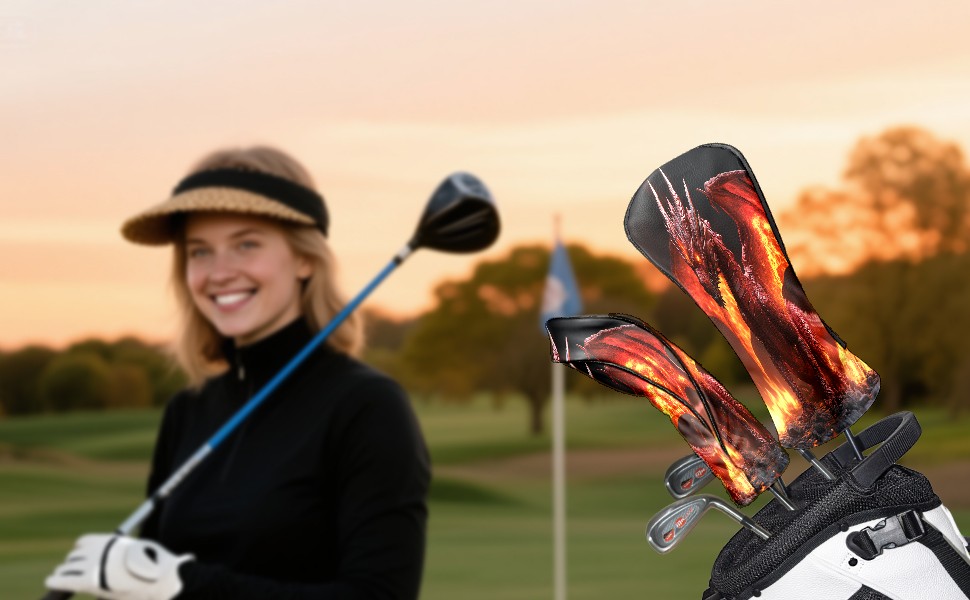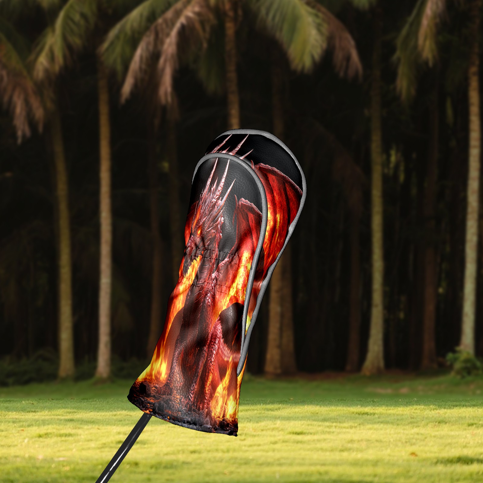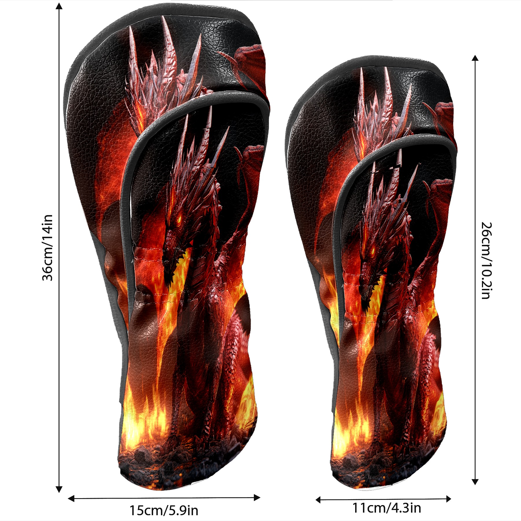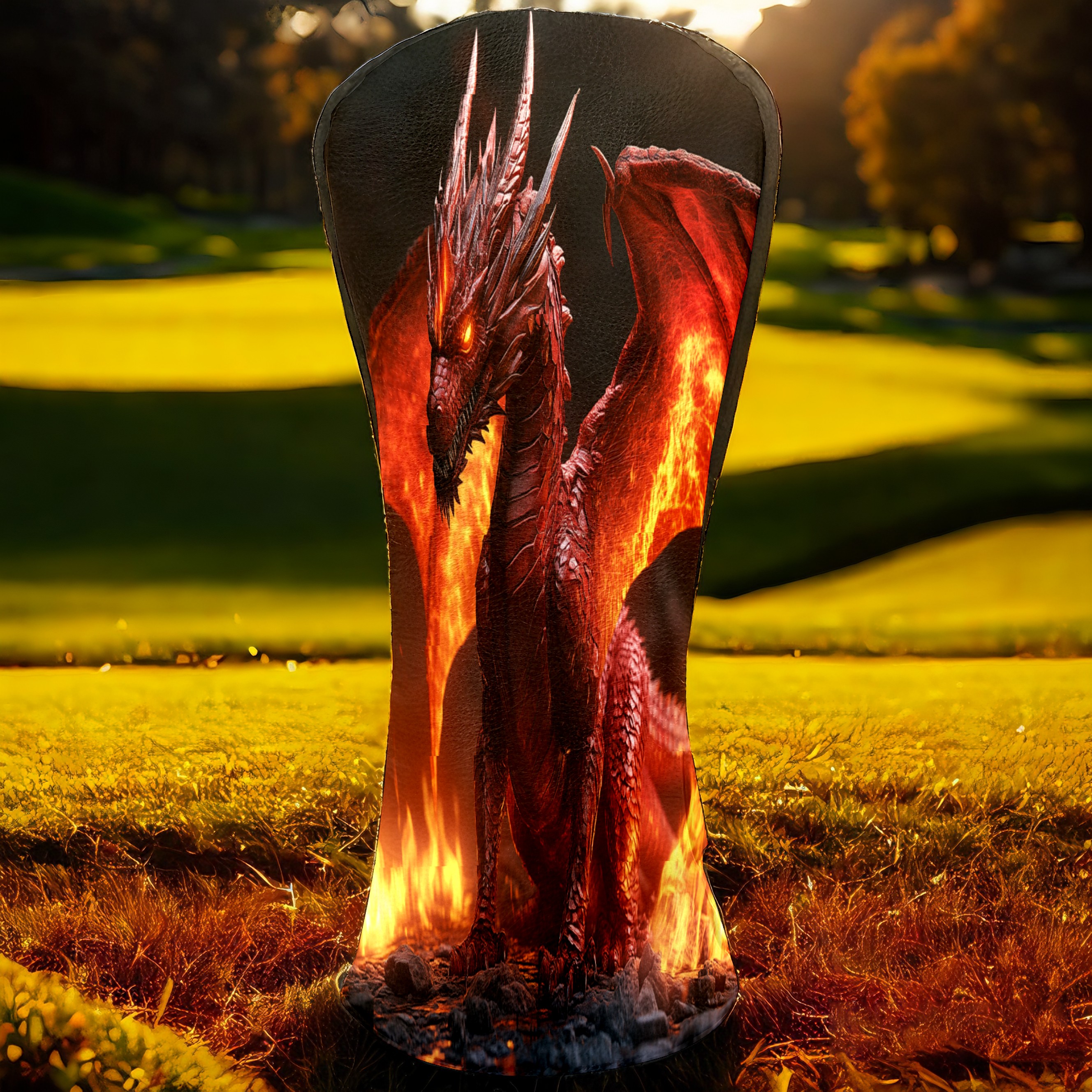 Golf Head Covers Leather Driver Headcovers, Premium Golf Club Covers with Anti-Scratch Lining 1/3/5 Wood Cover for golf clubs for Women Men (Dragon Red)