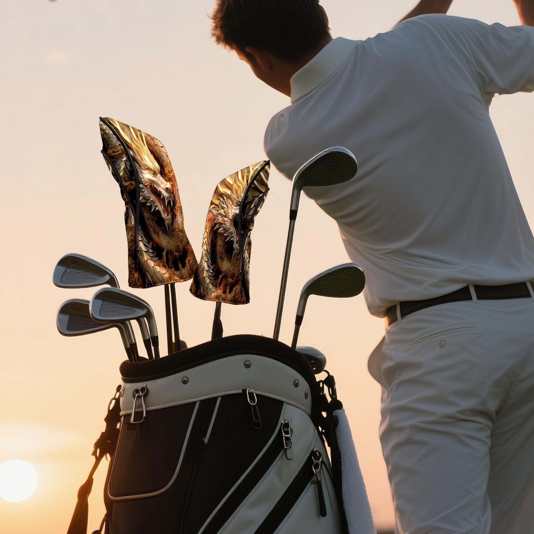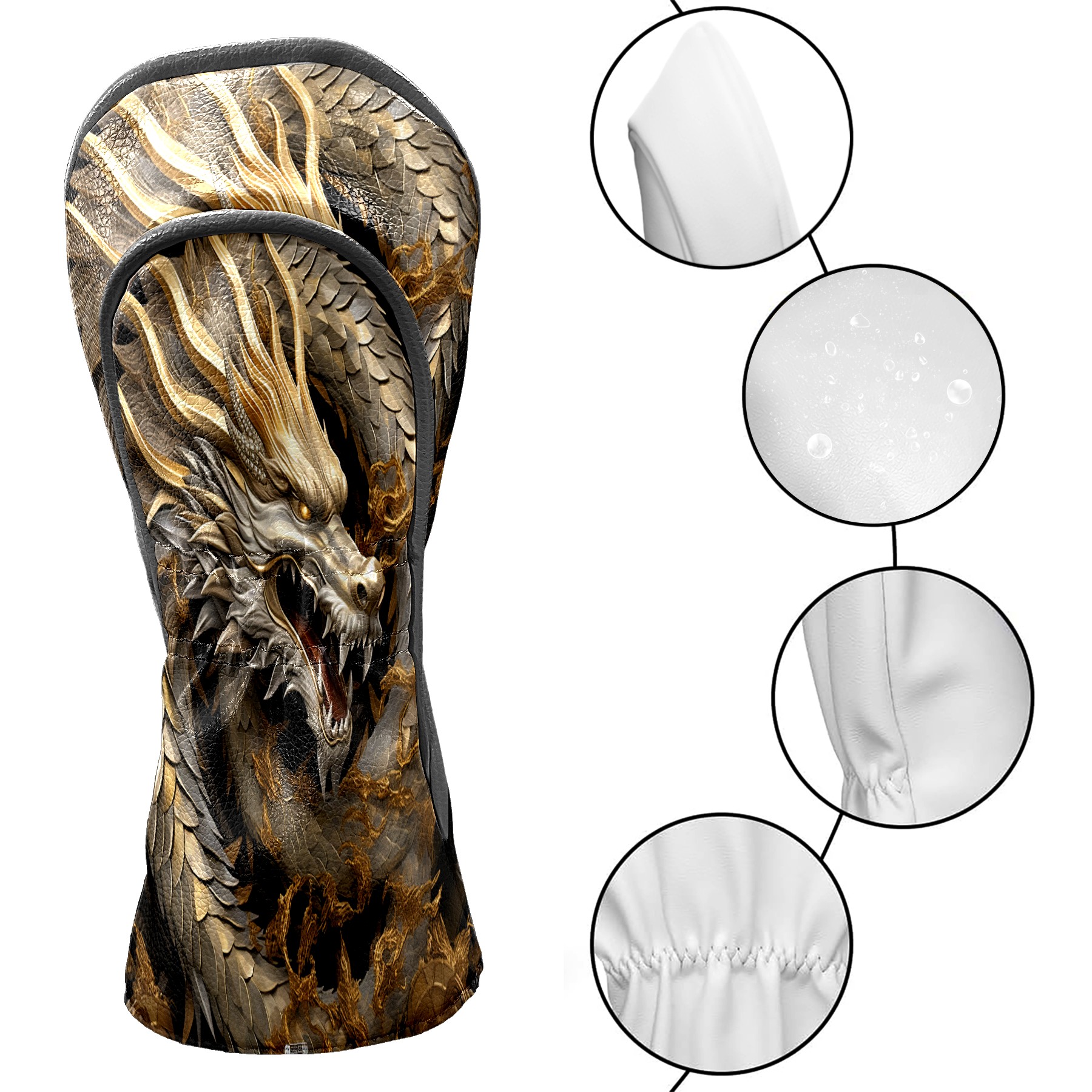 Golf Head Covers Leather Driver Headcovers, Premium Golf Club Covers with Anti-Scratch Lining 1/3/5 Wood Cover for golf clubs for Women Men (Dragon)