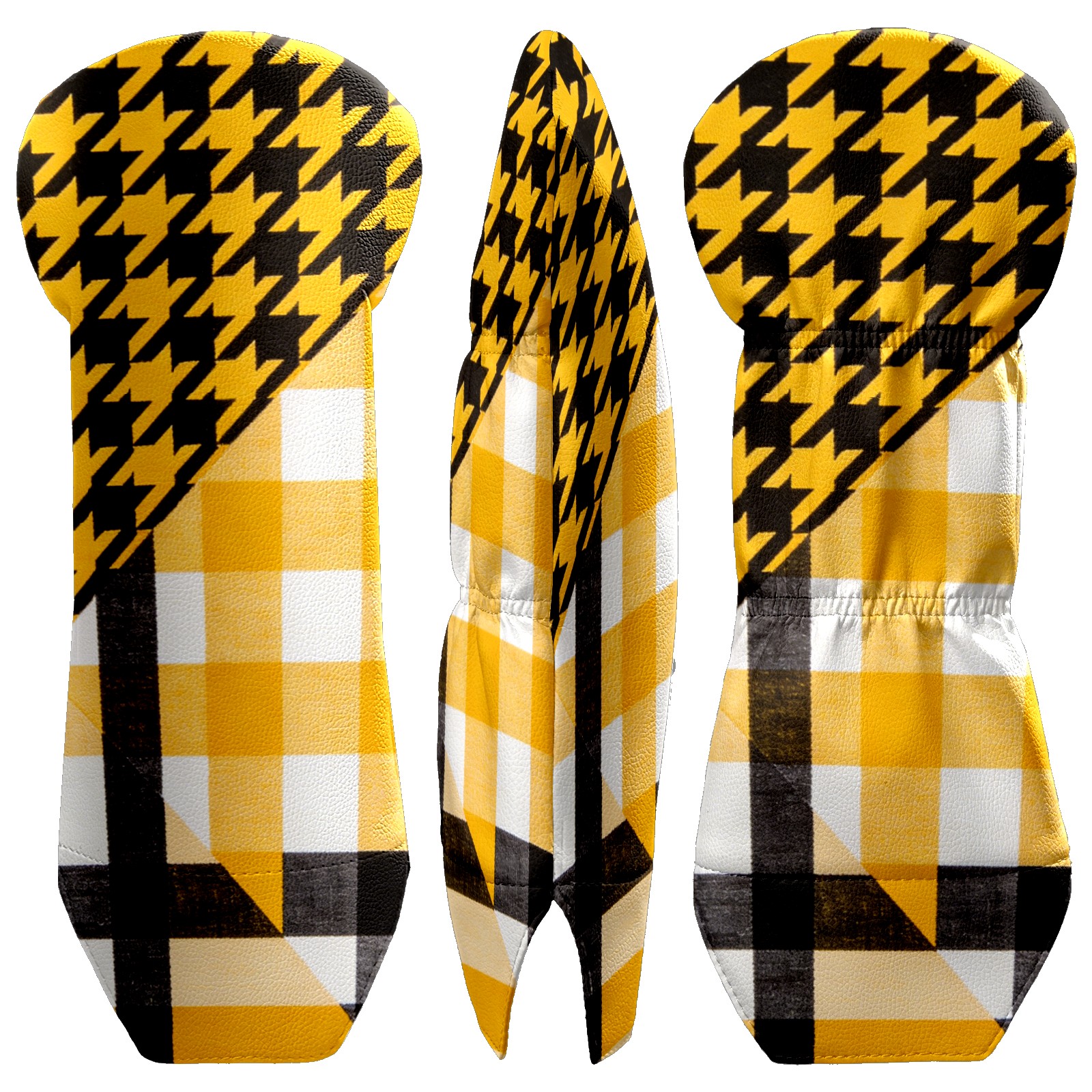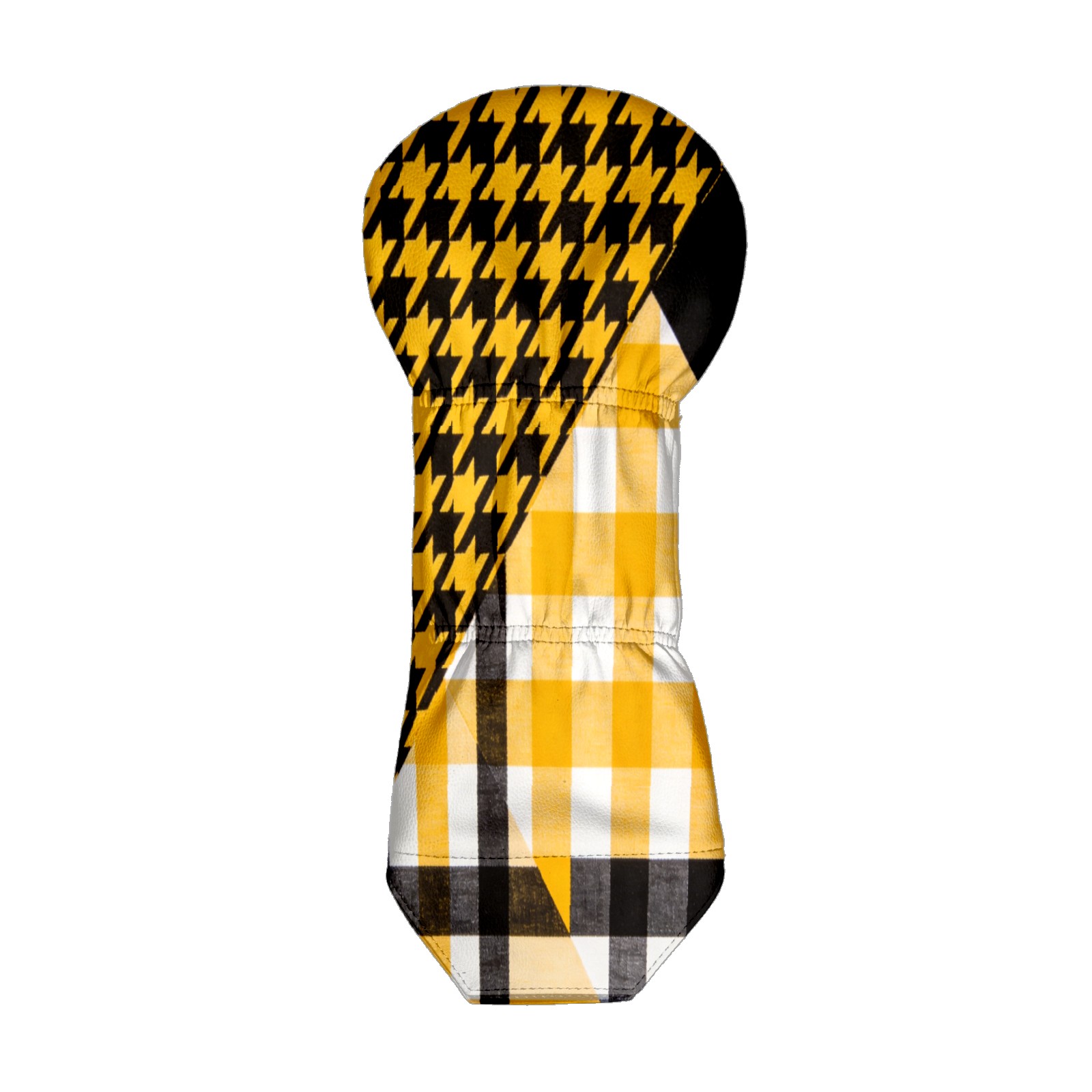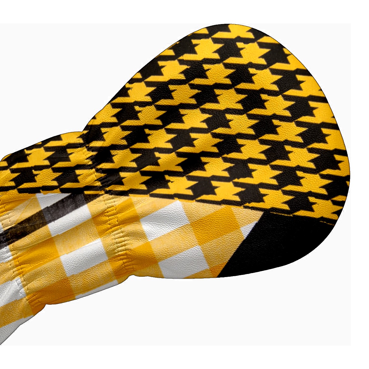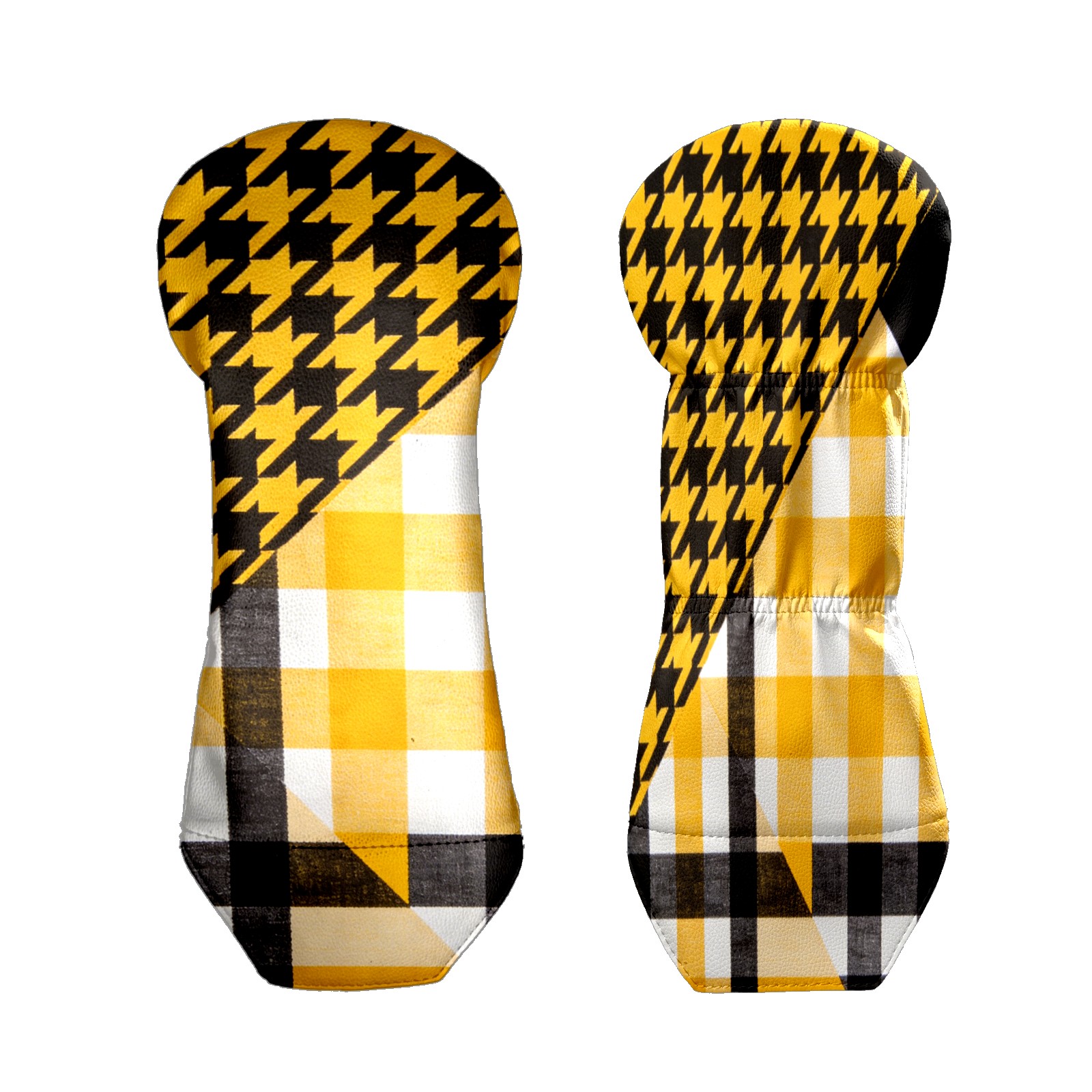 Golf Club Covers for Woods and Driver Hybrid Velvet Cover Leather Golf Headcover for Most Brand Club Men Women Yellow Black Houndstooth Pattern