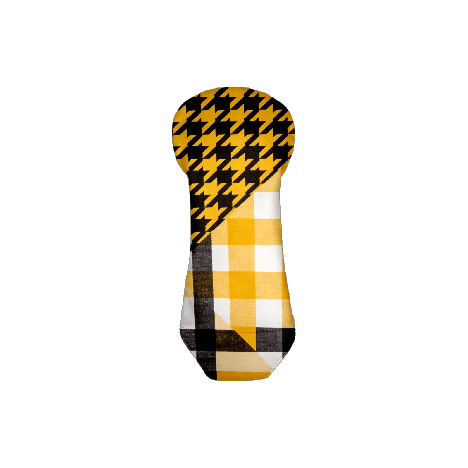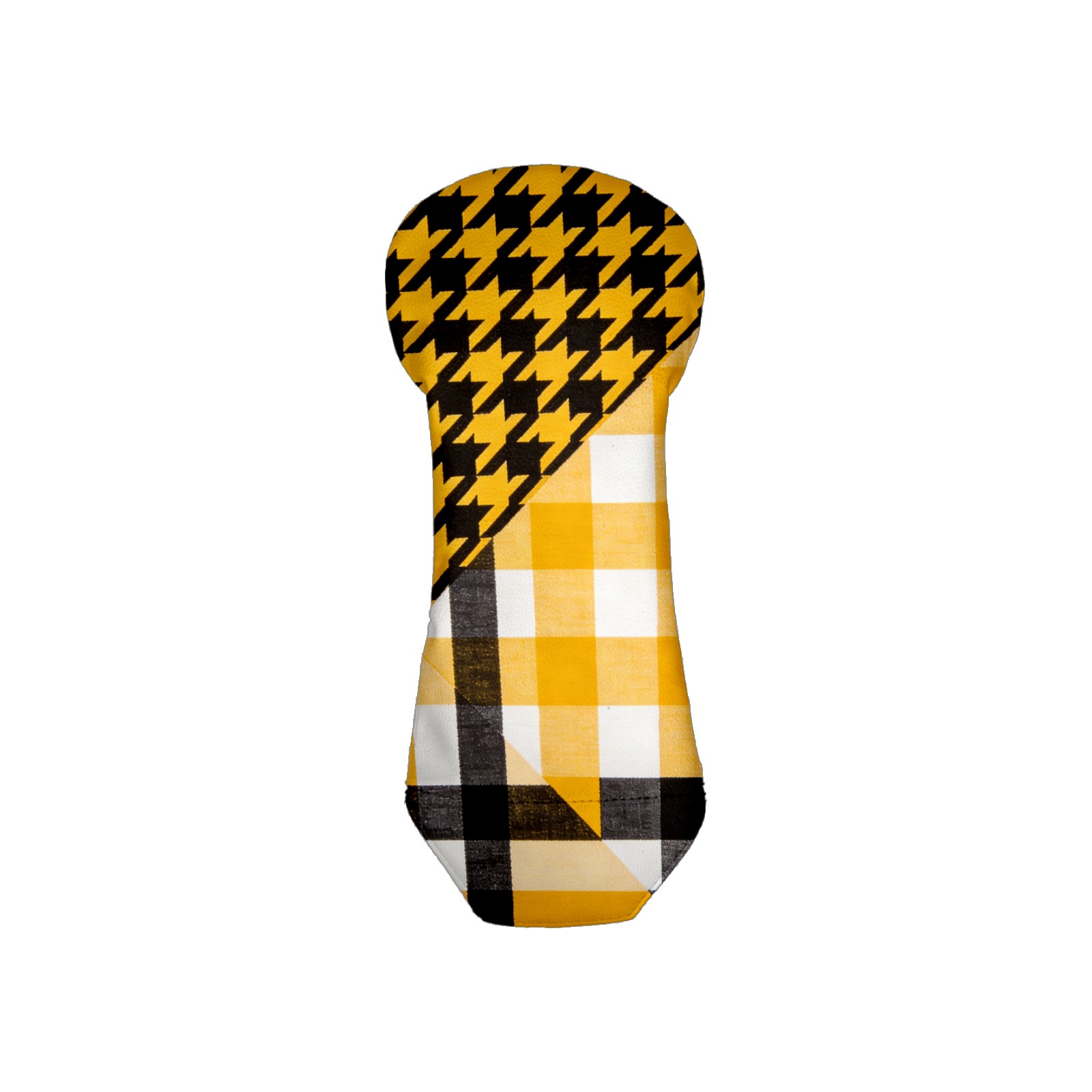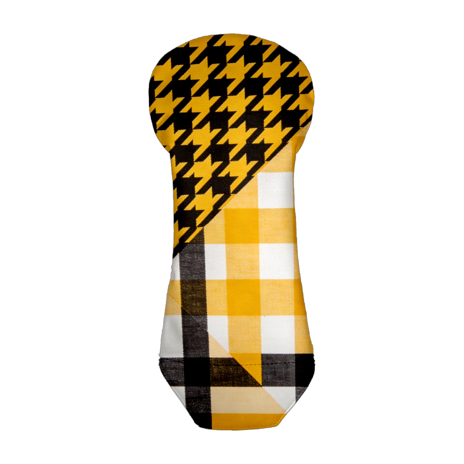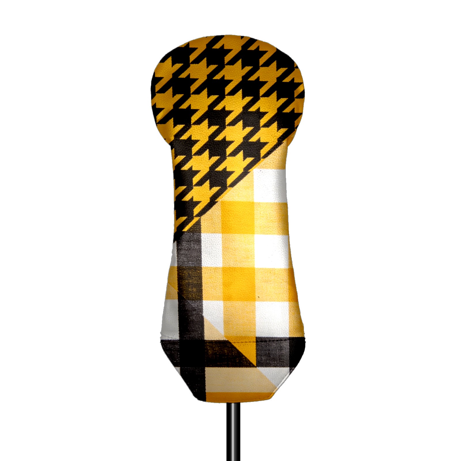 Golf Club Covers for Woods and Driver Hybrid Velvet Cover Leather Golf Headcover for Most Brand Club Men Women Yellow Black Houndstooth Pattern