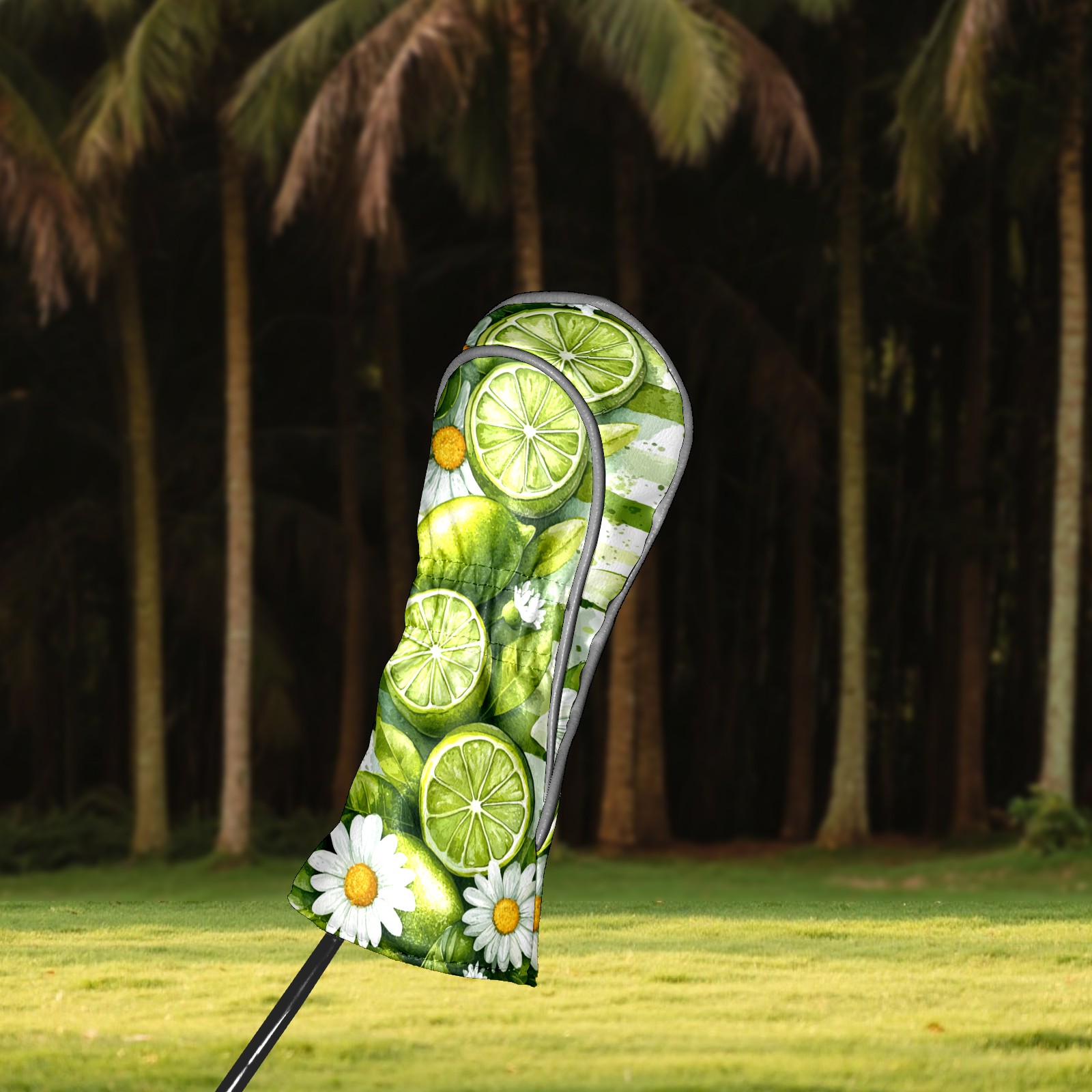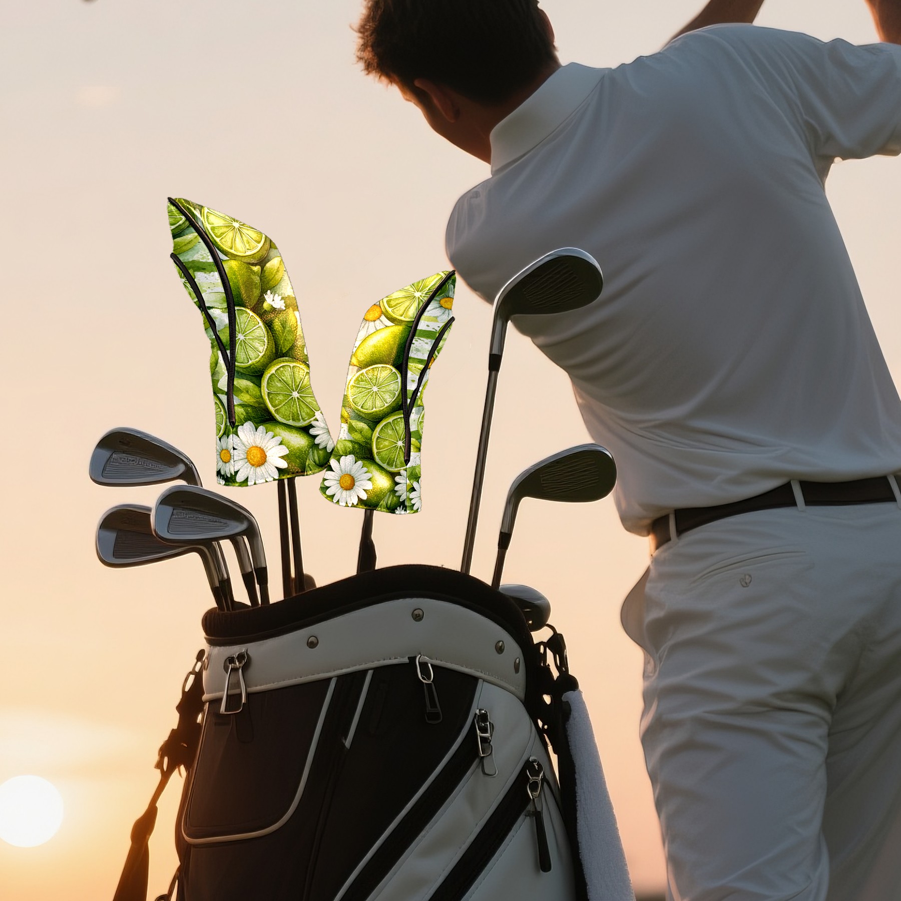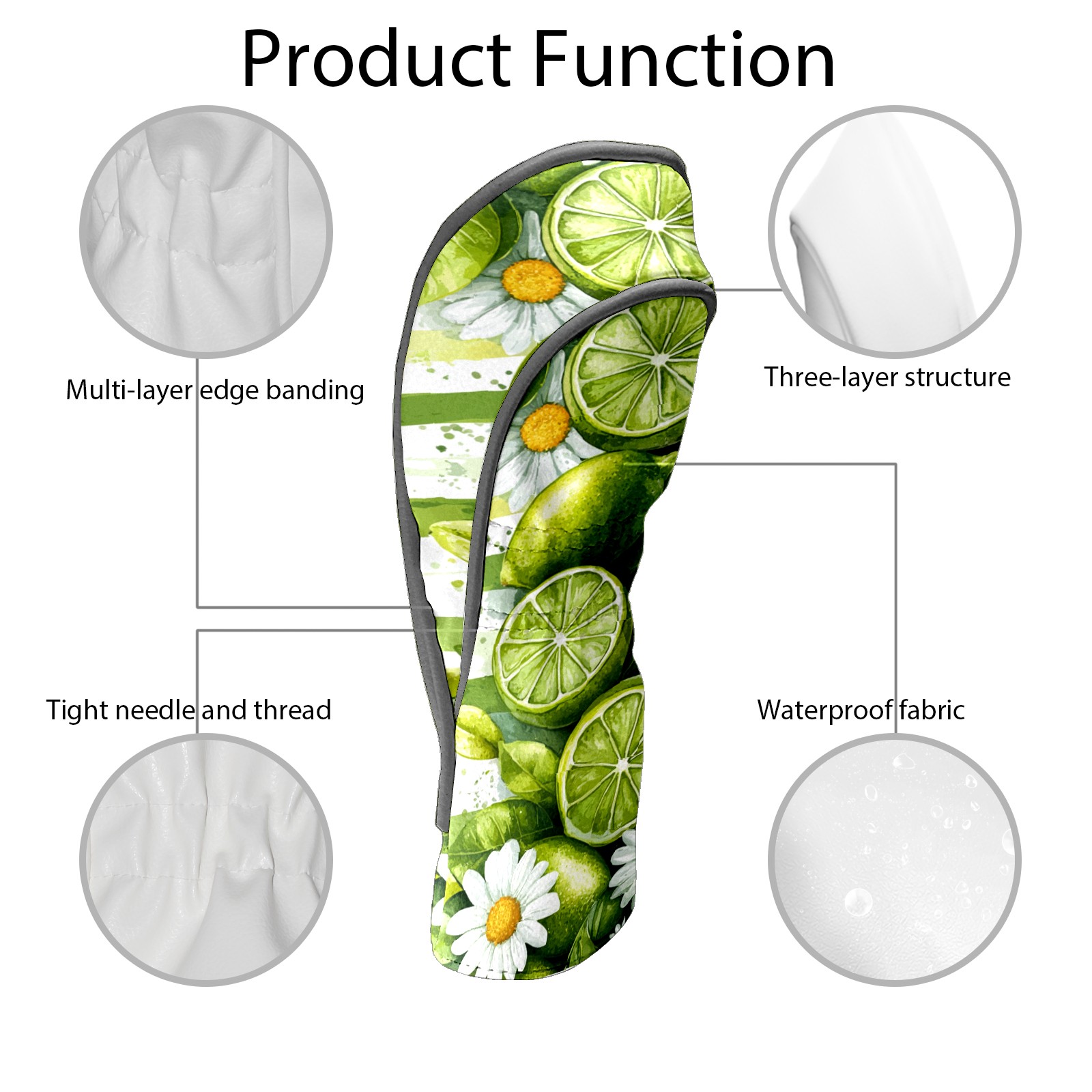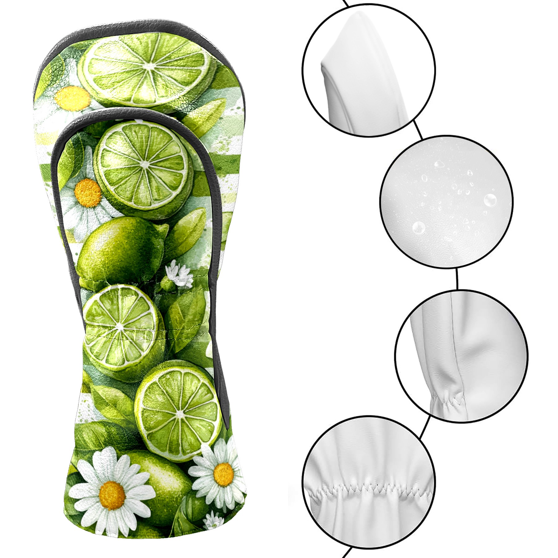 Golf Headcovers Fits Driver Hybrid Fairway 3/5 Wood, Waterproof PU Leather Golf Club Protector, Ideal Sports Accessories & Golfer Gift Lime Daisy Pattern4