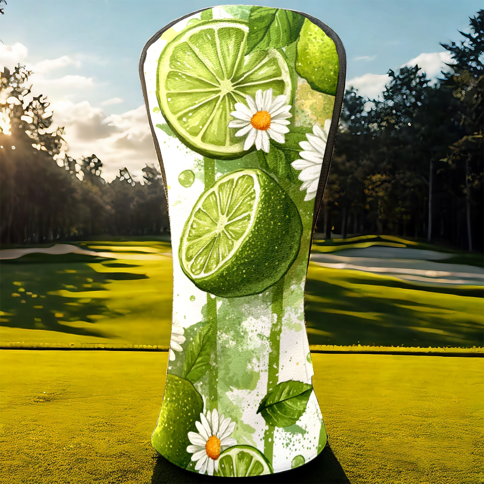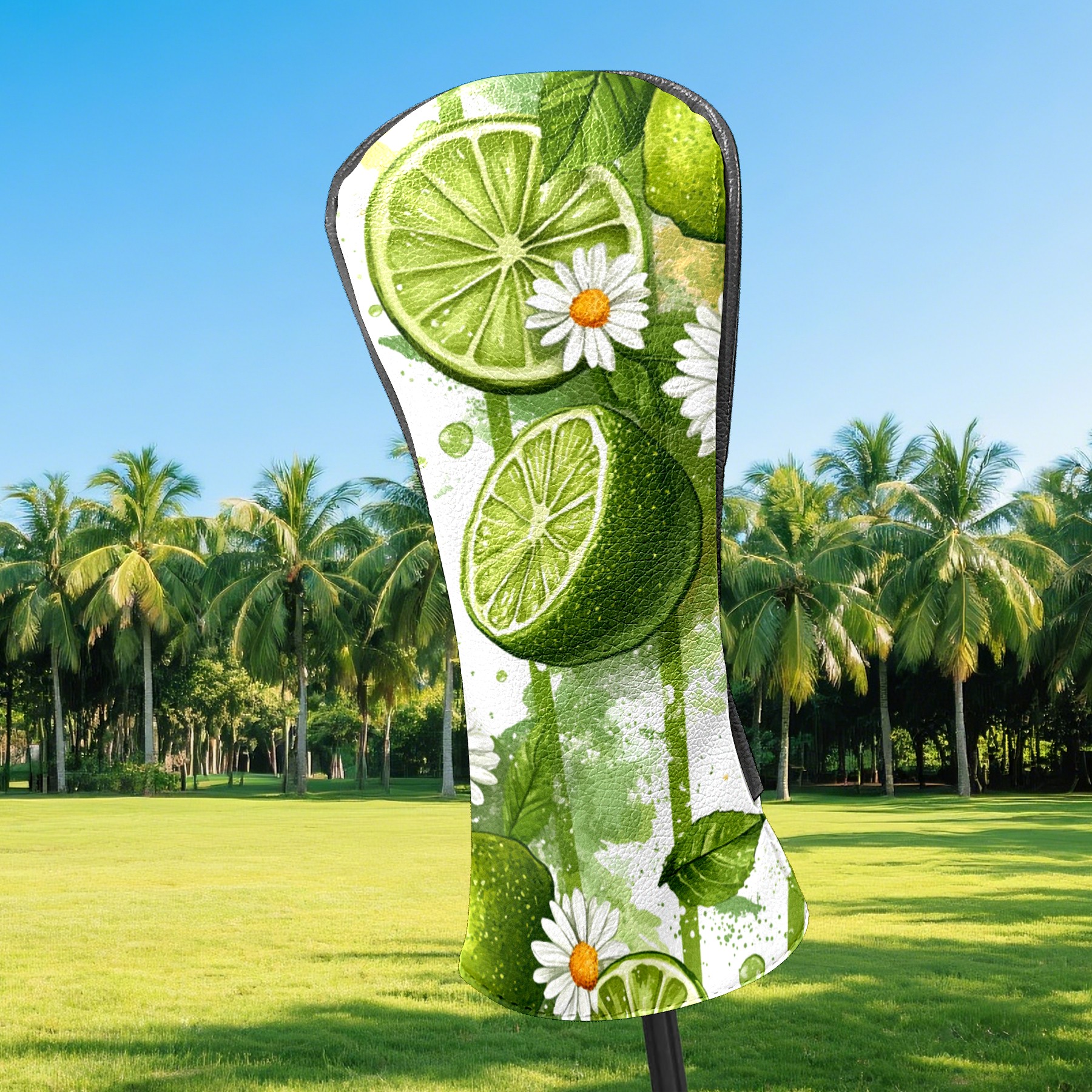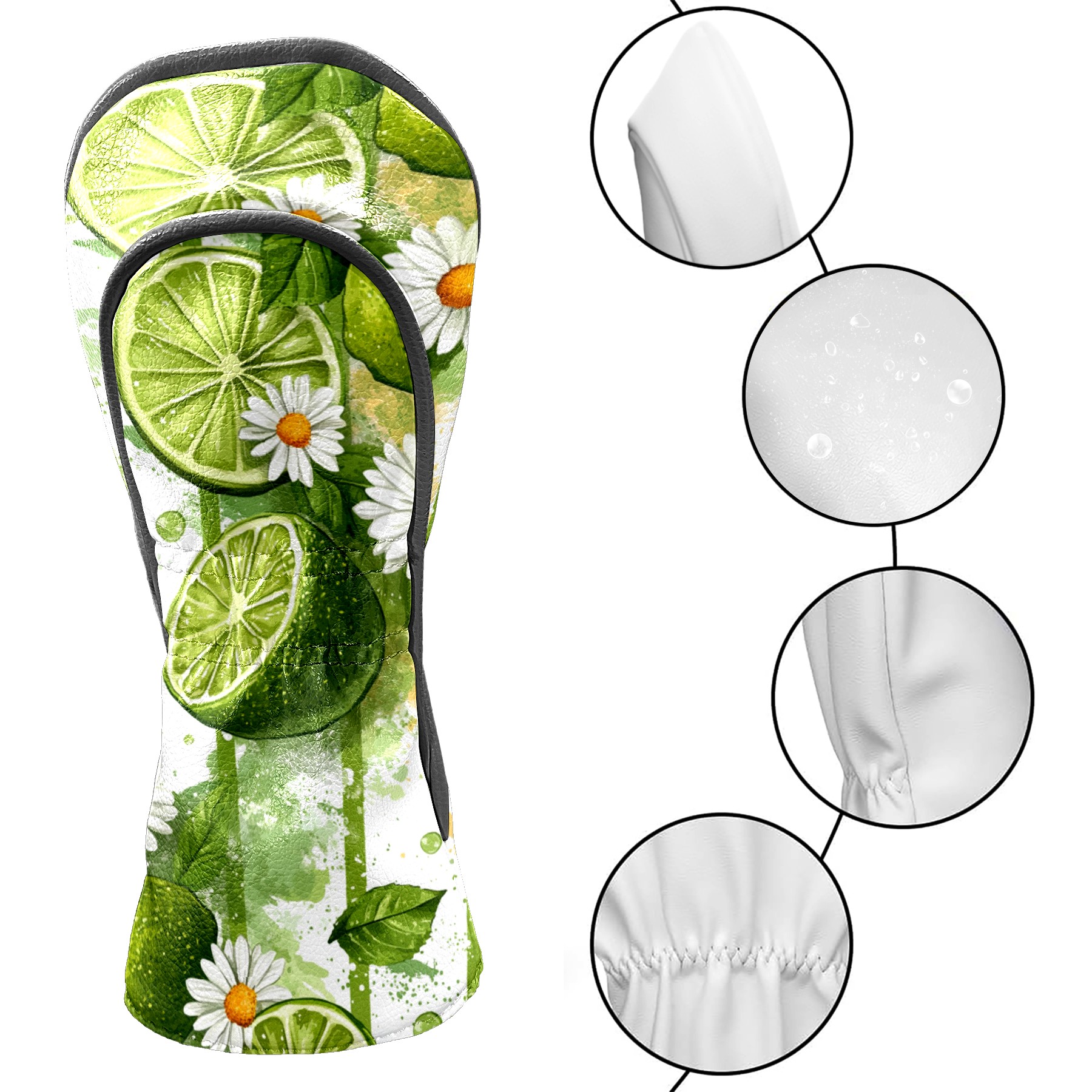 Golf Headcovers Fits Driver Hybrid Fairway 3/5 Wood, Waterproof PU Leather Golf Club Protector, Ideal Sports Accessories & Golfer Gift Lime Daisy Pattern3