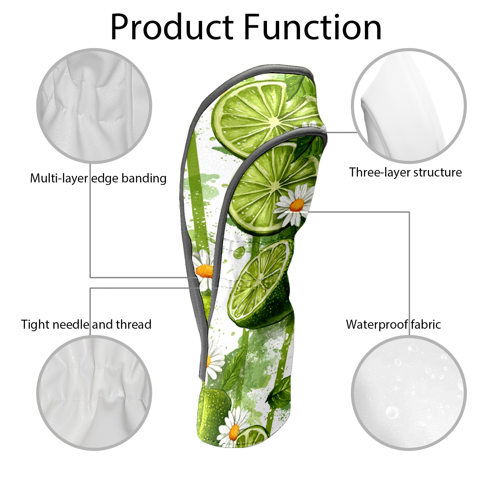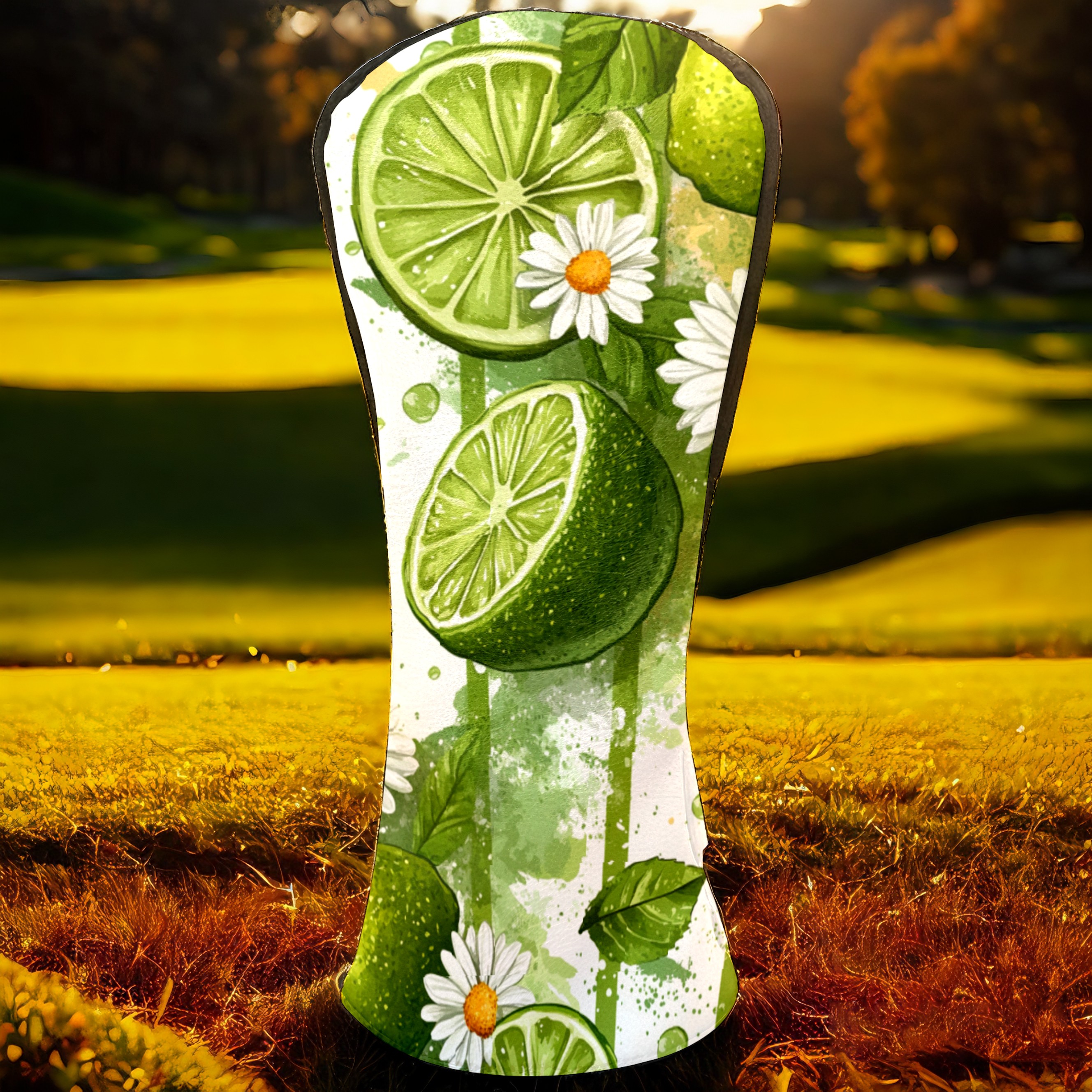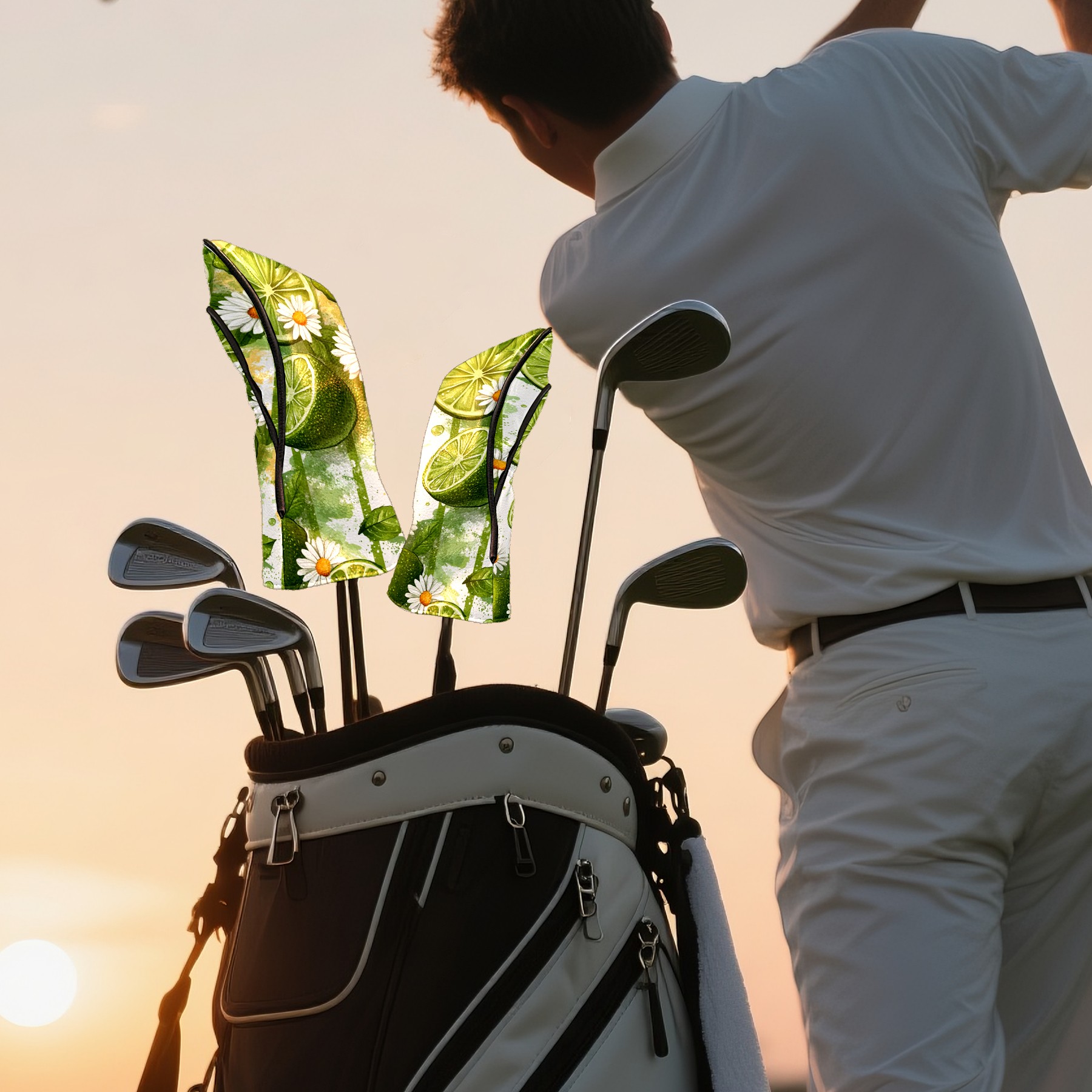 Golf Headcovers Fits Driver Hybrid Fairway 3/5 Wood, Waterproof PU Leather Golf Club Protector, Ideal Sports Accessories & Golfer Gift Lime Daisy Pattern3