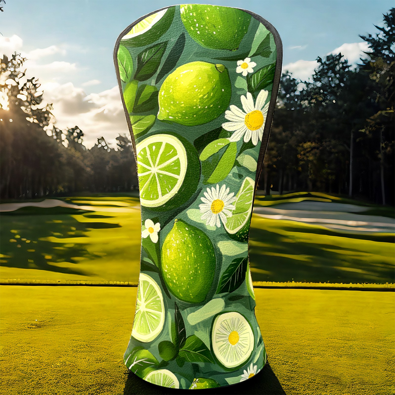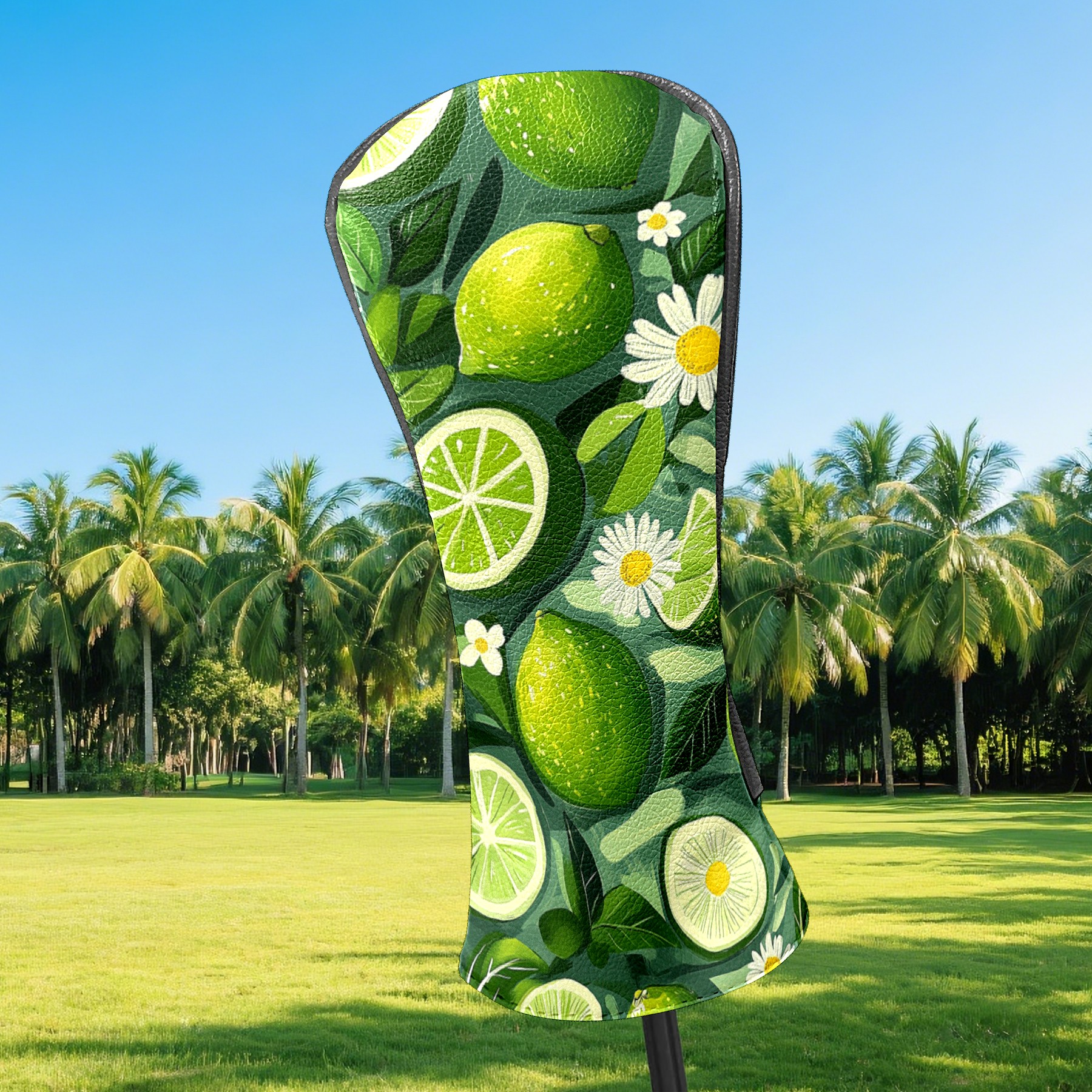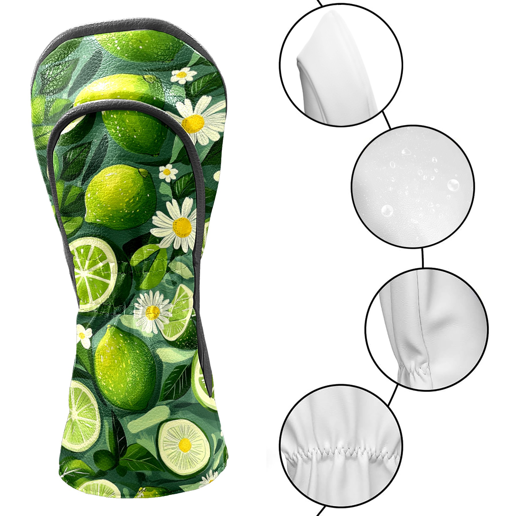 Golf Headcovers Fits Driver Hybrid Fairway 3/5 Wood, Waterproof PU Leather Golf Club Protector, Ideal Sports Accessories & Golfer Gift Lime Daisy Pattern6