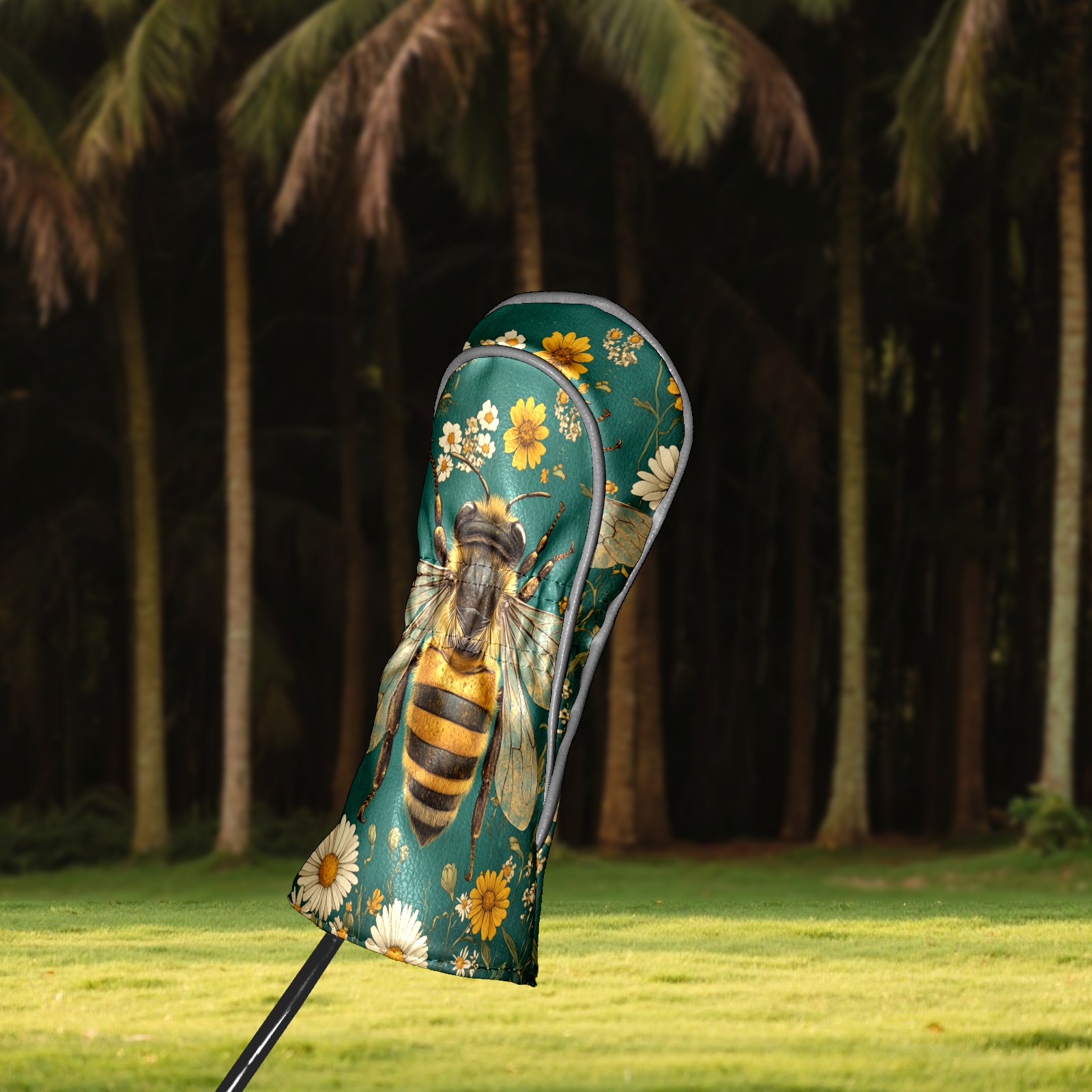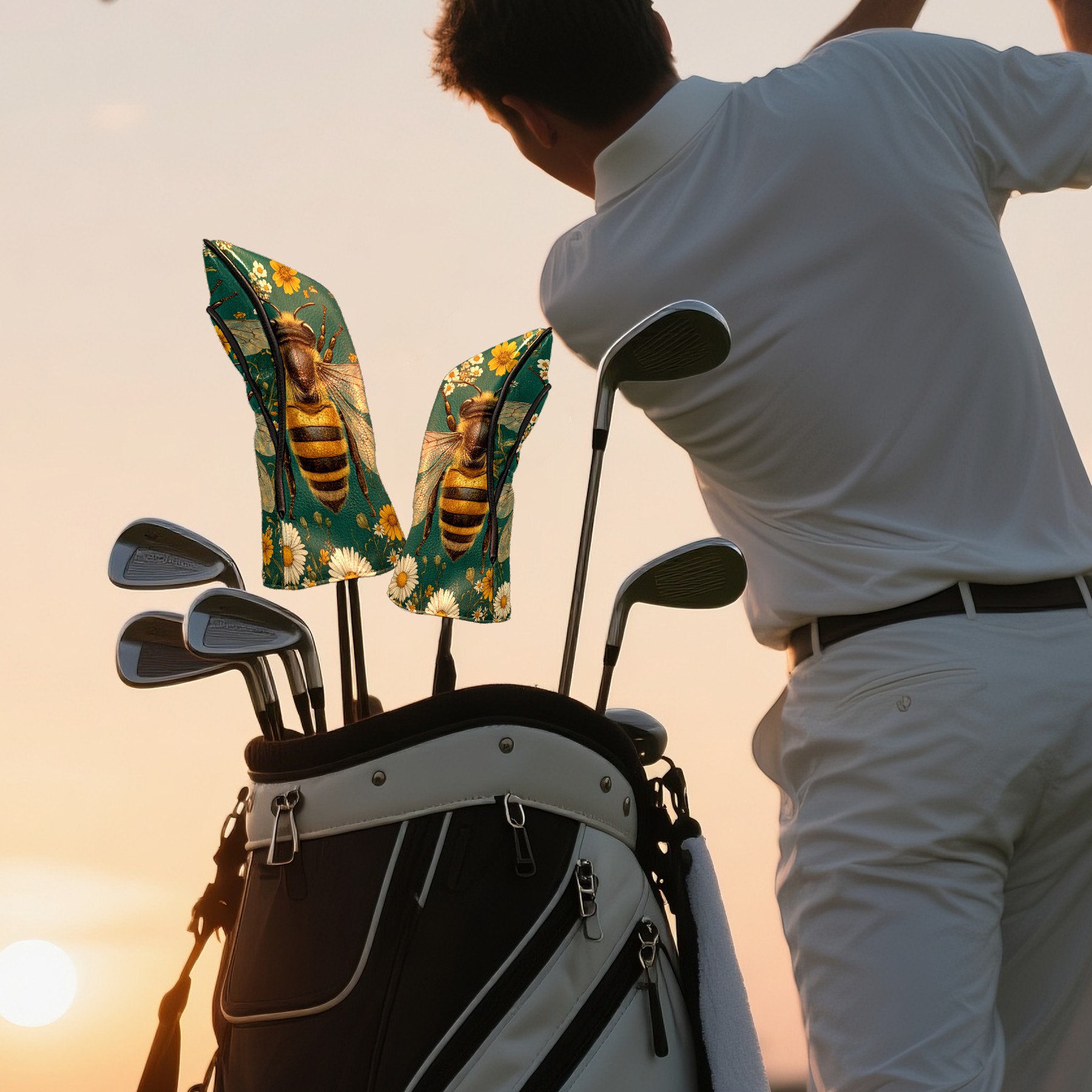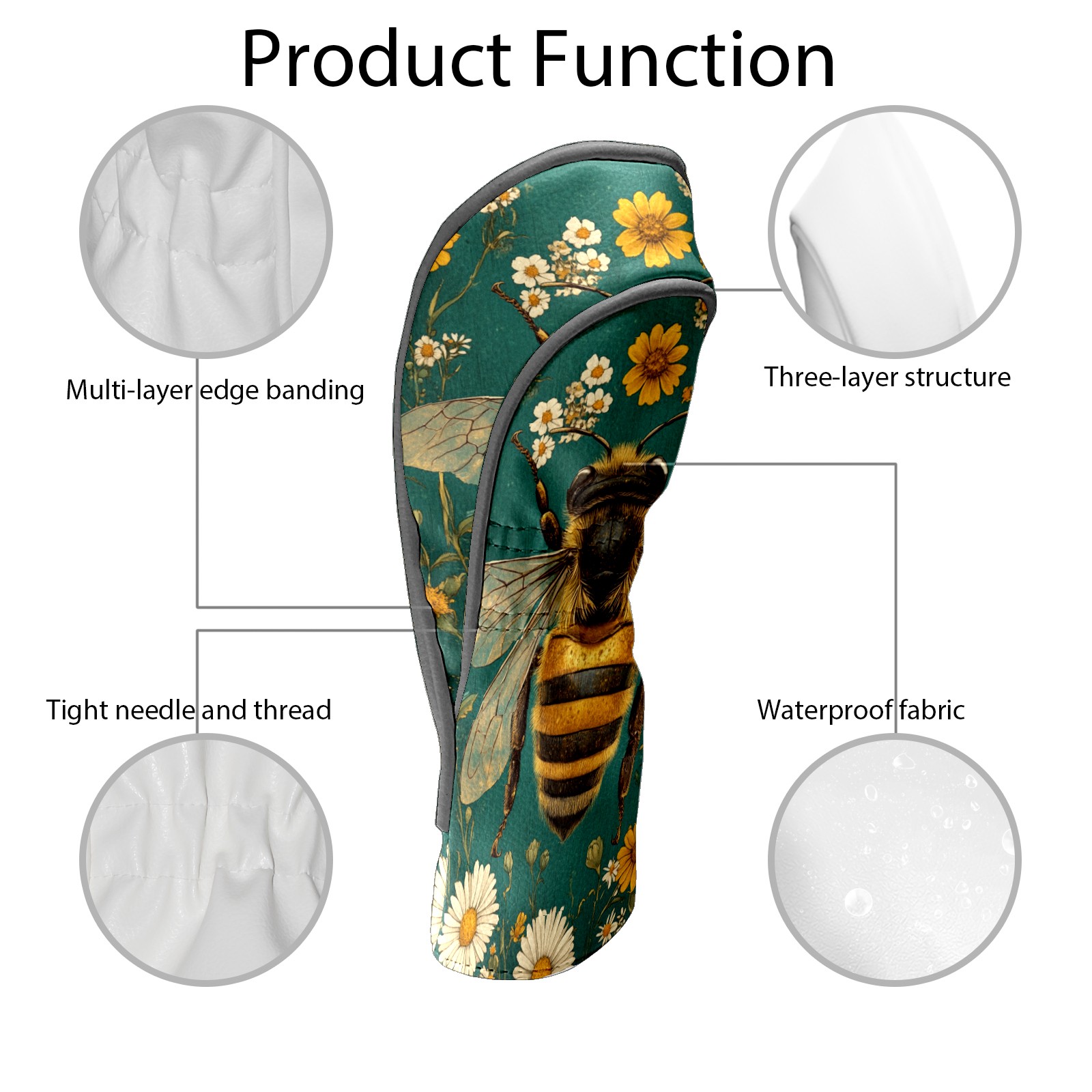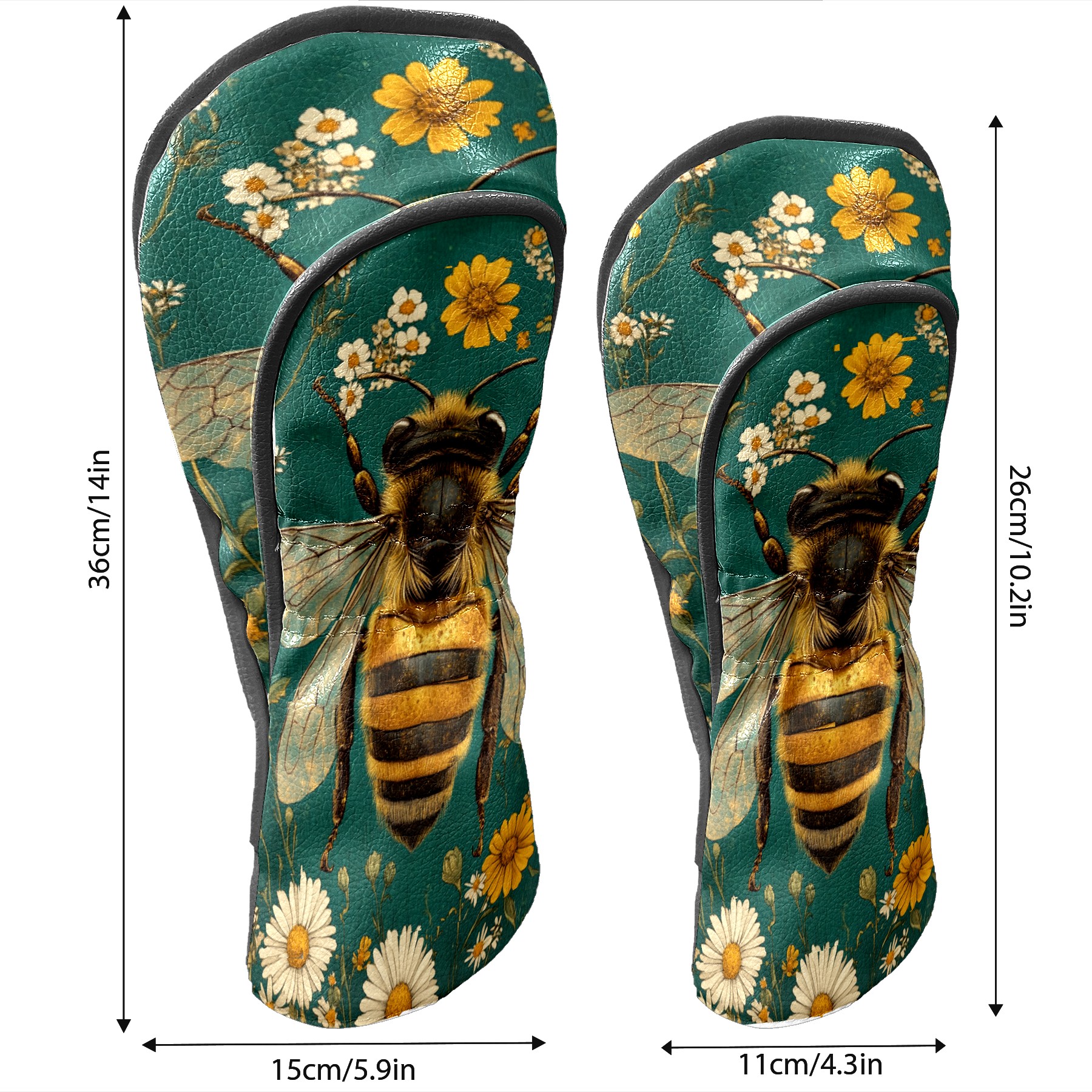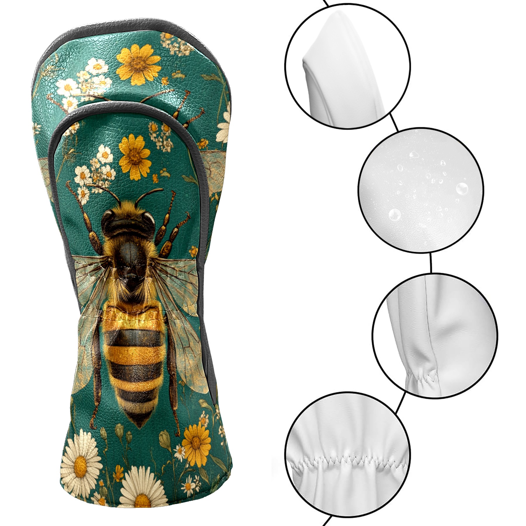 Golf Headcovers Fits Driver Hybrid Fairway 3/5 Wood, Waterproof PU Leather Golf Club Protector, Ideal Sports Accessories & Golfer Gift Big Bee Pattern2