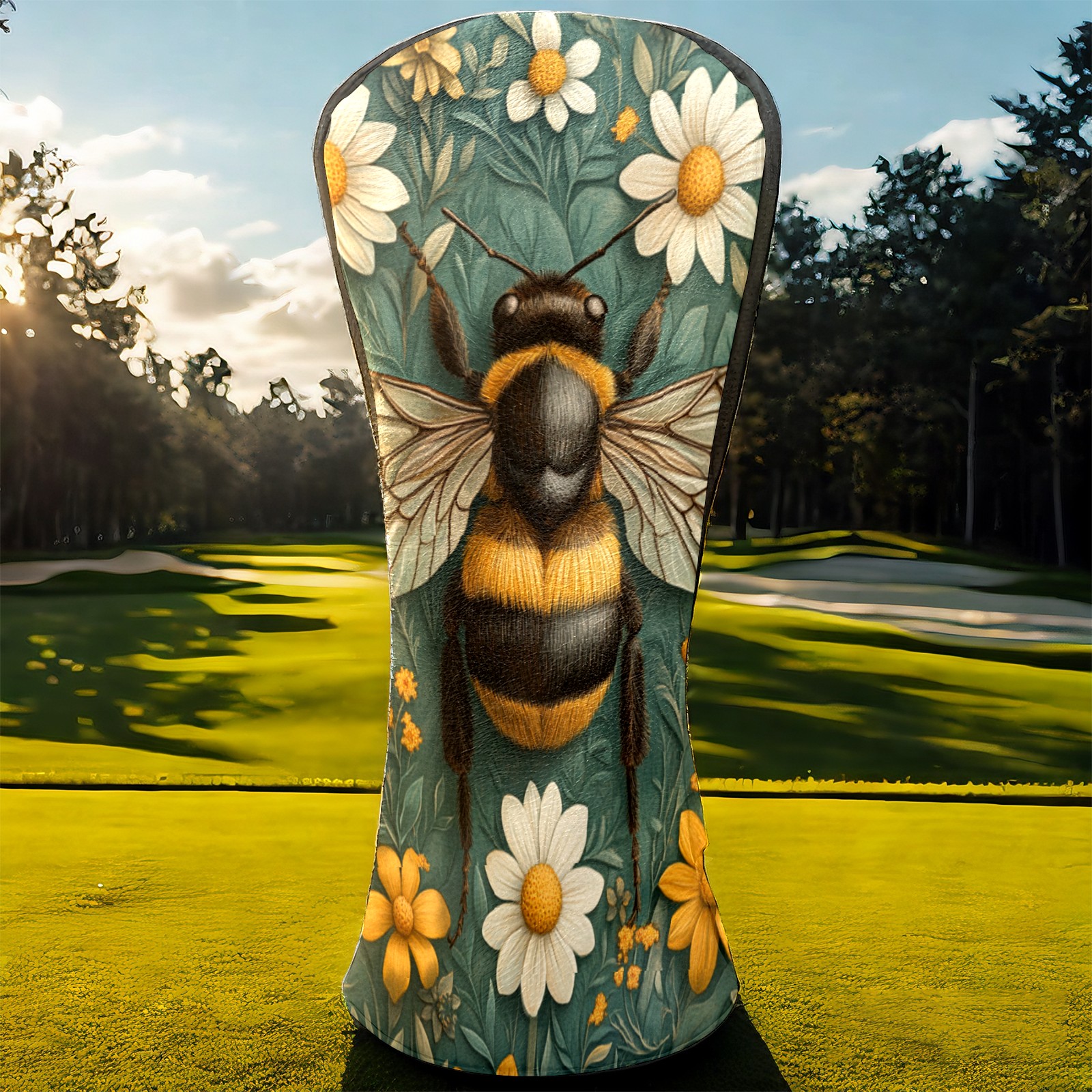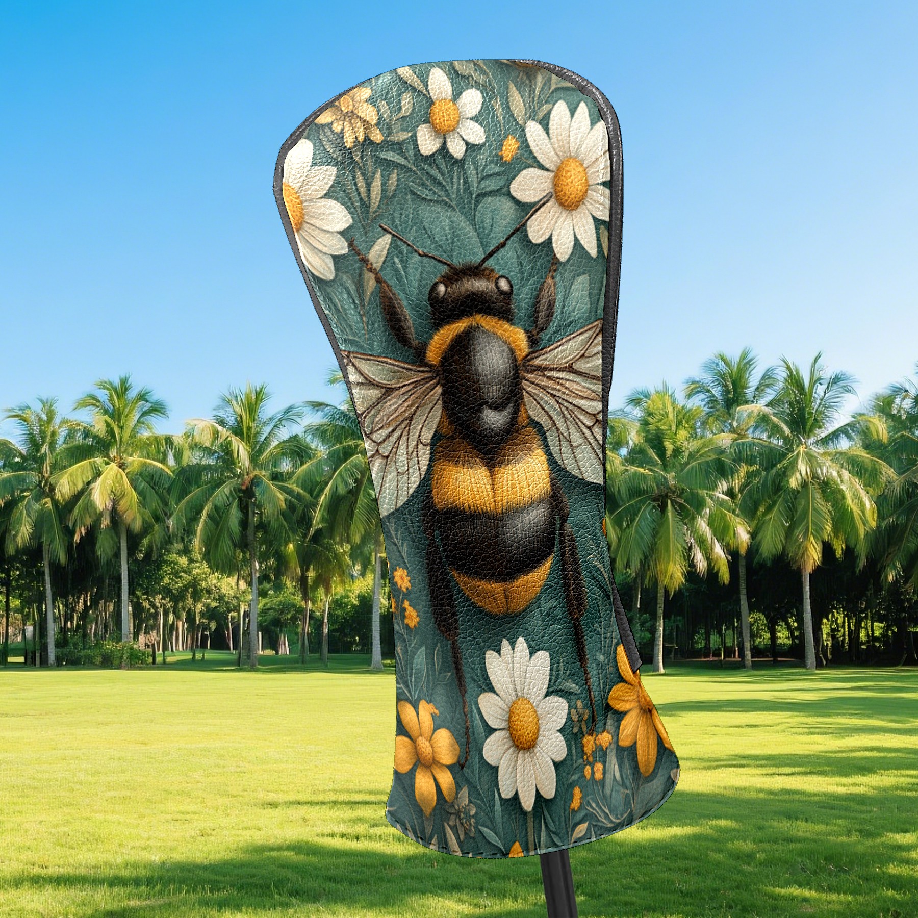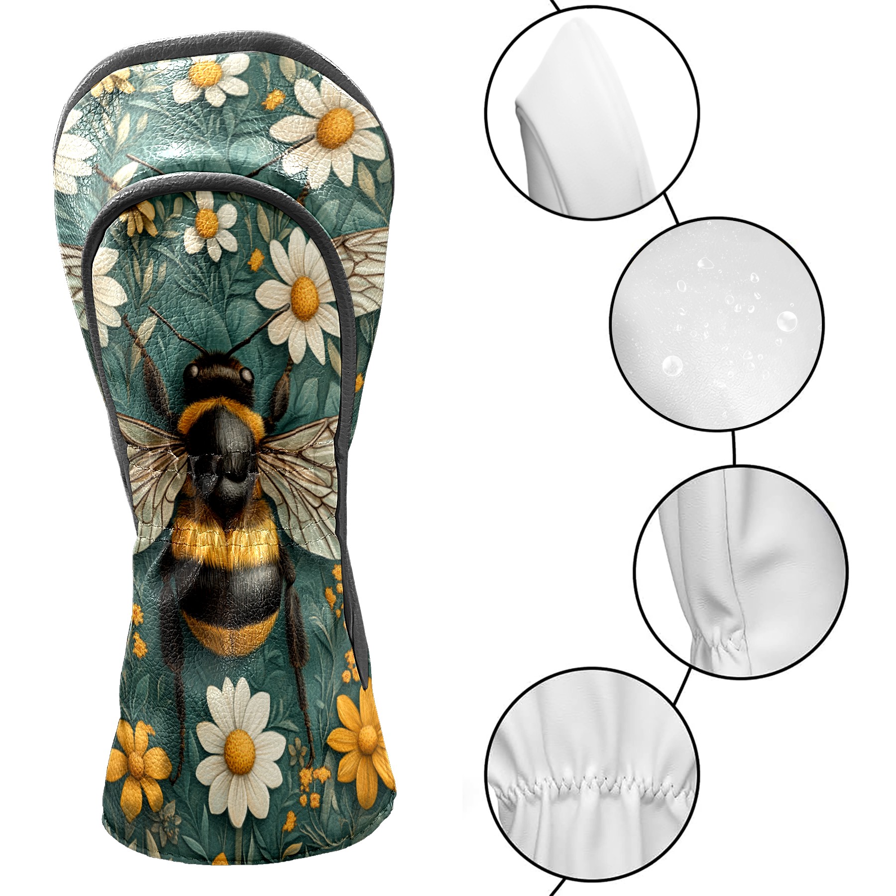 Golf Headcovers Fits Driver Hybrid Fairway 3/5 Wood, Waterproof PU Leather Golf Club Protector, Ideal Sports Accessories & Golfer Gift Big Bee Pattern